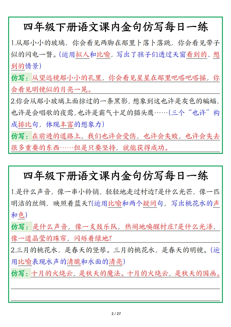 4年级下册语文【必考仿写句子】读背版芝士老师6个月前发布关注私信0.98MB27页7711534年级下册语文【必考仿写句子】读背版此内容为付费资源,请付费后查看会员专属资源学期会员免费研学会员免费您暂无购买权限,请先开通会员开通会员强烈推荐123网盘下载,非会员不限速如果下载链接失效请联系客服补发如需手机上下载打印,请用手机浏览器打开本站付费资源 第1页 / 共27页 第2页 / 共27页 试读已结束,还剩25页,您可下载完整版后进行离线阅读 © 版权声明 1 如果您找不到想要的资料, 点击这儿 可以查看网站使用手册! 2 可能会帮助到你: 网址导航 | 网站入门 | 获取邀请码 3 如果遇到付费才能看或下载的文章,建议您升级本站VIP会员;全站所有资源任意下,免费看。 4本站资源部分来自网络,由多位老师收集整理,如有侵犯你的权益请 联系站长,我们会第一时间进行审核删除。 5 站内资源为网友个人学习或测试研究使用,未经原版权作者许可,禁止用于任何商业途径!请在下载24小时内删除! THE END四年级资料专区 这套资料真的不错,快分享给您身边最好的朋友吧^_^点赞153 分享QQ空间微博QQ好友海报分享复制链接收藏 可以按Ctrl+D收藏此页面 HI!请登录 登录 注册 搜索 开启精彩搜索 付费资源会员专属资源学期会员免费研学会员免费强烈推荐123网盘下载,非会员不限速如果下载链接失效请联系客服补发如需手机上下载打印,请用手机浏览器打开本站您暂无购买权限,请先开通会员开通会员默写 (12)高频考点 (1)高分必刷 (0)高中语文 (5)高中英语 (7)高中生物 (5)高中数学 (12)高中地理 (5)高中历史 (5)高中化学 (5)预习 (2)音标 (1)雷锋 (0)阅读 (0)阅兵 (5)钱 (6)量词 (3)部首 (1)逻辑 (12)通用 (0) s_juan1关注 这家伙很懒,什么都没有写... 小吖麻麻关注 这家伙很懒,什么都没有写... kele关注 这家伙很懒,什么都没有写... 燕子关注 这家伙很懒,什么都没有写... 四爷关注 这家伙很懒,什么都没有写... 小豆点sun关注 这家伙很懒,什么都没有写... Mouse Dad关注 这家伙很懒,什么都没有写... kuan关注 这家伙很懒,什么都没有写... 领取5000T网盘资源 百度网盘5000T网红资源 立即领取 在手机上浏览此页面 登录没有账号?立即注册手机号或邮箱图形验证码验证码发送验证码记住登录账号密码登录 登录用户名/手机号/邮箱登录密码图形验证码记住登录找回密码 | 免密登录 登录注册已有账号,立即登录设置用户名手机号图形验证码验证码发送验证码设置密码重复密码邀请码(选填)注册已阅读并同意用户协议、隐私声明