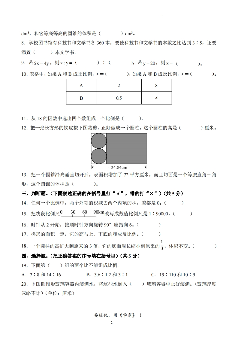 陕西省西安市未央区上水腰小学等部分学校北师大版6年级下册期中测试数学试卷芝士老师6个月前发布关注私信1.38MB8页755276陕西省西安市未央区上水腰小学等部分学校北师大版6年级下册期中测试数学试卷此内容为付费资源,请付费后查看会员专属资源学期会员免费研学会员免费您暂无购买权限,请先开通会员开通会员强烈推荐123网盘下载,非会员不限速如果下载链接失效请联系客服补发如需手机上下载打印,请用手机浏览器打开本站付费资源 第1页 / 共8页 第2页 / 共8页 试读已结束,还剩6页,您可下载完整版后进行离线阅读 © 版权声明 1 如果您找不到想要的资料, 点击这儿 可以查看网站使用手册! 2 可能会帮助到你: 网址导航 | 网站入门 | 获取邀请码 3 如果遇到付费才能看或下载的文章,建议您升级本站VIP会员;全站所有资源任意下,免费看。 4本站资源部分来自网络,由多位老师收集整理,如有侵犯你的权益请 联系站长,我们会第一时间进行审核删除。 5 站内资源为网友个人学习或测试研究使用,未经原版权作者许可,禁止用于任何商业途径!请在下载24小时内删除! THE END考试试卷专题六年级资料专区# 真题 这套资料真的不错,快分享给您身边最好的朋友吧^_^点赞276 分享QQ空间微博QQ好友海报分享复制链接收藏 可以按Ctrl+D收藏此页面 HI!请登录 登录 注册 搜索 开启精彩搜索 付费资源会员专属资源学期会员免费研学会员免费强烈推荐123网盘下载,非会员不限速如果下载链接失效请联系客服补发如需手机上下载打印,请用手机浏览器打开本站您暂无购买权限,请先开通会员开通会员默写 (12)高频考点 (1)高分必刷 (0)高中语文 (5)高中英语 (7)高中生物 (5)高中数学 (12)高中地理 (5)高中历史 (5)高中化学 (5)预习 (2)音标 (1)雷锋 (0)阅读 (0)阅兵 (5)钱 (6)量词 (3)部首 (1)逻辑 (12)通用 (0) s_juan1关注 这家伙很懒,什么都没有写... 小吖麻麻关注 这家伙很懒,什么都没有写... kele关注 这家伙很懒,什么都没有写... 燕子关注 这家伙很懒,什么都没有写... 四爷关注 这家伙很懒,什么都没有写... 小豆点sun关注 这家伙很懒,什么都没有写... Mouse Dad关注 这家伙很懒,什么都没有写... kuan关注 这家伙很懒,什么都没有写... 领取5000T网盘资源 百度网盘5000T网红资源 立即领取 在手机上浏览此页面 登录没有账号?立即注册手机号或邮箱图形验证码验证码发送验证码记住登录账号密码登录 登录用户名/手机号/邮箱登录密码图形验证码记住登录找回密码 | 免密登录 登录注册已有账号,立即登录设置用户名手机号图形验证码验证码发送验证码设置密码重复密码邀请码(选填)注册已阅读并同意用户协议、隐私声明