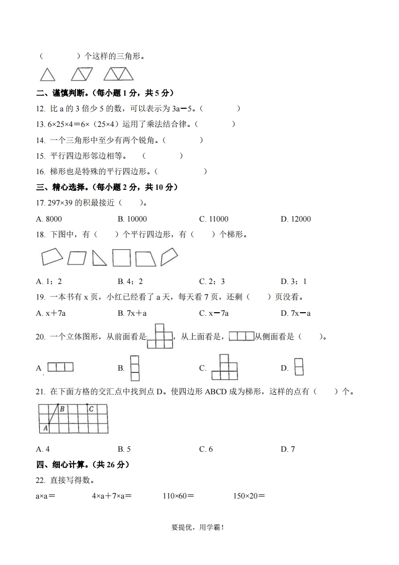 河北省邢台市威县2023-2024学年4年级下册(期中)“双减”基础教学质量评价(二)数学试卷芝士老师6个月前发布关注私信0.23MB7页656234河北省邢台市威县2023-2024学年4年级下册(期中)“双减”基础教学质量评价(二)数学试卷此内容为付费资源,请付费后查看会员专属资源学期会员免费研学会员免费您暂无购买权限,请先开通会员开通会员强烈推荐123网盘下载,非会员不限速如果下载链接失效请联系客服补发如需手机上下载打印,请用手机浏览器打开本站付费资源 第1页 / 共7页 第2页 / 共7页 试读已结束,还剩5页,您可下载完整版后进行离线阅读 © 版权声明 1 如果您找不到想要的资料, 点击这儿 可以查看网站使用手册! 2 可能会帮助到你: 网址导航 | 网站入门 | 获取邀请码 3 如果遇到付费才能看或下载的文章,建议您升级本站VIP会员;全站所有资源任意下,免费看。 4本站资源部分来自网络,由多位老师收集整理,如有侵犯你的权益请 联系站长,我们会第一时间进行审核删除。 5 站内资源为网友个人学习或测试研究使用,未经原版权作者许可,禁止用于任何商业途径!请在下载24小时内删除! THE END考试试卷专题四年级资料专区# 真题 这套资料真的不错,快分享给您身边最好的朋友吧^_^点赞234 分享QQ空间微博QQ好友海报分享复制链接收藏 可以按Ctrl+D收藏此页面 HI!请登录 登录 注册 搜索 开启精彩搜索 付费资源会员专属资源学期会员免费研学会员免费强烈推荐123网盘下载,非会员不限速如果下载链接失效请联系客服补发如需手机上下载打印,请用手机浏览器打开本站您暂无购买权限,请先开通会员开通会员默写 (12)高频考点 (1)高分必刷 (0)高中语文 (5)高中英语 (7)高中生物 (5)高中数学 (12)高中地理 (5)高中历史 (5)高中化学 (5)预习 (2)音标 (1)雷锋 (0)阅读 (0)阅兵 (5)钱 (6)量词 (3)部首 (1)逻辑 (12)通用 (0) 小吖麻麻关注 这家伙很懒,什么都没有写... evawawawa关注 这家伙很懒,什么都没有写... s_juan1关注 这家伙很懒,什么都没有写... kele关注 这家伙很懒,什么都没有写... 燕子关注 这家伙很懒,什么都没有写... 四爷关注 这家伙很懒,什么都没有写... 小豆点sun关注 这家伙很懒,什么都没有写... Mouse Dad关注 这家伙很懒,什么都没有写... 领取5000T网盘资源 百度网盘5000T网红资源 立即领取 在手机上浏览此页面 登录没有账号?立即注册手机号或邮箱图形验证码验证码发送验证码记住登录账号密码登录 登录用户名/手机号/邮箱登录密码图形验证码记住登录找回密码 | 免密登录 登录注册已有账号,立即登录设置用户名手机号图形验证码验证码发送验证码设置密码重复密码邀请码(选填)注册已阅读并同意用户协议、隐私声明