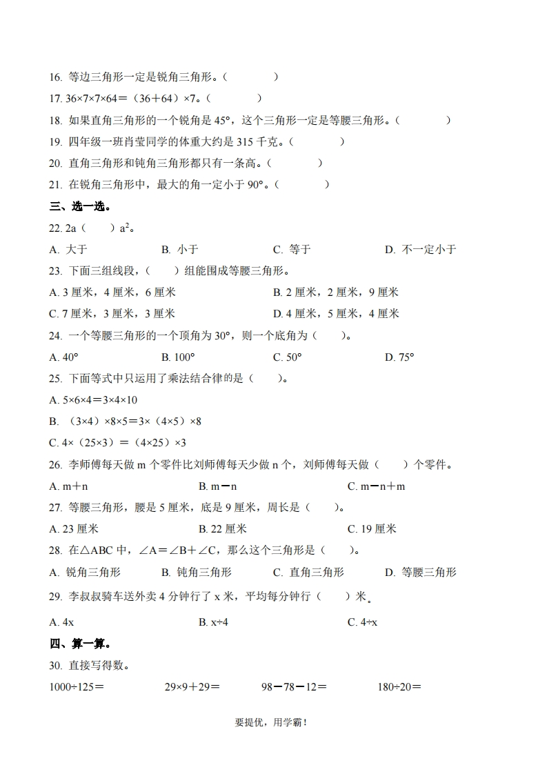 山东省青岛市市北区浮山后片区2023-2024学年4年级下册期中考试数学试卷芝士老师6个月前发布关注私信0.32MB7页722177山东省青岛市市北区浮山后片区2023-2024学年4年级下册期中考试数学试卷此内容为付费资源,请付费后查看会员专属资源学期会员免费研学会员免费您暂无购买权限,请先开通会员开通会员强烈推荐123网盘下载,非会员不限速如果下载链接失效请联系客服补发如需手机上下载打印,请用手机浏览器打开本站付费资源 第1页 / 共7页 第2页 / 共7页 试读已结束,还剩5页,您可下载完整版后进行离线阅读 © 版权声明 1 如果您找不到想要的资料, 点击这儿 可以查看网站使用手册! 2 可能会帮助到你: 网址导航 | 网站入门 | 获取邀请码 3 如果遇到付费才能看或下载的文章,建议您升级本站VIP会员;全站所有资源任意下,免费看。 4本站资源部分来自网络,由多位老师收集整理,如有侵犯你的权益请 联系站长,我们会第一时间进行审核删除。 5 站内资源为网友个人学习或测试研究使用,未经原版权作者许可,禁止用于任何商业途径!请在下载24小时内删除! THE END考试试卷专题四年级资料专区# 真题 这套资料真的不错,快分享给您身边最好的朋友吧^_^点赞177 分享QQ空间微博QQ好友海报分享复制链接收藏 可以按Ctrl+D收藏此页面 HI!请登录 登录 注册 搜索 开启精彩搜索 付费资源会员专属资源学期会员免费研学会员免费强烈推荐123网盘下载,非会员不限速如果下载链接失效请联系客服补发如需手机上下载打印,请用手机浏览器打开本站您暂无购买权限,请先开通会员开通会员默写 (12)高频考点 (1)高分必刷 (0)高中语文 (5)高中英语 (7)高中生物 (5)高中数学 (12)高中地理 (5)高中历史 (5)高中化学 (5)预习 (2)音标 (1)雷锋 (0)阅读 (0)阅兵 (5)钱 (6)量词 (3)部首 (1)逻辑 (12)通用 (0) 小吖麻麻关注 这家伙很懒,什么都没有写... s_juan1关注 这家伙很懒,什么都没有写... kele关注 这家伙很懒,什么都没有写... 燕子关注 这家伙很懒,什么都没有写... 四爷关注 这家伙很懒,什么都没有写... 小豆点sun关注 这家伙很懒,什么都没有写... Mouse Dad关注 这家伙很懒,什么都没有写... kuan关注 这家伙很懒,什么都没有写... 领取5000T网盘资源 百度网盘5000T网红资源 立即领取 在手机上浏览此页面 登录没有账号?立即注册手机号或邮箱图形验证码验证码发送验证码记住登录账号密码登录 登录用户名/手机号/邮箱登录密码图形验证码记住登录找回密码 | 免密登录 登录注册已有账号,立即登录设置用户名手机号图形验证码验证码发送验证码设置密码重复密码邀请码(选填)注册已阅读并同意用户协议、隐私声明