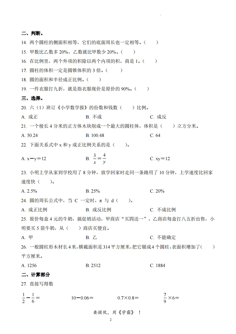 山东省青岛市市北区青岛滨海学校2023-2024学年6年级下学期数学期中学情调研卷芝士老师6个月前发布关注私信0.62MB8页620100山东省青岛市市北区青岛滨海学校2023-2024学年6年级下学期数学期中学情调研卷此内容为付费资源,请付费后查看会员专属资源学期会员免费研学会员免费您暂无购买权限,请先开通会员开通会员强烈推荐123网盘下载,非会员不限速如果下载链接失效请联系客服补发如需手机上下载打印,请用手机浏览器打开本站付费资源 第1页 / 共8页 第2页 / 共8页 试读已结束,还剩6页,您可下载完整版后进行离线阅读 © 版权声明 1 如果您找不到想要的资料, 点击这儿 可以查看网站使用手册! 2 可能会帮助到你: 网址导航 | 网站入门 | 获取邀请码 3 如果遇到付费才能看或下载的文章,建议您升级本站VIP会员;全站所有资源任意下,免费看。 4本站资源部分来自网络,由多位老师收集整理,如有侵犯你的权益请 联系站长,我们会第一时间进行审核删除。 5 站内资源为网友个人学习或测试研究使用,未经原版权作者许可,禁止用于任何商业途径!请在下载24小时内删除! THE END考试试卷专题六年级资料专区# 真题 这套资料真的不错,快分享给您身边最好的朋友吧^_^点赞100 分享QQ空间微博QQ好友海报分享复制链接收藏 可以按Ctrl+D收藏此页面 HI!请登录 登录 注册 搜索 开启精彩搜索 付费资源会员专属资源学期会员免费研学会员免费强烈推荐123网盘下载,非会员不限速如果下载链接失效请联系客服补发如需手机上下载打印,请用手机浏览器打开本站您暂无购买权限,请先开通会员开通会员默写 (12)高频考点 (1)高分必刷 (0)高中语文 (5)高中英语 (7)高中生物 (5)高中数学 (12)高中地理 (5)高中历史 (5)高中化学 (5)预习 (2)音标 (1)雷锋 (0)阅读 (0)阅兵 (5)钱 (6)量词 (3)部首 (1)逻辑 (12)通用 (0) 小吖麻麻关注 这家伙很懒,什么都没有写... s_juan1关注 这家伙很懒,什么都没有写... kele关注 这家伙很懒,什么都没有写... 燕子关注 这家伙很懒,什么都没有写... 四爷关注 这家伙很懒,什么都没有写... 小豆点sun关注 这家伙很懒,什么都没有写... Mouse Dad关注 这家伙很懒,什么都没有写... kuan关注 这家伙很懒,什么都没有写... 领取5000T网盘资源 百度网盘5000T网红资源 立即领取 在手机上浏览此页面 登录没有账号?立即注册手机号或邮箱图形验证码验证码发送验证码记住登录账号密码登录 登录用户名/手机号/邮箱登录密码图形验证码记住登录找回密码 | 免密登录 登录注册已有账号,立即登录设置用户名手机号图形验证码验证码发送验证码设置密码重复密码邀请码(选填)注册已阅读并同意用户协议、隐私声明