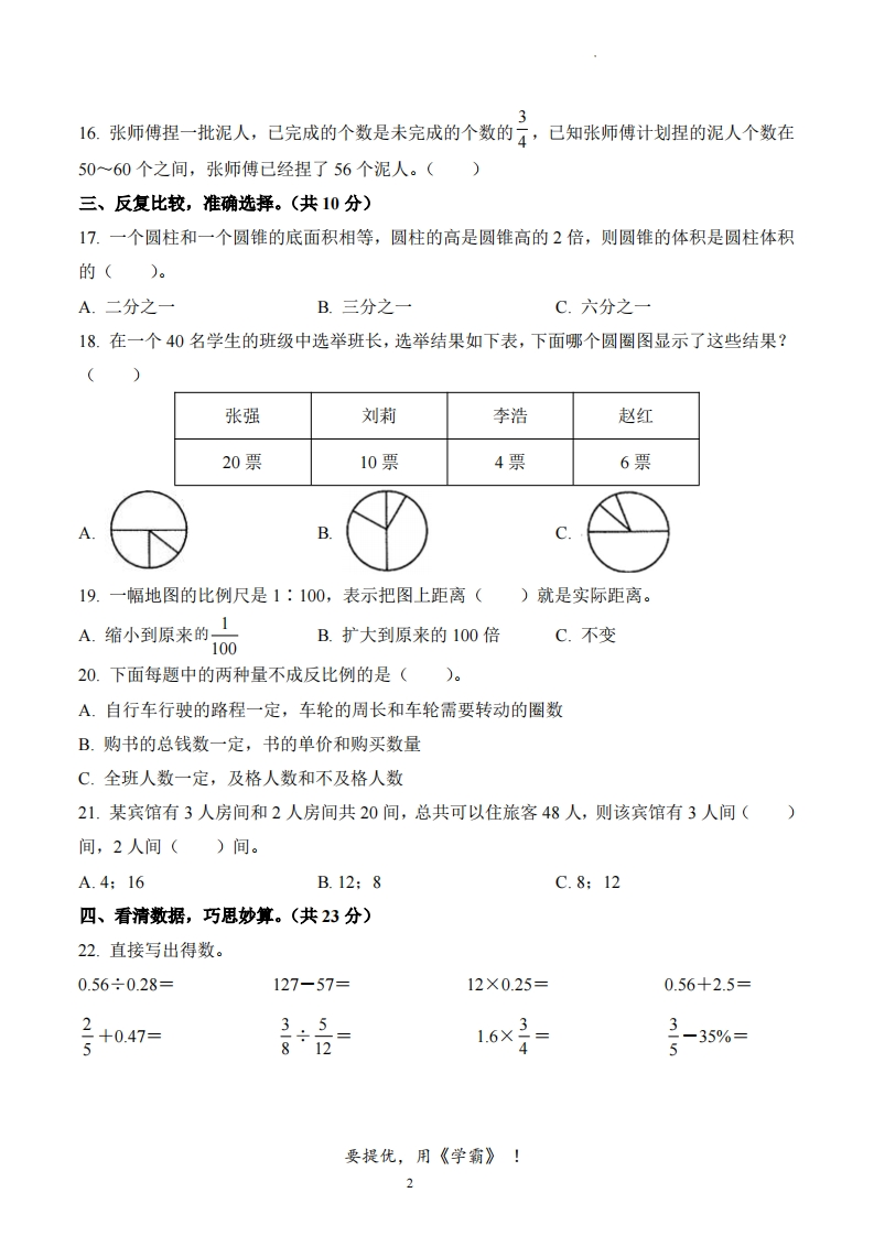山东省青岛市崂山区育才学校2023-2024学年6年级下册期中测试数学试卷芝士老师6个月前发布关注私信0.96MB7页772200山东省青岛市崂山区育才学校2023-2024学年6年级下册期中测试数学试卷此内容为付费资源,请付费后查看会员专属资源学期会员免费研学会员免费您暂无购买权限,请先开通会员开通会员强烈推荐123网盘下载,非会员不限速如果下载链接失效请联系客服补发如需手机上下载打印,请用手机浏览器打开本站付费资源 第1页 / 共7页 第2页 / 共7页 试读已结束,还剩5页,您可下载完整版后进行离线阅读 © 版权声明 1 如果您找不到想要的资料, 点击这儿 可以查看网站使用手册! 2 可能会帮助到你: 网址导航 | 网站入门 | 获取邀请码 3 如果遇到付费才能看或下载的文章,建议您升级本站VIP会员;全站所有资源任意下,免费看。 4本站资源部分来自网络,由多位老师收集整理,如有侵犯你的权益请 联系站长,我们会第一时间进行审核删除。 5 站内资源为网友个人学习或测试研究使用,未经原版权作者许可,禁止用于任何商业途径!请在下载24小时内删除! THE END考试试卷专题六年级资料专区# 真题 这套资料真的不错,快分享给您身边最好的朋友吧^_^点赞200 分享QQ空间微博QQ好友海报分享复制链接收藏 可以按Ctrl+D收藏此页面 HI!请登录 登录 注册 搜索 开启精彩搜索 付费资源会员专属资源学期会员免费研学会员免费强烈推荐123网盘下载,非会员不限速如果下载链接失效请联系客服补发如需手机上下载打印,请用手机浏览器打开本站您暂无购买权限,请先开通会员开通会员默写 (12)高频考点 (1)高分必刷 (0)高中语文 (5)高中英语 (7)高中生物 (5)高中数学 (12)高中地理 (5)高中历史 (5)高中化学 (5)预习 (2)音标 (1)雷锋 (0)阅读 (0)阅兵 (5)钱 (6)量词 (3)部首 (1)逻辑 (12)通用 (0) 小吖麻麻关注 这家伙很懒,什么都没有写... s_juan1关注 这家伙很懒,什么都没有写... kele关注 这家伙很懒,什么都没有写... 燕子关注 这家伙很懒,什么都没有写... 四爷关注 这家伙很懒,什么都没有写... 小豆点sun关注 这家伙很懒,什么都没有写... Mouse Dad关注 这家伙很懒,什么都没有写... kuan关注 这家伙很懒,什么都没有写... 领取5000T网盘资源 百度网盘5000T网红资源 立即领取 在手机上浏览此页面 登录没有账号?立即注册手机号或邮箱图形验证码验证码发送验证码记住登录账号密码登录 登录用户名/手机号/邮箱登录密码图形验证码记住登录找回密码 | 免密登录 登录注册已有账号,立即登录设置用户名手机号图形验证码验证码发送验证码设置密码重复密码邀请码(选填)注册已阅读并同意用户协议、隐私声明