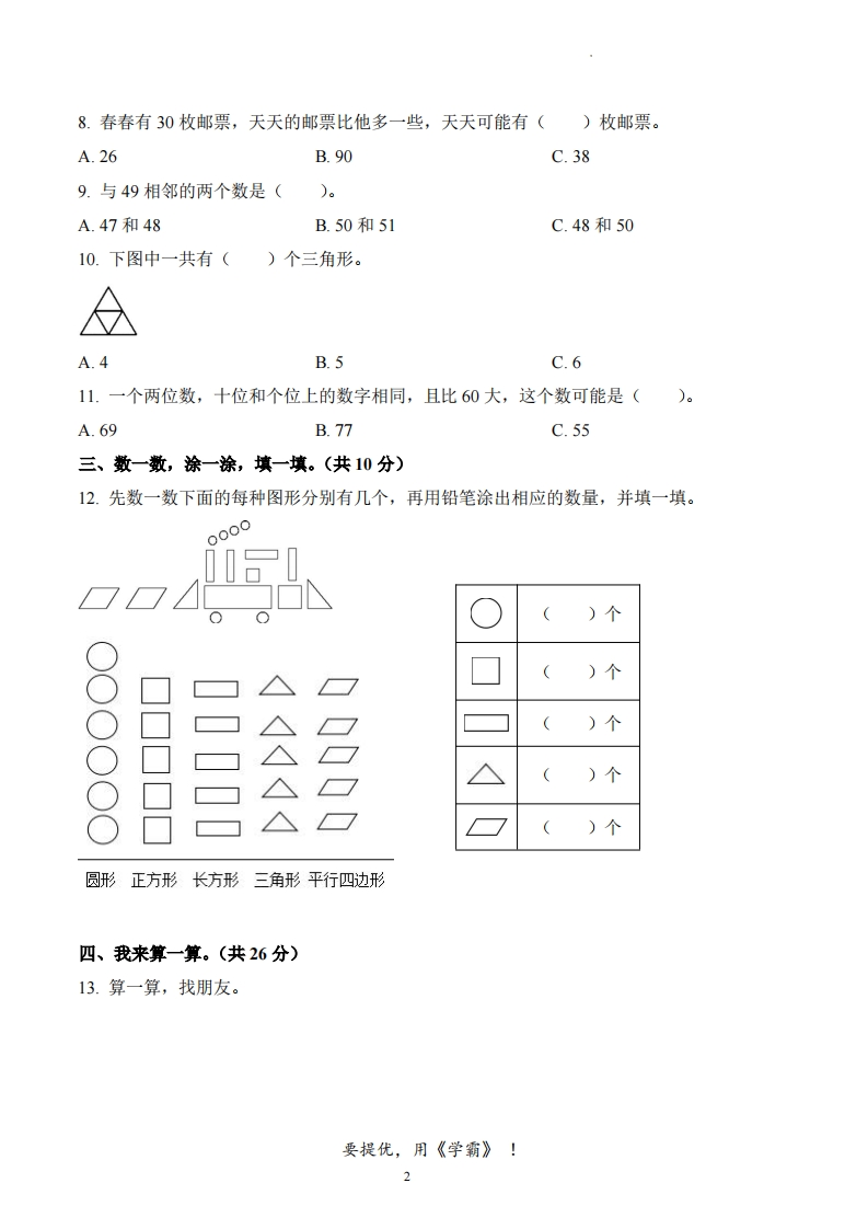 河南省三门峡市陕州区2023-2024学年1年级下册期中教情学情诊断数学试卷芝士老师6个月前发布关注私信0.69MB6页579239河南省三门峡市陕州区2023-2024学年1年级下册期中教情学情诊断数学试卷此内容为付费资源,请付费后查看会员专属资源学期会员免费研学会员免费您暂无购买权限,请先开通会员开通会员强烈推荐123网盘下载,非会员不限速如果下载链接失效请联系客服补发如需手机上下载打印,请用手机浏览器打开本站付费资源 第1页 / 共6页 第2页 / 共6页 试读已结束,还剩4页,您可下载完整版后进行离线阅读 © 版权声明 1 如果您找不到想要的资料, 点击这儿 可以查看网站使用手册! 2 可能会帮助到你: 网址导航 | 网站入门 | 获取邀请码 3 如果遇到付费才能看或下载的文章,建议您升级本站VIP会员;全站所有资源任意下,免费看。 4本站资源部分来自网络,由多位老师收集整理,如有侵犯你的权益请 联系站长,我们会第一时间进行审核删除。 5 站内资源为网友个人学习或测试研究使用,未经原版权作者许可,禁止用于任何商业途径!请在下载24小时内删除! THE END考试试卷专题一年级资料专区# 真题 这套资料真的不错,快分享给您身边最好的朋友吧^_^点赞239 分享QQ空间微博QQ好友海报分享复制链接收藏 可以按Ctrl+D收藏此页面 HI!请登录 登录 注册 搜索 开启精彩搜索 付费资源会员专属资源学期会员免费研学会员免费强烈推荐123网盘下载,非会员不限速如果下载链接失效请联系客服补发如需手机上下载打印,请用手机浏览器打开本站您暂无购买权限,请先开通会员开通会员默写 (12)高频考点 (1)高分必刷 (0)高中语文 (5)高中英语 (7)高中生物 (5)高中数学 (12)高中地理 (5)高中历史 (5)高中化学 (5)预习 (2)音标 (1)雷锋 (0)阅读 (0)阅兵 (5)钱 (6)量词 (3)部首 (1)逻辑 (12)通用 (0) 小吖麻麻关注 这家伙很懒,什么都没有写... s_juan1关注 这家伙很懒,什么都没有写... kele关注 这家伙很懒,什么都没有写... 燕子关注 这家伙很懒,什么都没有写... 四爷关注 这家伙很懒,什么都没有写... 小豆点sun关注 这家伙很懒,什么都没有写... Mouse Dad关注 这家伙很懒,什么都没有写... kuan关注 这家伙很懒,什么都没有写... 领取5000T网盘资源 百度网盘5000T网红资源 立即领取 在手机上浏览此页面 登录没有账号?立即注册手机号或邮箱图形验证码验证码发送验证码记住登录账号密码登录 登录用户名/手机号/邮箱登录密码图形验证码记住登录找回密码 | 免密登录 登录注册已有账号,立即登录设置用户名手机号图形验证码验证码发送验证码设置密码重复密码邀请码(选填)注册已阅读并同意用户协议、隐私声明