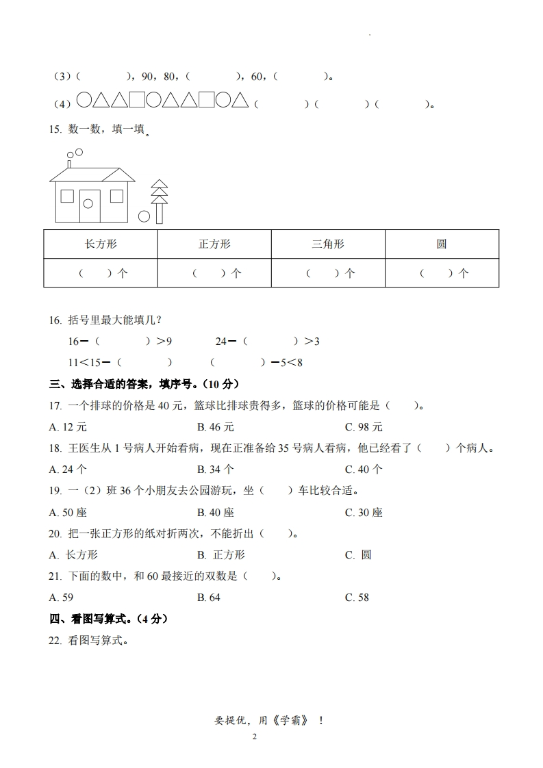 湖南省邵阳市隆回县2023-2024学年1年级下册期中测试数学试卷芝士老师6个月前发布关注私信1.04MB6页762209湖南省邵阳市隆回县2023-2024学年1年级下册期中测试数学试卷此内容为付费资源,请付费后查看会员专属资源学期会员免费研学会员免费您暂无购买权限,请先开通会员开通会员强烈推荐123网盘下载,非会员不限速如果下载链接失效请联系客服补发如需手机上下载打印,请用手机浏览器打开本站付费资源 第1页 / 共6页 第2页 / 共6页 试读已结束,还剩4页,您可下载完整版后进行离线阅读 © 版权声明 1 如果您找不到想要的资料, 点击这儿 可以查看网站使用手册! 2 可能会帮助到你: 网址导航 | 网站入门 | 获取邀请码 3 如果遇到付费才能看或下载的文章,建议您升级本站VIP会员;全站所有资源任意下,免费看。 4本站资源部分来自网络,由多位老师收集整理,如有侵犯你的权益请 联系站长,我们会第一时间进行审核删除。 5 站内资源为网友个人学习或测试研究使用,未经原版权作者许可,禁止用于任何商业途径!请在下载24小时内删除! THE END考试试卷专题一年级资料专区# 真题 这套资料真的不错,快分享给您身边最好的朋友吧^_^点赞209 分享QQ空间微博QQ好友海报分享复制链接收藏 可以按Ctrl+D收藏此页面 HI!请登录 登录 注册 搜索 开启精彩搜索 付费资源会员专属资源学期会员免费研学会员免费强烈推荐123网盘下载,非会员不限速如果下载链接失效请联系客服补发如需手机上下载打印,请用手机浏览器打开本站您暂无购买权限,请先开通会员开通会员默写 (12)高频考点 (1)高分必刷 (0)高中语文 (5)高中英语 (7)高中生物 (5)高中数学 (12)高中地理 (5)高中历史 (5)高中化学 (5)预习 (2)音标 (1)雷锋 (0)阅读 (0)阅兵 (5)钱 (6)量词 (3)部首 (1)逻辑 (12)通用 (0) s_juan1关注 这家伙很懒,什么都没有写... 小吖麻麻关注 这家伙很懒,什么都没有写... kele关注 这家伙很懒,什么都没有写... 燕子关注 这家伙很懒,什么都没有写... 四爷关注 这家伙很懒,什么都没有写... 小豆点sun关注 这家伙很懒,什么都没有写... Mouse Dad关注 这家伙很懒,什么都没有写... kuan关注 这家伙很懒,什么都没有写... 领取5000T网盘资源 百度网盘5000T网红资源 立即领取 在手机上浏览此页面 登录没有账号?立即注册手机号或邮箱图形验证码验证码发送验证码记住登录账号密码登录 登录用户名/手机号/邮箱登录密码图形验证码记住登录找回密码 | 免密登录 登录注册已有账号,立即登录设置用户名手机号图形验证码验证码发送验证码设置密码重复密码邀请码(选填)注册已阅读并同意用户协议、隐私声明