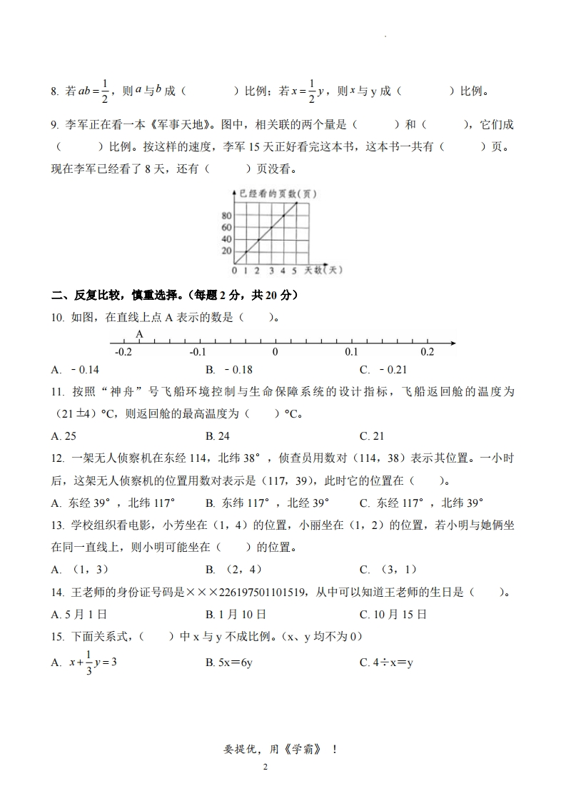 河北省邢台市临西县常白地小学2023-2024学年6年级下册期中测试数学试卷芝士老师6个月前发布关注私信0.58MB8页524143河北省邢台市临西县常白地小学2023-2024学年6年级下册期中测试数学试卷此内容为付费资源,请付费后查看会员专属资源学期会员免费研学会员免费您暂无购买权限,请先开通会员开通会员强烈推荐123网盘下载,非会员不限速如果下载链接失效请联系客服补发如需手机上下载打印,请用手机浏览器打开本站付费资源 第1页 / 共8页 第2页 / 共8页 试读已结束,还剩6页,您可下载完整版后进行离线阅读 © 版权声明 1 如果您找不到想要的资料, 点击这儿 可以查看网站使用手册! 2 可能会帮助到你: 网址导航 | 网站入门 | 获取邀请码 3 如果遇到付费才能看或下载的文章,建议您升级本站VIP会员;全站所有资源任意下,免费看。 4本站资源部分来自网络,由多位老师收集整理,如有侵犯你的权益请 联系站长,我们会第一时间进行审核删除。 5 站内资源为网友个人学习或测试研究使用,未经原版权作者许可,禁止用于任何商业途径!请在下载24小时内删除! THE END考试试卷专题六年级资料专区# 真题 这套资料真的不错,快分享给您身边最好的朋友吧^_^点赞143 分享QQ空间微博QQ好友海报分享复制链接收藏 可以按Ctrl+D收藏此页面 HI!请登录 登录 注册 搜索 开启精彩搜索 付费资源会员专属资源学期会员免费研学会员免费强烈推荐123网盘下载,非会员不限速如果下载链接失效请联系客服补发如需手机上下载打印,请用手机浏览器打开本站您暂无购买权限,请先开通会员开通会员默写 (12)高频考点 (1)高分必刷 (0)高中语文 (5)高中英语 (7)高中生物 (5)高中数学 (12)高中地理 (5)高中历史 (5)高中化学 (5)预习 (2)音标 (1)雷锋 (0)阅读 (0)阅兵 (5)钱 (6)量词 (3)部首 (1)逻辑 (12)通用 (0) s_juan1关注 这家伙很懒,什么都没有写... 小吖麻麻关注 这家伙很懒,什么都没有写... kele关注 这家伙很懒,什么都没有写... 燕子关注 这家伙很懒,什么都没有写... 四爷关注 这家伙很懒,什么都没有写... 小豆点sun关注 这家伙很懒,什么都没有写... Mouse Dad关注 这家伙很懒,什么都没有写... kuan关注 这家伙很懒,什么都没有写... 领取5000T网盘资源 百度网盘5000T网红资源 立即领取 在手机上浏览此页面 登录没有账号?立即注册手机号或邮箱图形验证码验证码发送验证码记住登录账号密码登录 登录用户名/手机号/邮箱登录密码图形验证码记住登录找回密码 | 免密登录 登录注册已有账号,立即登录设置用户名手机号图形验证码验证码发送验证码设置密码重复密码邀请码(选填)注册已阅读并同意用户协议、隐私声明