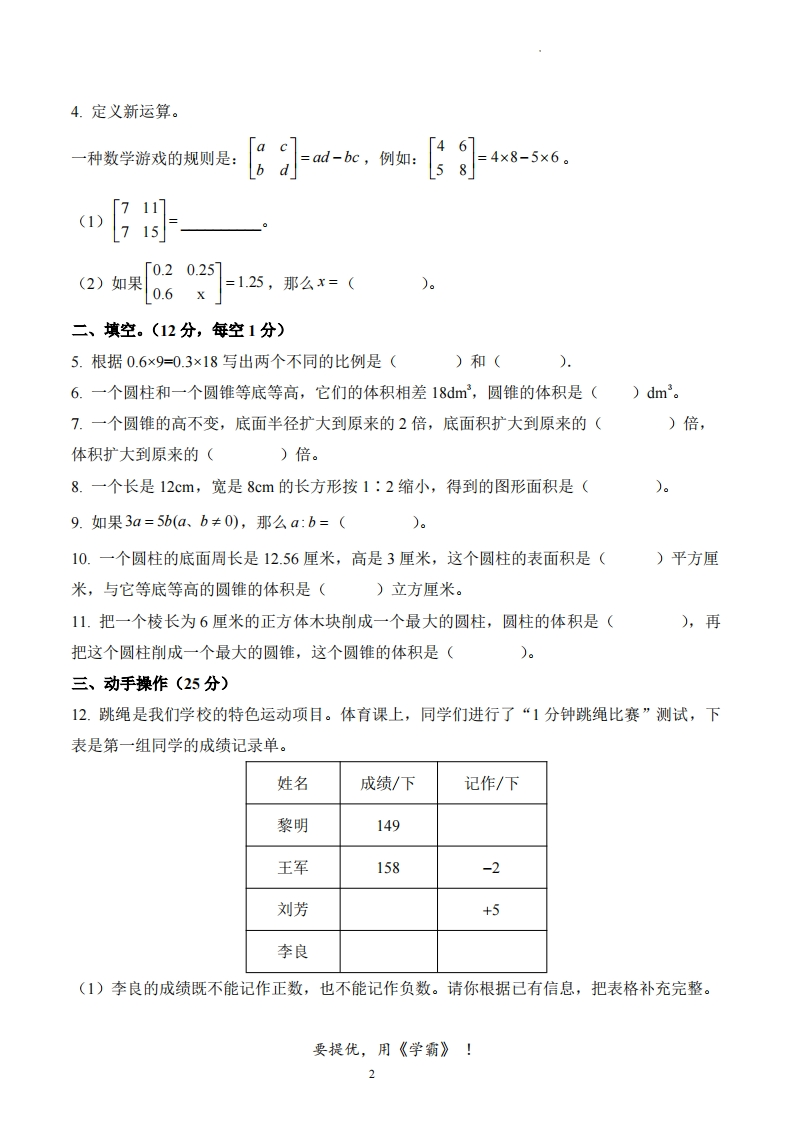 河南省郑州市郑东新区众意路小学人教版6年级下册期中测试数学试卷芝士老师6个月前发布关注私信1.49MB9页530205河南省郑州市郑东新区众意路小学人教版6年级下册期中测试数学试卷此内容为付费资源,请付费后查看会员专属资源学期会员免费研学会员免费您暂无购买权限,请先开通会员开通会员强烈推荐123网盘下载,非会员不限速如果下载链接失效请联系客服补发如需手机上下载打印,请用手机浏览器打开本站付费资源 第1页 / 共9页 第2页 / 共9页 试读已结束,还剩7页,您可下载完整版后进行离线阅读 © 版权声明 1 如果您找不到想要的资料, 点击这儿 可以查看网站使用手册! 2 可能会帮助到你: 网址导航 | 网站入门 | 获取邀请码 3 如果遇到付费才能看或下载的文章,建议您升级本站VIP会员;全站所有资源任意下,免费看。 4本站资源部分来自网络,由多位老师收集整理,如有侵犯你的权益请 联系站长,我们会第一时间进行审核删除。 5 站内资源为网友个人学习或测试研究使用,未经原版权作者许可,禁止用于任何商业途径!请在下载24小时内删除! THE END考试试卷专题六年级资料专区# 真题 这套资料真的不错,快分享给您身边最好的朋友吧^_^点赞205 分享QQ空间微博QQ好友海报分享复制链接收藏 可以按Ctrl+D收藏此页面 HI!请登录 登录 注册 搜索 开启精彩搜索 付费资源会员专属资源学期会员免费研学会员免费强烈推荐123网盘下载,非会员不限速如果下载链接失效请联系客服补发如需手机上下载打印,请用手机浏览器打开本站您暂无购买权限,请先开通会员开通会员默写 (12)高频考点 (1)高分必刷 (0)高中语文 (5)高中英语 (7)高中生物 (5)高中数学 (12)高中地理 (5)高中历史 (5)高中化学 (5)预习 (2)音标 (1)雷锋 (0)阅读 (0)阅兵 (5)钱 (6)量词 (3)部首 (1)逻辑 (12)通用 (0) s_juan1关注 这家伙很懒,什么都没有写... 小吖麻麻关注 这家伙很懒,什么都没有写... kele关注 这家伙很懒,什么都没有写... 燕子关注 这家伙很懒,什么都没有写... 四爷关注 这家伙很懒,什么都没有写... 小豆点sun关注 这家伙很懒,什么都没有写... Mouse Dad关注 这家伙很懒,什么都没有写... kuan关注 这家伙很懒,什么都没有写... 领取5000T网盘资源 百度网盘5000T网红资源 立即领取 在手机上浏览此页面 登录没有账号?立即注册手机号或邮箱图形验证码验证码发送验证码记住登录账号密码登录 登录用户名/手机号/邮箱登录密码图形验证码记住登录找回密码 | 免密登录 登录注册已有账号,立即登录设置用户名手机号图形验证码验证码发送验证码设置密码重复密码邀请码(选填)注册已阅读并同意用户协议、隐私声明