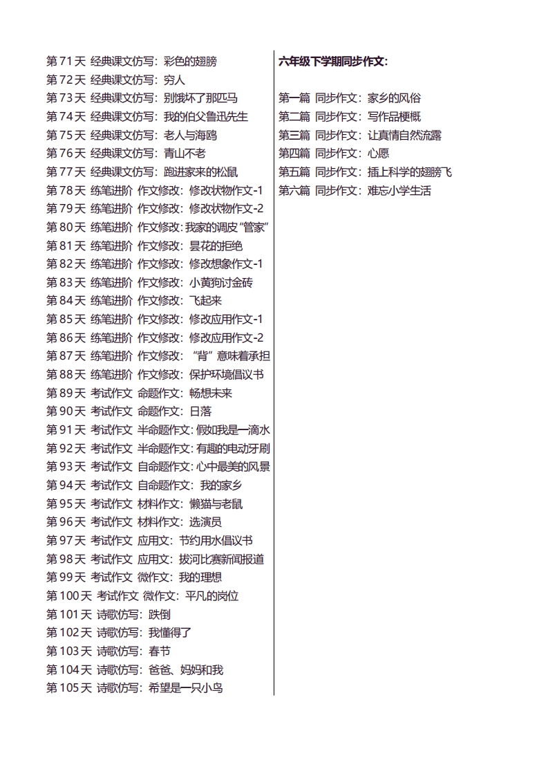 6年级下语文好文仿写小练笔【新】146页芝士老师5个月前更新关注私信2.79MB146页6082266年级下语文好文仿写小练笔【新】146页此内容为付费资源,请付费后查看会员专属资源学期会员20研学会员5您暂无购买权限,请先开通会员开通会员强烈推荐123网盘下载,非会员不限速如果下载链接失效请联系客服补发如需手机上下载打印,请用手机浏览器打开本站大小MB加入VIP会员,畅享海量精品教育资源,同步教材更新,再赠送5000T精品热门网课!付费资源已售 1 第1页 / 共146页 第2页 / 共146页 第3页 / 共146页 第4页 / 共146页 第5页 / 共146页 试读已结束,还剩141页,您可下载完整版后进行离线阅读 © 版权声明 1 如果您找不到想要的资料, 点击这儿 可以查看网站使用手册! 2 可能会帮助到你: 网址导航 | 网站入门 | 获取邀请码 3 如果遇到付费才能看或下载的文章,建议您升级本站VIP会员;全站所有资源任意下,免费看。 4本站资源部分来自网络,由多位老师收集整理,如有侵犯你的权益请 联系站长,我们会第一时间进行审核删除。 5 站内资源为网友个人学习或测试研究使用,未经原版权作者许可,禁止用于任何商业途径!请在下载24小时内删除! THE END看图写话专题六年级资料专区# 看图写话 这套资料真的不错,快分享给您身边最好的朋友吧^_^点赞226 分享QQ空间微博QQ好友海报分享复制链接收藏 可以按Ctrl+D收藏此页面 HI!请登录 登录 注册 搜索 开启精彩搜索 付费资源会员专属资源学期会员20研学会员5强烈推荐123网盘下载,非会员不限速如果下载链接失效请联系客服补发如需手机上下载打印,请用手机浏览器打开本站您暂无购买权限,请先开通会员开通会员大小MB加入VIP会员,畅享海量精品教育资源,同步教材更新,再赠送5000T精品热门网课!已售 1默写 (12)高频考点 (1)高分必刷 (0)高中语文 (5)高中英语 (7)高中生物 (5)高中数学 (12)高中地理 (5)高中历史 (5)高中化学 (5)预习 (2)音标 (1)雷锋 (0)阅读 (0)阅兵 (5)钱 (6)量词 (3)部首 (1)逻辑 (12)通用 (0) 小吖麻麻关注 这家伙很懒,什么都没有写... kele关注 这家伙很懒,什么都没有写... 燕子关注 这家伙很懒,什么都没有写... 四爷关注 这家伙很懒,什么都没有写... 小豆点sun关注 这家伙很懒,什么都没有写... Mouse Dad关注 这家伙很懒,什么都没有写... kuan关注 这家伙很懒,什么都没有写... Wxx08关注 这家伙很懒,什么都没有写... 领取5000T网盘资源 百度网盘5000T网红资源 立即领取 在手机上浏览此页面 登录没有账号?立即注册手机号或邮箱图形验证码验证码发送验证码记住登录账号密码登录 登录用户名/手机号/邮箱登录密码图形验证码记住登录找回密码 | 免密登录 登录注册已有账号,立即登录设置用户名手机号图形验证码验证码发送验证码设置密码重复密码邀请码(选填)注册已阅读并同意用户协议、隐私声明