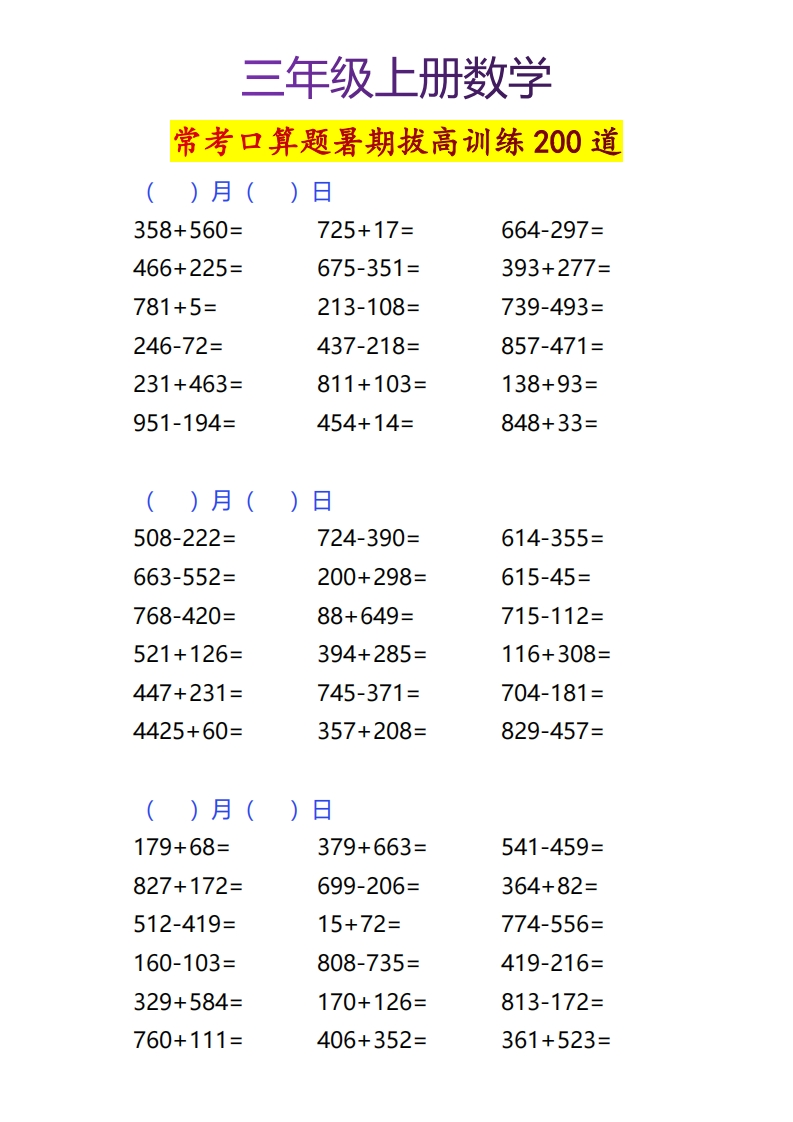 【2025秋新版】三年级上册数学常考口算题暑期拔高训练200道芝士老师3个月前发布关注私信0.25MB4页721194【2025秋新版】三年级上册数学常考口算题暑期拔高训练200道此内容为付费资源,请付费后查看会员专属资源学期会员免费研学会员免费您暂无购买权限,请先开通会员开通会员强烈推荐123网盘下载,非会员不限速如果下载链接失效请联系客服补发如需手机上下载打印,请用手机浏览器打开本站付费资源 第1页 / 共4页 第2页 / 共4页 试读已结束,还剩2页,您可下载完整版后进行离线阅读 © 版权声明 1 如果您找不到想要的资料, 点击这儿 可以查看网站使用手册! 2 可能会帮助到你: 网址导航 | 网站入门 | 获取邀请码 3 如果遇到付费才能看或下载的文章,建议您升级本站VIP会员;全站所有资源任意下,免费看。 4本站资源部分来自网络,由多位老师收集整理,如有侵犯你的权益请 联系站长,我们会第一时间进行审核删除。 5 站内资源为网友个人学习或测试研究使用,未经原版权作者许可,禁止用于任何商业途径!请在下载24小时内删除! THE END三年级资料专区# 口算 这套资料真的不错,快分享给您身边最好的朋友吧^_^点赞194 分享QQ空间微博QQ好友海报分享复制链接收藏 可以按Ctrl+D收藏此页面 HI!请登录 登录 注册 搜索 开启精彩搜索 付费资源会员专属资源学期会员免费研学会员免费强烈推荐123网盘下载,非会员不限速如果下载链接失效请联系客服补发如需手机上下载打印,请用手机浏览器打开本站您暂无购买权限,请先开通会员开通会员默写 (12)高频考点 (1)高分必刷 (0)高中语文 (5)高中英语 (7)高中生物 (5)高中数学 (12)高中地理 (5)高中历史 (5)高中化学 (5)预习 (2)音标 (1)雷锋 (0)阅读 (0)阅兵 (5)钱 (6)量词 (3)部首 (1)逻辑 (12)通用 (0) s_juan1关注 这家伙很懒,什么都没有写... 小吖麻麻关注 这家伙很懒,什么都没有写... kele关注 这家伙很懒,什么都没有写... 燕子关注 这家伙很懒,什么都没有写... 四爷关注 这家伙很懒,什么都没有写... 小豆点sun关注 这家伙很懒,什么都没有写... Mouse Dad关注 这家伙很懒,什么都没有写... kuan关注 这家伙很懒,什么都没有写... 领取5000T网盘资源 百度网盘5000T网红资源 立即领取 在手机上浏览此页面 登录没有账号?立即注册手机号或邮箱图形验证码验证码发送验证码记住登录账号密码登录 登录用户名/手机号/邮箱登录密码图形验证码记住登录找回密码 | 免密登录 登录注册已有账号,立即登录设置用户名手机号图形验证码验证码发送验证码设置密码重复密码邀请码(选填)注册已阅读并同意用户协议、隐私声明