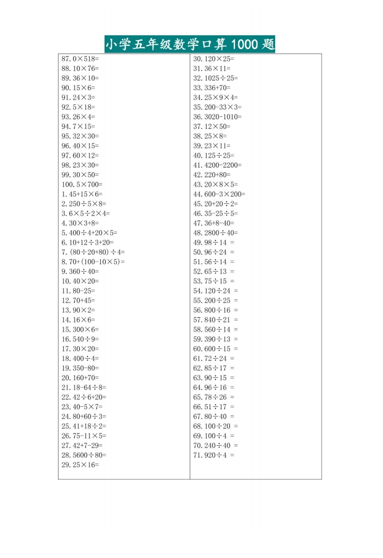 五升六暑假数学口算专练芝士老师3个月前发布关注私信1.95MB15页27210五升六暑假数学口算专练此内容为付费资源,请付费后查看会员专属资源学期会员免费研学会员免费您暂无购买权限,请先开通会员开通会员强烈推荐123网盘下载,非会员不限速如果下载链接失效请联系客服补发如需手机上下载打印,请用手机浏览器打开本站付费资源 第1页 / 共15页 第2页 / 共15页 第3页 / 共15页 试读已结束,还剩12页,您可下载完整版后进行离线阅读 © 版权声明 1 如果您找不到想要的资料, 点击这儿 可以查看网站使用手册! 2 可能会帮助到你: 网址导航 | 网站入门 | 获取邀请码 3 如果遇到付费才能看或下载的文章,建议您升级本站VIP会员;全站所有资源任意下,免费看。 4本站资源部分来自网络,由多位老师收集整理,如有侵犯你的权益请 联系站长,我们会第一时间进行审核删除。 5 站内资源为网友个人学习或测试研究使用,未经原版权作者许可,禁止用于任何商业途径!请在下载24小时内删除! THE END五年级资料专区# 口算 这套资料真的不错,快分享给您身边最好的朋友吧^_^点赞0 分享QQ空间微博QQ好友海报分享复制链接收藏 可以按Ctrl+D收藏此页面 HI!请登录 登录 注册 搜索 开启精彩搜索 付费资源会员专属资源学期会员免费研学会员免费强烈推荐123网盘下载,非会员不限速如果下载链接失效请联系客服补发如需手机上下载打印,请用手机浏览器打开本站您暂无购买权限,请先开通会员开通会员默写 (12)高频考点 (1)高分必刷 (0)高中语文 (5)高中英语 (7)高中生物 (5)高中数学 (12)高中地理 (5)高中历史 (5)高中化学 (5)预习 (2)音标 (1)雷锋 (0)阅读 (0)阅兵 (5)钱 (6)量词 (3)部首 (1)逻辑 (12)通用 (0) s_juan1关注 这家伙很懒,什么都没有写... 小吖麻麻关注 这家伙很懒,什么都没有写... kele关注 这家伙很懒,什么都没有写... 燕子关注 这家伙很懒,什么都没有写... 四爷关注 这家伙很懒,什么都没有写... 小豆点sun关注 这家伙很懒,什么都没有写... Mouse Dad关注 这家伙很懒,什么都没有写... kuan关注 这家伙很懒,什么都没有写... 领取5000T网盘资源 百度网盘5000T网红资源 立即领取 在手机上浏览此页面 登录没有账号?立即注册手机号或邮箱图形验证码验证码发送验证码记住登录账号密码登录 登录用户名/手机号/邮箱登录密码图形验证码记住登录找回密码 | 免密登录 登录注册已有账号,立即登录设置用户名手机号图形验证码验证码发送验证码设置密码重复密码邀请码(选填)注册已阅读并同意用户协议、隐私声明