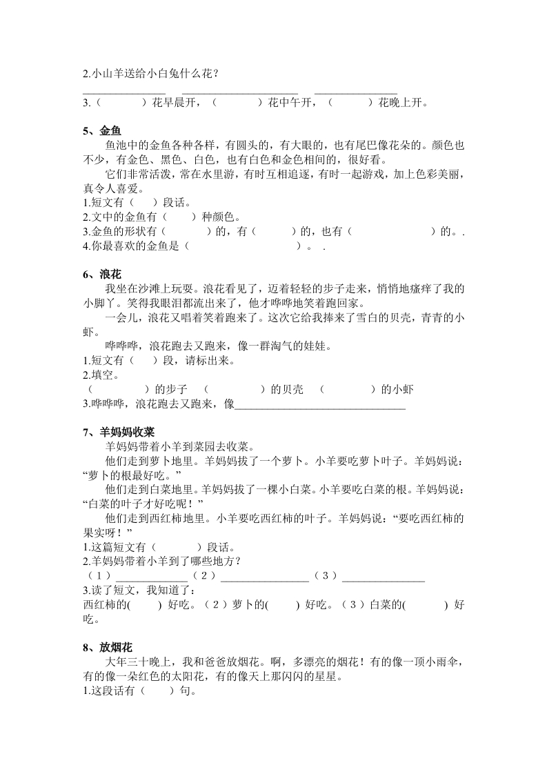 1年级短文阅读练习30篇芝士老师3个月前发布关注私信69KB10页192401年级短文阅读练习30篇此内容为付费资源,请付费后查看会员专属资源学期会员免费研学会员免费您暂无购买权限,请先开通会员开通会员强烈推荐123网盘下载,非会员不限速如果下载链接失效请联系客服补发如需手机上下载打印,请用手机浏览器打开本站付费资源 第1页 / 共10页 第2页 / 共10页 试读已结束,还剩8页,您可下载完整版后进行离线阅读 © 版权声明 1 如果您找不到想要的资料, 点击这儿 可以查看网站使用手册! 2 可能会帮助到你: 网址导航 | 网站入门 | 获取邀请码 3 如果遇到付费才能看或下载的文章,建议您升级本站VIP会员;全站所有资源任意下,免费看。 4本站资源部分来自网络,由多位老师收集整理,如有侵犯你的权益请 联系站长,我们会第一时间进行审核删除。 5 站内资源为网友个人学习或测试研究使用,未经原版权作者许可,禁止用于任何商业途径!请在下载24小时内删除! THE END一年级资料专区 这套资料真的不错,快分享给您身边最好的朋友吧^_^点赞0 分享QQ空间微博QQ好友海报分享复制链接收藏 可以按Ctrl+D收藏此页面 HI!请登录 登录 注册 搜索 开启精彩搜索 付费资源会员专属资源学期会员免费研学会员免费强烈推荐123网盘下载,非会员不限速如果下载链接失效请联系客服补发如需手机上下载打印,请用手机浏览器打开本站您暂无购买权限,请先开通会员开通会员默写 (12)高频考点 (1)高分必刷 (0)高中语文 (5)高中英语 (7)高中生物 (5)高中数学 (12)高中地理 (5)高中历史 (5)高中化学 (5)预习 (2)音标 (1)雷锋 (0)阅读 (0)阅兵 (5)钱 (6)量词 (3)部首 (1)逻辑 (12)通用 (0) 小吖麻麻关注 这家伙很懒,什么都没有写... kele关注 这家伙很懒,什么都没有写... 燕子关注 这家伙很懒,什么都没有写... 四爷关注 这家伙很懒,什么都没有写... 小豆点sun关注 这家伙很懒,什么都没有写... Mouse Dad关注 这家伙很懒,什么都没有写... kuan关注 这家伙很懒,什么都没有写... Wxx08关注 这家伙很懒,什么都没有写... 领取5000T网盘资源 百度网盘5000T网红资源 立即领取 在手机上浏览此页面 登录没有账号?立即注册手机号或邮箱图形验证码验证码发送验证码记住登录账号密码登录 登录用户名/手机号/邮箱登录密码图形验证码记住登录找回密码 | 免密登录 登录注册已有账号,立即登录设置用户名手机号图形验证码验证码发送验证码设置密码重复密码邀请码(选填)注册已阅读并同意用户协议、隐私声明