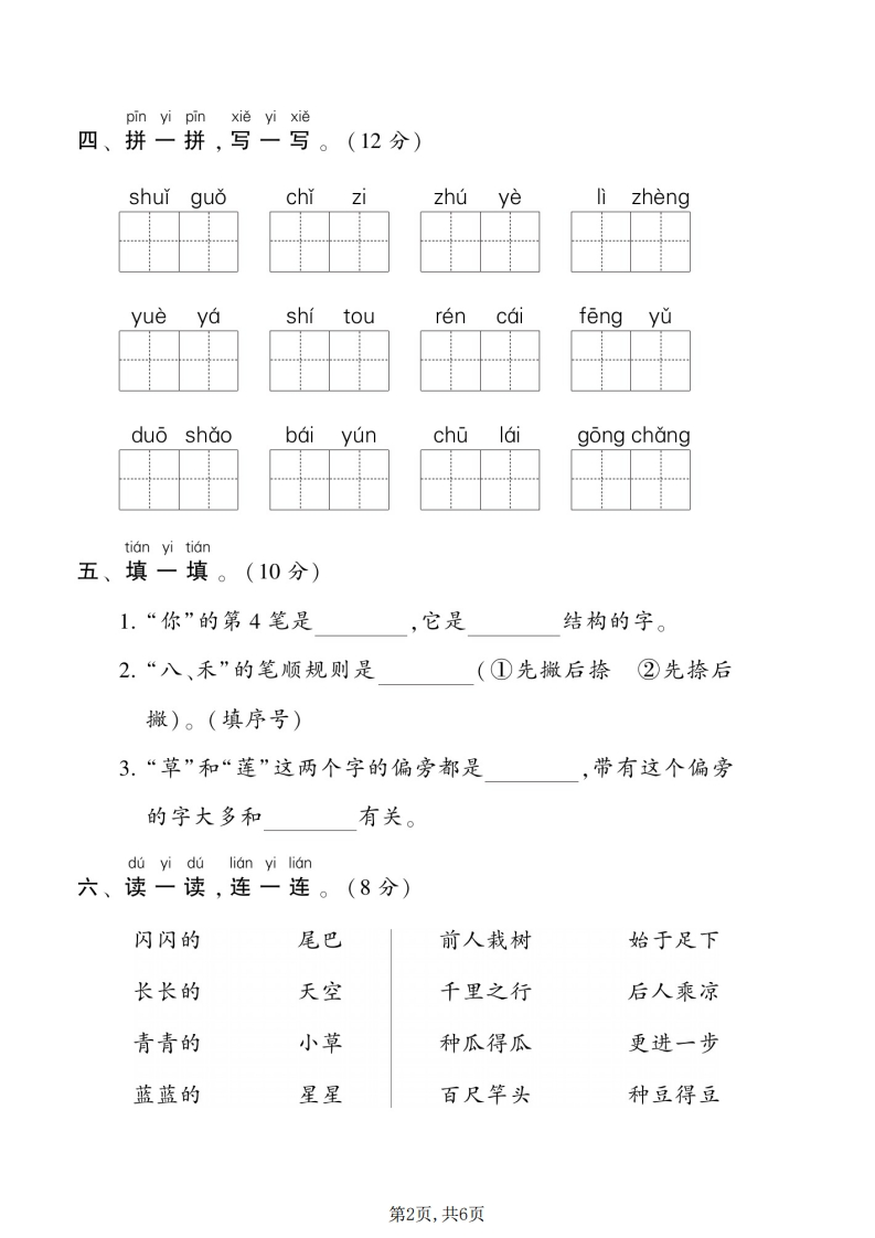 一年级(上)语文期末测试卷芝士老师40天前发布关注私信3.04MB7页28282353一年级(上)语文期末测试卷此内容为付费资源,请付费后查看会员专属资源学期会员1研学会员免费您暂无购买权限,请先开通会员开通会员强烈推荐123网盘下载,非会员不限速如果下载链接失效请联系客服补发如需手机上下载打印,请用手机浏览器打开本站付费资源 第1页 / 共7页 第2页 / 共7页 试读已结束,还剩5页,您可下载完整版后进行离线阅读 © 版权声明 1 如果您找不到想要的资料, 点击这儿 可以查看网站使用手册! 2 可能会帮助到你: 网址导航 | 网站入门 | 获取邀请码 3 如果遇到付费才能看或下载的文章,建议您升级本站VIP会员;全站所有资源任意下,免费看。 4本站资源部分来自网络,由多位老师收集整理,如有侵犯你的权益请 联系站长,我们会第一时间进行审核删除。 5 站内资源为网友个人学习或测试研究使用,未经原版权作者许可,禁止用于任何商业途径!请在下载24小时内删除! THE END考试试卷专题一年级资料专区# 期末# 测试 这套资料真的不错,快分享给您身边最好的朋友吧^_^点赞2353 分享QQ空间微博QQ好友海报分享复制链接收藏 可以按Ctrl+D收藏此页面 HI!请登录 登录 注册 搜索 开启精彩搜索 付费资源会员专属资源学期会员1研学会员免费强烈推荐123网盘下载,非会员不限速如果下载链接失效请联系客服补发如需手机上下载打印,请用手机浏览器打开本站您暂无购买权限,请先开通会员开通会员默写 (15)高频考点 (1)高分必刷 (0)高中语文 (5)高中英语 (7)高中生物 (5)高中数学 (12)高中地理 (5)高中历史 (5)高中化学 (5)预习 (2)音标 (1)雷锋 (0)阅读 (0)阅兵 (5)钱 (6)量词 (3)部首 (1)逻辑 (12)通用 (0) LopLop关注 这家伙很懒,什么都没有写... kuan关注 这家伙很懒,什么都没有写... duoduo关注 这家伙很懒,什么都没有写... s_juan1关注 这家伙很懒,什么都没有写... Echo Chen关注 这家伙很懒,什么都没有写... 燕子关注 这家伙很懒,什么都没有写... s281772578关注 这家伙很懒,什么都没有写... full关注 这家伙很懒,什么都没有写... 领取5000T网盘资源 百度网盘5000T网红资源 立即领取 在手机上浏览此页面 登录没有账号?立即注册手机号或邮箱图形验证码验证码发送验证码记住登录账号密码登录 登录用户名/手机号/邮箱登录密码图形验证码记住登录找回密码 | 免密登录 登录注册已有账号,立即登录设置用户名手机号图形验证码验证码发送验证码设置密码重复密码邀请码(选填)注册已阅读并同意用户协议、隐私声明