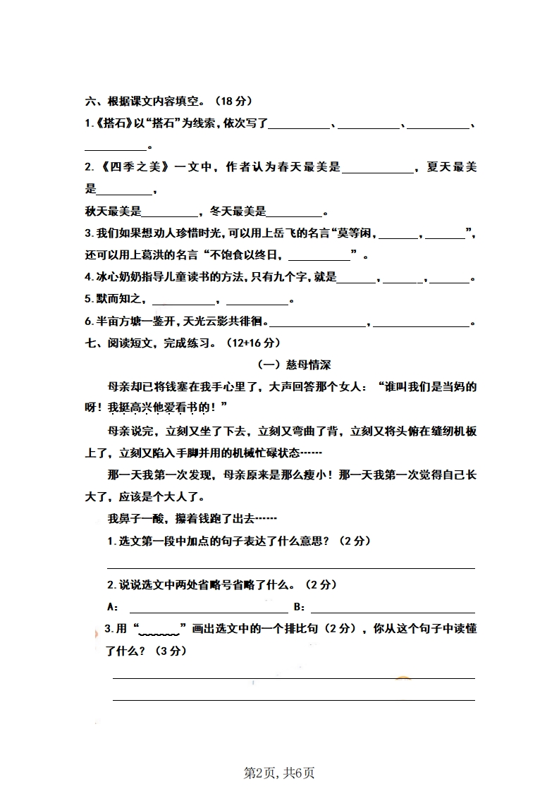 五年级(上)语文期末测试卷芝士老师41天前发布关注私信0.54MB7页22303062五年级(上)语文期末测试卷此内容为付费资源,请付费后查看会员专属资源学期会员1研学会员免费您暂无购买权限,请先开通会员开通会员升级研学会员解锁更多下载权限每天签到可以获得更多积分呦升级研学会员解锁知识宝库如果内容失效请联系客服付费资源 第1页 / 共7页 第2页 / 共7页 试读已结束,还剩5页,您可下载完整版后进行离线阅读 © 版权声明 1 如果您找不到想要的资料, 点击这儿 可以查看网站使用手册! 2 可能会帮助到你: 网址导航 | 网站入门 | 获取邀请码 3 如果遇到付费才能看或下载的文章,建议您升级本站VIP会员;全站所有资源任意下,免费看。 4本站资源部分来自网络,由多位老师收集整理,如有侵犯你的权益请 联系站长,我们会第一时间进行审核删除。 5 站内资源为网友个人学习或测试研究使用,未经原版权作者许可,禁止用于任何商业途径!请在下载24小时内删除! THE END考试试卷专题五年级资料专区# 期末# 测试 这套资料真的不错,快分享给您身边最好的朋友吧^_^点赞3062 分享QQ空间微博QQ好友海报分享复制链接收藏 可以按Ctrl+D收藏此页面 HI!请登录 登录 注册 搜索 开启精彩搜索 付费资源会员专属资源学期会员1研学会员免费升级研学会员解锁更多下载权限每天签到可以获得更多积分呦升级研学会员解锁知识宝库如果内容失效请联系客服您暂无购买权限,请先开通会员开通会员默写 (23)高频考点 (1)高分必刷 (0)高中语文 (5)高中英语 (7)高中生物 (5)高中数学 (12)高中地理 (5)高中历史 (5)高中化学 (5)预习 (2)音标 (1)雷锋 (0)阅读 (0)阅兵 (5)钱 (6)量词 (3)部首 (1)逻辑 (12)通用 (0) 贺贺关注 这家伙很懒,什么都没有写... LopLop关注 这家伙很懒,什么都没有写... duoduo关注 这家伙很懒,什么都没有写... kuan关注 这家伙很懒,什么都没有写... s_juan1关注 这家伙很懒,什么都没有写... Echo Chen关注 这家伙很懒,什么都没有写... 燕子关注 这家伙很懒,什么都没有写... s281772578关注 这家伙很懒,什么都没有写... 在手机上浏览此页面 登录没有账号?立即注册手机号或邮箱图形验证码验证码发送验证码记住登录账号密码登录 登录用户名/手机号/邮箱登录密码图形验证码记住登录找回密码 | 免密登录 登录注册已有账号,立即登录设置用户名手机号图形验证码验证码发送验证码设置密码重复密码邀请码(选填)注册已阅读并同意用户协议、隐私声明