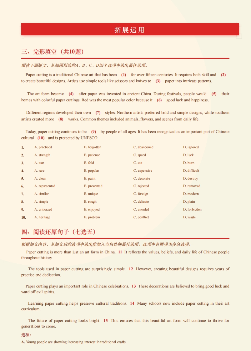 英语阅读-剪纸艺术芝士老师1小时前发布关注私信3.58MB5页29943185英语阅读-剪纸艺术此内容为付费资源,请付费后查看会员专属资源学期会员2研学会员免费您暂无购买权限,请先开通会员开通会员升级研学会员解锁更多下载权限每天签到可以获得更多积分呦升级研学会员解锁知识宝库如果内容失效请联系客服付费资源 第1页 / 共5页 第2页 / 共5页 第3页 / 共5页 试读已结束,还剩2页,您可下载完整版后进行离线阅读 © 版权声明 1 如果您找不到想要的资料, 点击这儿 可以查看网站使用手册! 2 可能会帮助到你: 网址导航 | 网站入门 | 获取邀请码 3 如果遇到付费才能看或下载的文章,建议您升级本站VIP会员;全站所有资源任意下,免费看。 4本站资源部分来自网络,由多位老师收集整理,如有侵犯你的权益请 联系站长,我们会第一时间进行审核删除。 5 站内资源为网友个人学习或测试研究使用,未经原版权作者许可,禁止用于任何商业途径!请在下载24小时内删除! THE END英语学习资料试题# 英语阅读 这套资料真的不错,快分享给您身边最好的朋友吧^_^点赞3185 分享QQ空间微博QQ好友海报分享复制链接收藏 可以按Ctrl+D收藏此页面 HI!请登录 登录 注册 搜索 开启精彩搜索 付费资源会员专属资源学期会员2研学会员免费升级研学会员解锁更多下载权限每天签到可以获得更多积分呦升级研学会员解锁知识宝库如果内容失效请联系客服您暂无购买权限,请先开通会员开通会员默写 (23)高频考点 (1)高分必刷 (0)高中语文 (5)高中英语 (7)高中生物 (5)高中数学 (12)高中地理 (5)高中历史 (5)高中化学 (5)预习 (2)音标 (1)雷锋 (0)阅读 (0)阅兵 (5)钱 (6)量词 (3)部首 (1)逻辑 (12)通用 (0) LopLop关注 这家伙很懒,什么都没有写... kuan关注 这家伙很懒,什么都没有写... duoduo关注 这家伙很懒,什么都没有写... s_juan1关注 这家伙很懒,什么都没有写... Echo Chen关注 这家伙很懒,什么都没有写... 燕子关注 这家伙很懒,什么都没有写... s281772578关注 这家伙很懒,什么都没有写... full关注 这家伙很懒,什么都没有写... 领取5000T网盘资源 百度网盘5000T网红资源 立即领取 在手机上浏览此页面 登录没有账号?立即注册手机号或邮箱图形验证码验证码发送验证码记住登录账号密码登录 登录用户名/手机号/邮箱登录密码图形验证码记住登录找回密码 | 免密登录 登录注册已有账号,立即登录设置用户名手机号图形验证码验证码发送验证码设置密码重复密码邀请码(选填)注册已阅读并同意用户协议、隐私声明