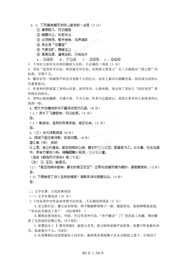 2012年高考语文试卷(福建)(空白卷)芝士老师9小时前发布关注私信0.45MB8页471731062012年高考语文试卷(福建)(空白卷)此内容为付费资源,请付费后查看会员专属资源学期会员免费研学会员免费您暂无购买权限,请先开通会员开通会员升级研学会员解锁更多下载权限每天签到可以获得更多积分呦升级研学会员解锁知识宝库如果内容失效请联系客服付费资源 第1页 / 共8页 第2页 / 共8页 第3页 / 共8页 试读已结束,还剩5页,您可下载完整版后进行离线阅读 © 版权声明 1 如果您找不到想要的资料, 点击这儿 可以查看网站使用手册! 2 可能会帮助到你: 网址导航 | 网站入门 | 获取邀请码 3 如果遇到付费才能看或下载的文章,建议您升级本站VIP会员;全站所有资源任意下,免费看。 4本站资源部分来自网络,由多位老师收集整理,如有侵犯你的权益请 联系站长,我们会第一时间进行审核删除。 5 站内资源为网友个人学习或测试研究使用,未经原版权作者许可,禁止用于任何商业途径!请在下载24小时内删除! THE END高考刷题 这套资料真的不错,快分享给您身边最好的朋友吧^_^点赞3106 分享QQ空间微博QQ好友海报分享复制链接收藏 可以按Ctrl+D收藏此页面 HI!请登录 登录 注册 搜索 开启精彩搜索 付费资源会员专属资源学期会员免费研学会员免费升级研学会员解锁更多下载权限每天签到可以获得更多积分呦升级研学会员解锁知识宝库如果内容失效请联系客服您暂无购买权限,请先开通会员开通会员默写 (23)高频考点 (1)高分必刷 (0)高中语文 (5)高中英语 (7)高中生物 (5)高中数学 (12)高中地理 (5)高中历史 (5)高中化学 (5)预习 (2)音标 (1)雷锋 (0)阅读 (0)阅兵 (5)钱 (6)量词 (3)部首 (1)逻辑 (12)通用 (0) duoduo关注 这家伙很懒,什么都没有写... LopLop关注 这家伙很懒,什么都没有写... kuan关注 这家伙很懒,什么都没有写... s_juan1关注 这家伙很懒,什么都没有写... Echo Chen关注 这家伙很懒,什么都没有写... 燕子关注 这家伙很懒,什么都没有写... s281772578关注 这家伙很懒,什么都没有写... full关注 这家伙很懒,什么都没有写... 领取5000T网盘资源 百度网盘5000T网红资源 立即领取 在手机上浏览此页面 登录没有账号?立即注册手机号或邮箱图形验证码验证码发送验证码记住登录账号密码登录 登录用户名/手机号/邮箱登录密码图形验证码记住登录找回密码 | 免密登录 登录注册已有账号,立即登录设置用户名手机号图形验证码验证码发送验证码设置密码重复密码邀请码(选填)注册已阅读并同意用户协议、隐私声明