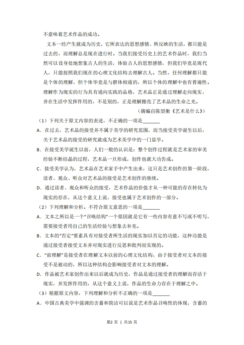 2015年高考语文试卷(新课标Ⅱ卷)(空白卷)芝士老师8小时前发布关注私信0.41MB15页450714282015年高考语文试卷(新课标Ⅱ卷)(空白卷)此内容为付费资源,请付费后查看会员专属资源学期会员免费研学会员免费您暂无购买权限,请先开通会员开通会员升级研学会员解锁更多下载权限每天签到可以获得更多积分呦升级研学会员解锁知识宝库如果内容失效请联系客服付费资源 第1页 / 共15页 第2页 / 共15页 第3页 / 共15页 试读已结束,还剩12页,您可下载完整版后进行离线阅读 © 版权声明 1 如果您找不到想要的资料, 点击这儿 可以查看网站使用手册! 2 可能会帮助到你: 网址导航 | 网站入门 | 获取邀请码 3 如果遇到付费才能看或下载的文章,建议您升级本站VIP会员;全站所有资源任意下,免费看。 4本站资源部分来自网络,由多位老师收集整理,如有侵犯你的权益请 联系站长,我们会第一时间进行审核删除。 5 站内资源为网友个人学习或测试研究使用,未经原版权作者许可,禁止用于任何商业途径!请在下载24小时内删除! THE END高考刷题 这套资料真的不错,快分享给您身边最好的朋友吧^_^点赞1428 分享QQ空间微博QQ好友海报分享复制链接收藏 可以按Ctrl+D收藏此页面 HI!请登录 登录 注册 搜索 开启精彩搜索 付费资源会员专属资源学期会员免费研学会员免费升级研学会员解锁更多下载权限每天签到可以获得更多积分呦升级研学会员解锁知识宝库如果内容失效请联系客服您暂无购买权限,请先开通会员开通会员默写 (23)高频考点 (1)高分必刷 (0)高中语文 (5)高中英语 (7)高中生物 (5)高中数学 (12)高中地理 (5)高中历史 (5)高中化学 (5)预习 (2)音标 (1)雷锋 (0)阅读 (0)阅兵 (5)钱 (6)量词 (3)部首 (1)逻辑 (12)通用 (0) duoduo关注 这家伙很懒,什么都没有写... LopLop关注 这家伙很懒,什么都没有写... kuan关注 这家伙很懒,什么都没有写... s_juan1关注 这家伙很懒,什么都没有写... Echo Chen关注 这家伙很懒,什么都没有写... 燕子关注 这家伙很懒,什么都没有写... s281772578关注 这家伙很懒,什么都没有写... full关注 这家伙很懒,什么都没有写... 领取5000T网盘资源 百度网盘5000T网红资源 立即领取 在手机上浏览此页面 登录没有账号?立即注册手机号或邮箱图形验证码验证码发送验证码记住登录账号密码登录 登录用户名/手机号/邮箱登录密码图形验证码记住登录找回密码 | 免密登录 登录注册已有账号,立即登录设置用户名手机号图形验证码验证码发送验证码设置密码重复密码邀请码(选填)注册已阅读并同意用户协议、隐私声明