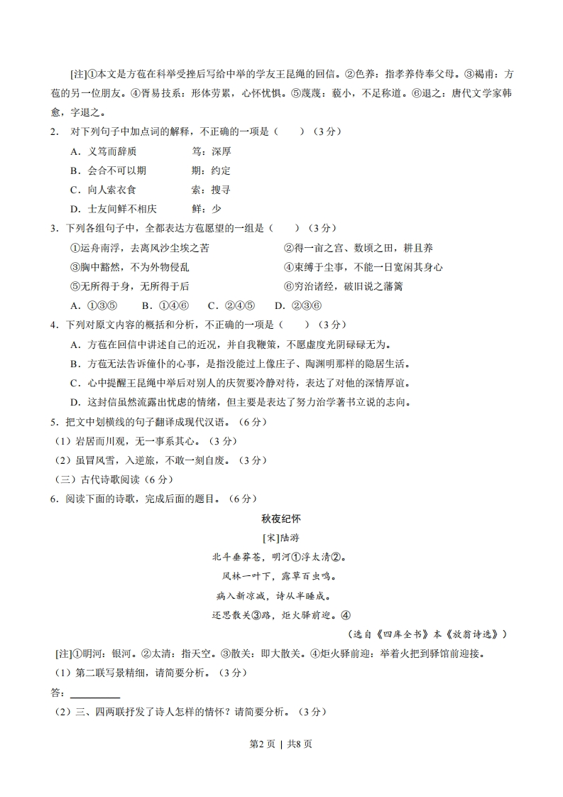 2015年高考语文试卷(福建)(空白卷)芝士老师11小时前发布关注私信0.40MB8页409532862015年高考语文试卷(福建)(空白卷)此内容为付费资源,请付费后查看会员专属资源学期会员免费研学会员免费您暂无购买权限,请先开通会员开通会员升级研学会员解锁更多下载权限每天签到可以获得更多积分呦升级研学会员解锁知识宝库如果内容失效请联系客服付费资源 第1页 / 共8页 第2页 / 共8页 第3页 / 共8页 试读已结束,还剩5页,您可下载完整版后进行离线阅读 © 版权声明 1 如果您找不到想要的资料, 点击这儿 可以查看网站使用手册! 2 可能会帮助到你: 网址导航 | 网站入门 | 获取邀请码 3 如果遇到付费才能看或下载的文章,建议您升级本站VIP会员;全站所有资源任意下,免费看。 4本站资源部分来自网络,由多位老师收集整理,如有侵犯你的权益请 联系站长,我们会第一时间进行审核删除。 5 站内资源为网友个人学习或测试研究使用,未经原版权作者许可,禁止用于任何商业途径!请在下载24小时内删除! THE END高考刷题 这套资料真的不错,快分享给您身边最好的朋友吧^_^点赞3286 分享QQ空间微博QQ好友海报分享复制链接收藏 可以按Ctrl+D收藏此页面 HI!请登录 登录 注册 搜索 开启精彩搜索 付费资源会员专属资源学期会员免费研学会员免费升级研学会员解锁更多下载权限每天签到可以获得更多积分呦升级研学会员解锁知识宝库如果内容失效请联系客服您暂无购买权限,请先开通会员开通会员默写 (23)高频考点 (1)高分必刷 (0)高中语文 (5)高中英语 (7)高中生物 (5)高中数学 (12)高中地理 (5)高中历史 (5)高中化学 (5)预习 (2)音标 (1)雷锋 (0)阅读 (0)阅兵 (5)钱 (6)量词 (3)部首 (1)逻辑 (12)通用 (0) LopLop关注 这家伙很懒,什么都没有写... duoduo关注 这家伙很懒,什么都没有写... kuan关注 这家伙很懒,什么都没有写... s_juan1关注 这家伙很懒,什么都没有写... Echo Chen关注 这家伙很懒,什么都没有写... 燕子关注 这家伙很懒,什么都没有写... s281772578关注 这家伙很懒,什么都没有写... full关注 这家伙很懒,什么都没有写... 领取5000T网盘资源 百度网盘5000T网红资源 立即领取 在手机上浏览此页面 登录没有账号?立即注册手机号或邮箱图形验证码验证码发送验证码记住登录账号密码登录 登录用户名/手机号/邮箱登录密码图形验证码记住登录找回密码 | 免密登录 登录注册已有账号,立即登录设置用户名手机号图形验证码验证码发送验证码设置密码重复密码邀请码(选填)注册已阅读并同意用户协议、隐私声明