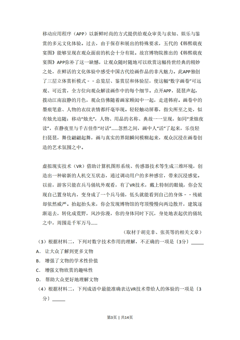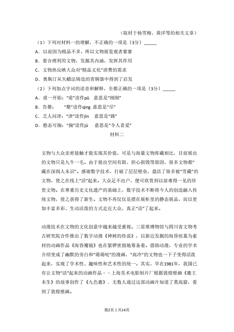 2017年高考语文试卷(北京)(空白卷)芝士老师9小时前发布关注私信0.34MB14页441125562017年高考语文试卷(北京)(空白卷)此内容为付费资源,请付费后查看会员专属资源学期会员免费研学会员免费您暂无购买权限,请先开通会员开通会员升级研学会员解锁更多下载权限每天签到可以获得更多积分呦升级研学会员解锁知识宝库如果内容失效请联系客服付费资源 第1页 / 共14页 第2页 / 共14页 第3页 / 共14页 试读已结束,还剩11页,您可下载完整版后进行离线阅读 © 版权声明 1 如果您找不到想要的资料, 点击这儿 可以查看网站使用手册! 2 可能会帮助到你: 网址导航 | 网站入门 | 获取邀请码 3 如果遇到付费才能看或下载的文章,建议您升级本站VIP会员;全站所有资源任意下,免费看。 4本站资源部分来自网络,由多位老师收集整理,如有侵犯你的权益请 联系站长,我们会第一时间进行审核删除。 5 站内资源为网友个人学习或测试研究使用,未经原版权作者许可,禁止用于任何商业途径!请在下载24小时内删除! THE END高考刷题 这套资料真的不错,快分享给您身边最好的朋友吧^_^点赞2556 分享QQ空间微博QQ好友海报分享复制链接收藏 可以按Ctrl+D收藏此页面 HI!请登录 登录 注册 搜索 开启精彩搜索 付费资源会员专属资源学期会员免费研学会员免费升级研学会员解锁更多下载权限每天签到可以获得更多积分呦升级研学会员解锁知识宝库如果内容失效请联系客服您暂无购买权限,请先开通会员开通会员默写 (23)高频考点 (1)高分必刷 (0)高中语文 (5)高中英语 (7)高中生物 (5)高中数学 (12)高中地理 (5)高中历史 (5)高中化学 (5)预习 (2)音标 (1)雷锋 (0)阅读 (0)阅兵 (5)钱 (6)量词 (3)部首 (1)逻辑 (12)通用 (0) duoduo关注 这家伙很懒,什么都没有写... LopLop关注 这家伙很懒,什么都没有写... kuan关注 这家伙很懒,什么都没有写... s_juan1关注 这家伙很懒,什么都没有写... Echo Chen关注 这家伙很懒,什么都没有写... 燕子关注 这家伙很懒,什么都没有写... s281772578关注 这家伙很懒,什么都没有写... full关注 这家伙很懒,什么都没有写... 领取5000T网盘资源 百度网盘5000T网红资源 立即领取 在手机上浏览此页面 登录没有账号?立即注册手机号或邮箱图形验证码验证码发送验证码记住登录账号密码登录 登录用户名/手机号/邮箱登录密码图形验证码记住登录找回密码 | 免密登录 登录注册已有账号,立即登录设置用户名手机号图形验证码验证码发送验证码设置密码重复密码邀请码(选填)注册已阅读并同意用户协议、隐私声明