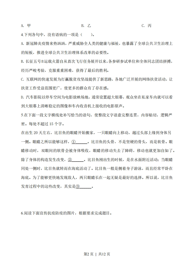 2020年高考语文试卷(浙江)(空白卷)芝士老师9小时前发布关注私信0.48MB12页227225562020年高考语文试卷(浙江)(空白卷)此内容为付费资源,请付费后查看会员专属资源学期会员免费研学会员免费您暂无购买权限,请先开通会员开通会员升级研学会员解锁更多下载权限每天签到可以获得更多积分呦升级研学会员解锁知识宝库如果内容失效请联系客服付费资源 第1页 / 共12页 第2页 / 共12页 第3页 / 共12页 试读已结束,还剩9页,您可下载完整版后进行离线阅读 © 版权声明 1 如果您找不到想要的资料, 点击这儿 可以查看网站使用手册! 2 可能会帮助到你: 网址导航 | 网站入门 | 获取邀请码 3 如果遇到付费才能看或下载的文章,建议您升级本站VIP会员;全站所有资源任意下,免费看。 4本站资源部分来自网络,由多位老师收集整理,如有侵犯你的权益请 联系站长,我们会第一时间进行审核删除。 5 站内资源为网友个人学习或测试研究使用,未经原版权作者许可,禁止用于任何商业途径!请在下载24小时内删除! THE END高考刷题 这套资料真的不错,快分享给您身边最好的朋友吧^_^点赞2556 分享QQ空间微博QQ好友海报分享复制链接收藏 可以按Ctrl+D收藏此页面 HI!请登录 登录 注册 搜索 开启精彩搜索 付费资源会员专属资源学期会员免费研学会员免费升级研学会员解锁更多下载权限每天签到可以获得更多积分呦升级研学会员解锁知识宝库如果内容失效请联系客服您暂无购买权限,请先开通会员开通会员默写 (23)高频考点 (1)高分必刷 (0)高中语文 (5)高中英语 (7)高中生物 (5)高中数学 (12)高中地理 (5)高中历史 (5)高中化学 (5)预习 (2)音标 (1)雷锋 (0)阅读 (0)阅兵 (5)钱 (6)量词 (3)部首 (1)逻辑 (12)通用 (0) duoduo关注 这家伙很懒,什么都没有写... LopLop关注 这家伙很懒,什么都没有写... kuan关注 这家伙很懒,什么都没有写... s_juan1关注 这家伙很懒,什么都没有写... Echo Chen关注 这家伙很懒,什么都没有写... 燕子关注 这家伙很懒,什么都没有写... s281772578关注 这家伙很懒,什么都没有写... full关注 这家伙很懒,什么都没有写... 领取5000T网盘资源 百度网盘5000T网红资源 立即领取 在手机上浏览此页面 登录没有账号?立即注册手机号或邮箱图形验证码验证码发送验证码记住登录账号密码登录 登录用户名/手机号/邮箱登录密码图形验证码记住登录找回密码 | 免密登录 登录注册已有账号,立即登录设置用户名手机号图形验证码验证码发送验证码设置密码重复密码邀请码(选填)注册已阅读并同意用户协议、隐私声明