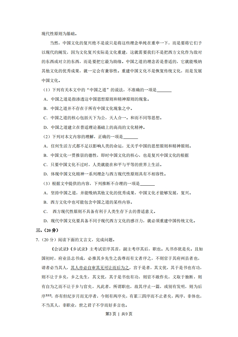2011年高考语文试卷(天津)(空白卷)芝士老师10小时前发布关注私信0.33MB9页166710102011年高考语文试卷(天津)(空白卷)此内容为付费资源,请付费后查看会员专属资源学期会员免费研学会员免费您暂无购买权限,请先开通会员开通会员升级研学会员解锁更多下载权限每天签到可以获得更多积分呦升级研学会员解锁知识宝库如果内容失效请联系客服付费资源 第1页 / 共9页 第2页 / 共9页 第3页 / 共9页 试读已结束,还剩6页,您可下载完整版后进行离线阅读 © 版权声明 1 如果您找不到想要的资料, 点击这儿 可以查看网站使用手册! 2 可能会帮助到你: 网址导航 | 网站入门 | 获取邀请码 3 如果遇到付费才能看或下载的文章,建议您升级本站VIP会员;全站所有资源任意下,免费看。 4本站资源部分来自网络,由多位老师收集整理,如有侵犯你的权益请 联系站长,我们会第一时间进行审核删除。 5 站内资源为网友个人学习或测试研究使用,未经原版权作者许可,禁止用于任何商业途径!请在下载24小时内删除! THE END高考刷题 这套资料真的不错,快分享给您身边最好的朋友吧^_^点赞1010 分享QQ空间微博QQ好友海报分享复制链接收藏 可以按Ctrl+D收藏此页面 HI!请登录 登录 注册 搜索 开启精彩搜索 付费资源会员专属资源学期会员免费研学会员免费升级研学会员解锁更多下载权限每天签到可以获得更多积分呦升级研学会员解锁知识宝库如果内容失效请联系客服您暂无购买权限,请先开通会员开通会员默写 (23)高频考点 (1)高分必刷 (0)高中语文 (5)高中英语 (7)高中生物 (5)高中数学 (12)高中地理 (5)高中历史 (5)高中化学 (5)预习 (2)音标 (1)雷锋 (0)阅读 (0)阅兵 (5)钱 (6)量词 (3)部首 (1)逻辑 (12)通用 (0) LopLop关注 这家伙很懒,什么都没有写... duoduo关注 这家伙很懒,什么都没有写... kuan关注 这家伙很懒,什么都没有写... s_juan1关注 这家伙很懒,什么都没有写... Echo Chen关注 这家伙很懒,什么都没有写... 燕子关注 这家伙很懒,什么都没有写... s281772578关注 这家伙很懒,什么都没有写... full关注 这家伙很懒,什么都没有写... 领取5000T网盘资源 百度网盘5000T网红资源 立即领取 在手机上浏览此页面 登录没有账号?立即注册手机号或邮箱图形验证码验证码发送验证码记住登录账号密码登录 登录用户名/手机号/邮箱登录密码图形验证码记住登录找回密码 | 免密登录 登录注册已有账号,立即登录设置用户名手机号图形验证码验证码发送验证码设置密码重复密码邀请码(选填)注册已阅读并同意用户协议、隐私声明