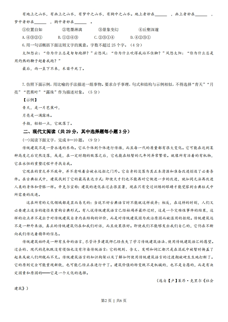 2013年高考语文试卷(浙江)(空白卷)芝士老师12小时前发布关注私信0.37MB6页221729232013年高考语文试卷(浙江)(空白卷)此内容为付费资源,请付费后查看会员专属资源学期会员免费研学会员免费您暂无购买权限,请先开通会员开通会员升级研学会员解锁更多下载权限每天签到可以获得更多积分呦升级研学会员解锁知识宝库如果内容失效请联系客服付费资源 第1页 / 共6页 第2页 / 共6页 第3页 / 共6页 试读已结束,还剩3页,您可下载完整版后进行离线阅读 © 版权声明 1 如果您找不到想要的资料, 点击这儿 可以查看网站使用手册! 2 可能会帮助到你: 网址导航 | 网站入门 | 获取邀请码 3 如果遇到付费才能看或下载的文章,建议您升级本站VIP会员;全站所有资源任意下,免费看。 4本站资源部分来自网络,由多位老师收集整理,如有侵犯你的权益请 联系站长,我们会第一时间进行审核删除。 5 站内资源为网友个人学习或测试研究使用,未经原版权作者许可,禁止用于任何商业途径!请在下载24小时内删除! THE END高考刷题 这套资料真的不错,快分享给您身边最好的朋友吧^_^点赞2923 分享QQ空间微博QQ好友海报分享复制链接收藏 可以按Ctrl+D收藏此页面 HI!请登录 登录 注册 搜索 开启精彩搜索 付费资源会员专属资源学期会员免费研学会员免费升级研学会员解锁更多下载权限每天签到可以获得更多积分呦升级研学会员解锁知识宝库如果内容失效请联系客服您暂无购买权限,请先开通会员开通会员默写 (23)高频考点 (1)高分必刷 (0)高中语文 (5)高中英语 (7)高中生物 (5)高中数学 (12)高中地理 (5)高中历史 (5)高中化学 (5)预习 (2)音标 (1)雷锋 (0)阅读 (0)阅兵 (5)钱 (6)量词 (3)部首 (1)逻辑 (12)通用 (0) 贺贺关注 这家伙很懒,什么都没有写... LopLop关注 这家伙很懒,什么都没有写... duoduo关注 这家伙很懒,什么都没有写... kuan关注 这家伙很懒,什么都没有写... s_juan1关注 这家伙很懒,什么都没有写... Echo Chen关注 这家伙很懒,什么都没有写... 燕子关注 这家伙很懒,什么都没有写... s281772578关注 这家伙很懒,什么都没有写... 在手机上浏览此页面 登录没有账号?立即注册手机号或邮箱图形验证码验证码发送验证码记住登录账号密码登录 登录用户名/手机号/邮箱登录密码图形验证码记住登录找回密码 | 免密登录 登录注册已有账号,立即登录设置用户名手机号图形验证码验证码发送验证码设置密码重复密码邀请码(选填)注册已阅读并同意用户协议、隐私声明