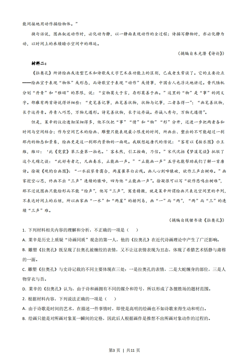 2021年高考语文试卷(湖北)(新高考Ⅰ卷)(空白卷)芝士老师3小时前发布关注私信1.41MB11页495414892021年高考语文试卷(湖北)(新高考Ⅰ卷)(空白卷)此内容为付费资源,请付费后查看会员专属资源学期会员免费研学会员免费您暂无购买权限,请先开通会员开通会员升级研学会员解锁更多下载权限每天签到可以获得更多积分呦升级研学会员解锁知识宝库如果内容失效请联系客服付费资源 第1页 / 共11页 第2页 / 共11页 第3页 / 共11页 试读已结束,还剩8页,您可下载完整版后进行离线阅读 © 版权声明 1 如果您找不到想要的资料, 点击这儿 可以查看网站使用手册! 2 可能会帮助到你: 网址导航 | 网站入门 | 获取邀请码 3 如果遇到付费才能看或下载的文章,建议您升级本站VIP会员;全站所有资源任意下,免费看。 4本站资源部分来自网络,由多位老师收集整理,如有侵犯你的权益请 联系站长,我们会第一时间进行审核删除。 5 站内资源为网友个人学习或测试研究使用,未经原版权作者许可,禁止用于任何商业途径!请在下载24小时内删除! THE END高考刷题 这套资料真的不错,快分享给您身边最好的朋友吧^_^点赞1489 分享QQ空间微博QQ好友海报分享复制链接收藏 可以按Ctrl+D收藏此页面 HI!请登录 登录 注册 搜索 开启精彩搜索 付费资源会员专属资源学期会员免费研学会员免费升级研学会员解锁更多下载权限每天签到可以获得更多积分呦升级研学会员解锁知识宝库如果内容失效请联系客服您暂无购买权限,请先开通会员开通会员默写 (23)高频考点 (1)高分必刷 (0)高中语文 (5)高中英语 (7)高中生物 (5)高中数学 (12)高中地理 (5)高中历史 (5)高中化学 (5)预习 (2)音标 (1)雷锋 (0)阅读 (0)阅兵 (5)钱 (6)量词 (3)部首 (1)逻辑 (12)通用 (0) 贺贺关注 这家伙很懒,什么都没有写... LopLop关注 这家伙很懒,什么都没有写... duoduo关注 这家伙很懒,什么都没有写... kuan关注 这家伙很懒,什么都没有写... s_juan1关注 这家伙很懒,什么都没有写... Echo Chen关注 这家伙很懒,什么都没有写... 燕子关注 这家伙很懒,什么都没有写... s281772578关注 这家伙很懒,什么都没有写... 在手机上浏览此页面 登录没有账号?立即注册手机号或邮箱图形验证码验证码发送验证码记住登录账号密码登录 登录用户名/手机号/邮箱登录密码图形验证码记住登录找回密码 | 免密登录 登录注册已有账号,立即登录设置用户名手机号图形验证码验证码发送验证码设置密码重复密码邀请码(选填)注册已阅读并同意用户协议、隐私声明