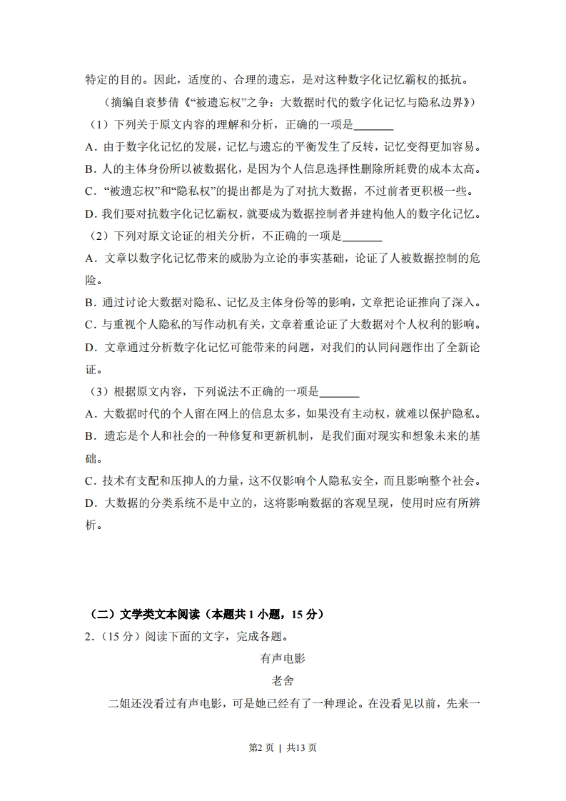 2018年高考语文试卷(辽宁)(新课标Ⅱ卷)(空白卷)芝士老师10小时前发布关注私信0.34MB13页376823512018年高考语文试卷(辽宁)(新课标Ⅱ卷)(空白卷)此内容为付费资源,请付费后查看会员专属资源学期会员免费研学会员免费您暂无购买权限,请先开通会员开通会员升级研学会员解锁更多下载权限每天签到可以获得更多积分呦升级研学会员解锁知识宝库如果内容失效请联系客服付费资源 第1页 / 共13页 第2页 / 共13页 第3页 / 共13页 试读已结束,还剩10页,您可下载完整版后进行离线阅读 © 版权声明 1 如果您找不到想要的资料, 点击这儿 可以查看网站使用手册! 2 可能会帮助到你: 网址导航 | 网站入门 | 获取邀请码 3 如果遇到付费才能看或下载的文章,建议您升级本站VIP会员;全站所有资源任意下,免费看。 4本站资源部分来自网络,由多位老师收集整理,如有侵犯你的权益请 联系站长,我们会第一时间进行审核删除。 5 站内资源为网友个人学习或测试研究使用,未经原版权作者许可,禁止用于任何商业途径!请在下载24小时内删除! THE END高考刷题 这套资料真的不错,快分享给您身边最好的朋友吧^_^点赞2351 分享QQ空间微博QQ好友海报分享复制链接收藏 可以按Ctrl+D收藏此页面 HI!请登录 登录 注册 搜索 开启精彩搜索 付费资源会员专属资源学期会员免费研学会员免费升级研学会员解锁更多下载权限每天签到可以获得更多积分呦升级研学会员解锁知识宝库如果内容失效请联系客服您暂无购买权限,请先开通会员开通会员默写 (23)高频考点 (1)高分必刷 (0)高中语文 (5)高中英语 (7)高中生物 (5)高中数学 (12)高中地理 (5)高中历史 (5)高中化学 (5)预习 (2)音标 (1)雷锋 (0)阅读 (0)阅兵 (5)钱 (6)量词 (3)部首 (1)逻辑 (12)通用 (0) 小嗨神关注 这家伙很懒,什么都没有写... s_juan1关注 这家伙很懒,什么都没有写... 贺贺关注 这家伙很懒,什么都没有写... LopLop关注 这家伙很懒,什么都没有写... duoduo关注 这家伙很懒,什么都没有写... kuan关注 这家伙很懒,什么都没有写... Echo Chen关注 这家伙很懒,什么都没有写... 燕子关注 这家伙很懒,什么都没有写... 在手机上浏览此页面 登录没有账号?立即注册手机号或邮箱图形验证码验证码发送验证码记住登录账号密码登录 登录用户名/手机号/邮箱登录密码图形验证码记住登录找回密码 | 免密登录 登录注册已有账号,立即登录设置用户名手机号图形验证码验证码发送验证码设置密码重复密码邀请码(选填)注册已阅读并同意用户协议、隐私声明