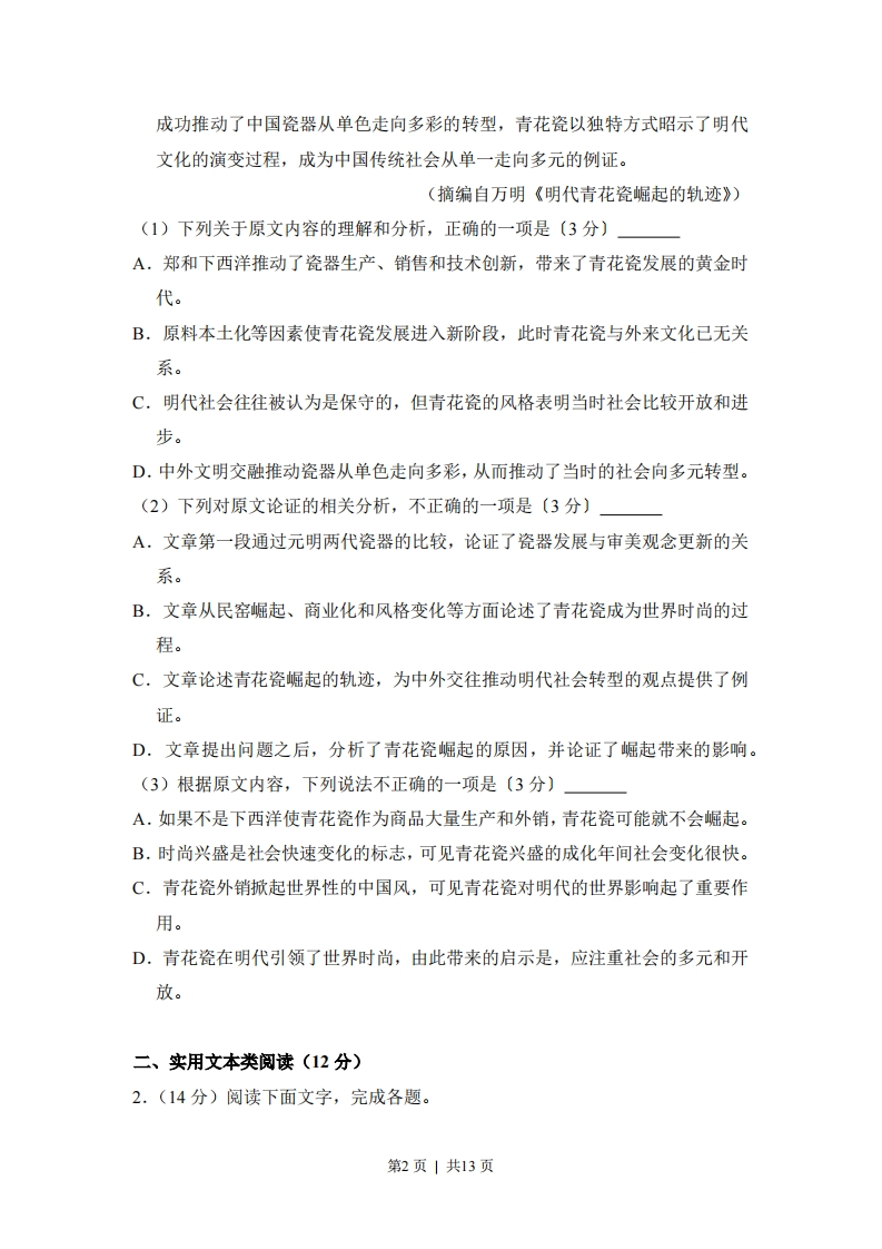 2017年高考语文试卷(内蒙古)(新课标Ⅱ卷)(空白卷)芝士老师3小时前发布关注私信0.32MB13页455534692017年高考语文试卷(内蒙古)(新课标Ⅱ卷)(空白卷)此内容为付费资源,请付费后查看会员专属资源学期会员免费研学会员免费您暂无购买权限,请先开通会员开通会员升级研学会员解锁更多下载权限每天签到可以获得更多积分呦升级研学会员解锁知识宝库如果内容失效请联系客服付费资源 第1页 / 共13页 第2页 / 共13页 第3页 / 共13页 试读已结束,还剩10页,您可下载完整版后进行离线阅读 © 版权声明 1 如果您找不到想要的资料, 点击这儿 可以查看网站使用手册! 2 可能会帮助到你: 网址导航 | 网站入门 | 获取邀请码 3 如果遇到付费才能看或下载的文章,建议您升级本站VIP会员;全站所有资源任意下,免费看。 4本站资源部分来自网络,由多位老师收集整理,如有侵犯你的权益请 联系站长,我们会第一时间进行审核删除。 5 站内资源为网友个人学习或测试研究使用,未经原版权作者许可,禁止用于任何商业途径!请在下载24小时内删除! THE END高考刷题 这套资料真的不错,快分享给您身边最好的朋友吧^_^点赞3469 分享QQ空间微博QQ好友海报分享复制链接收藏 可以按Ctrl+D收藏此页面 HI!请登录 登录 注册 搜索 开启精彩搜索 付费资源会员专属资源学期会员免费研学会员免费升级研学会员解锁更多下载权限每天签到可以获得更多积分呦升级研学会员解锁知识宝库如果内容失效请联系客服您暂无购买权限,请先开通会员开通会员默写 (23)高频考点 (1)高分必刷 (0)高中语文 (5)高中英语 (7)高中生物 (5)高中数学 (12)高中地理 (5)高中历史 (5)高中化学 (5)预习 (2)音标 (1)雷锋 (0)阅读 (0)阅兵 (5)钱 (6)量词 (3)部首 (1)逻辑 (12)通用 (0) 贺贺关注 这家伙很懒,什么都没有写... LopLop关注 这家伙很懒,什么都没有写... duoduo关注 这家伙很懒,什么都没有写... kuan关注 这家伙很懒,什么都没有写... s_juan1关注 这家伙很懒,什么都没有写... Echo Chen关注 这家伙很懒,什么都没有写... 燕子关注 这家伙很懒,什么都没有写... s281772578关注 这家伙很懒,什么都没有写... 在手机上浏览此页面 登录没有账号?立即注册手机号或邮箱图形验证码验证码发送验证码记住登录账号密码登录 登录用户名/手机号/邮箱登录密码图形验证码记住登录找回密码 | 免密登录 登录注册已有账号,立即登录设置用户名手机号图形验证码验证码发送验证码设置密码重复密码邀请码(选填)注册已阅读并同意用户协议、隐私声明