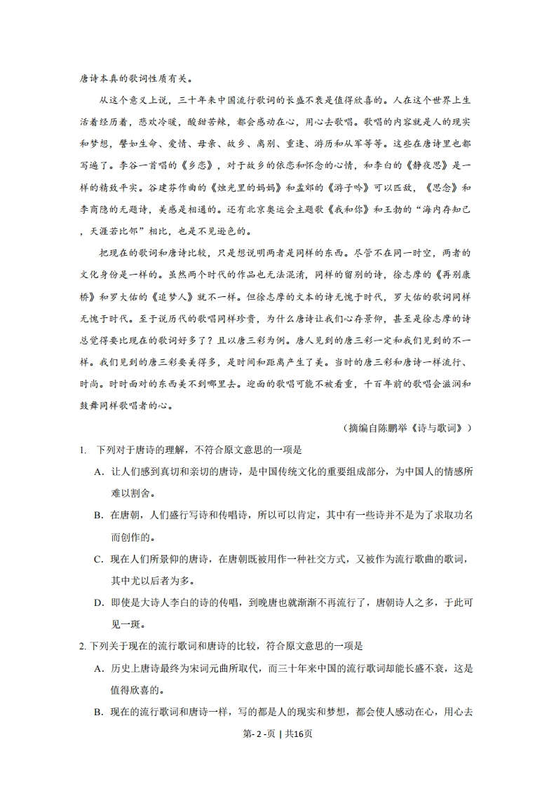 2009年高考语文试卷(新课标)(海南宁夏)(解析卷)芝士老师4小时前发布关注私信0.52MB16页213518012009年高考语文试卷(新课标)(海南宁夏)(解析卷)此内容为付费资源,请付费后查看会员专属资源学期会员免费研学会员免费您暂无购买权限,请先开通会员开通会员升级研学会员解锁更多下载权限每天签到可以获得更多积分呦升级研学会员解锁知识宝库如果内容失效请联系客服付费资源 第1页 / 共16页 第2页 / 共16页 第3页 / 共16页 试读已结束,还剩13页,您可下载完整版后进行离线阅读 © 版权声明 1 如果您找不到想要的资料, 点击这儿 可以查看网站使用手册! 2 可能会帮助到你: 网址导航 | 网站入门 | 获取邀请码 3 如果遇到付费才能看或下载的文章,建议您升级本站VIP会员;全站所有资源任意下,免费看。 4本站资源部分来自网络,由多位老师收集整理,如有侵犯你的权益请 联系站长,我们会第一时间进行审核删除。 5 站内资源为网友个人学习或测试研究使用,未经原版权作者许可,禁止用于任何商业途径!请在下载24小时内删除! THE END高考刷题 这套资料真的不错,快分享给您身边最好的朋友吧^_^点赞1801 分享QQ空间微博QQ好友海报分享复制链接收藏 可以按Ctrl+D收藏此页面 HI!请登录 登录 注册 搜索 开启精彩搜索 付费资源会员专属资源学期会员免费研学会员免费升级研学会员解锁更多下载权限每天签到可以获得更多积分呦升级研学会员解锁知识宝库如果内容失效请联系客服您暂无购买权限,请先开通会员开通会员默写 (23)高频考点 (1)高分必刷 (0)高中语文 (5)高中英语 (7)高中生物 (5)高中数学 (12)高中地理 (5)高中历史 (5)高中化学 (5)预习 (2)音标 (1)雷锋 (0)阅读 (0)阅兵 (5)钱 (6)量词 (3)部首 (1)逻辑 (12)通用 (0) 贺贺关注 这家伙很懒,什么都没有写... LopLop关注 这家伙很懒,什么都没有写... duoduo关注 这家伙很懒,什么都没有写... kuan关注 这家伙很懒,什么都没有写... s_juan1关注 这家伙很懒,什么都没有写... Echo Chen关注 这家伙很懒,什么都没有写... 燕子关注 这家伙很懒,什么都没有写... s281772578关注 这家伙很懒,什么都没有写... 在手机上浏览此页面 登录没有账号?立即注册手机号或邮箱图形验证码验证码发送验证码记住登录账号密码登录 登录用户名/手机号/邮箱登录密码图形验证码记住登录找回密码 | 免密登录 登录注册已有账号,立即登录设置用户名手机号图形验证码验证码发送验证码设置密码重复密码邀请码(选填)注册已阅读并同意用户协议、隐私声明