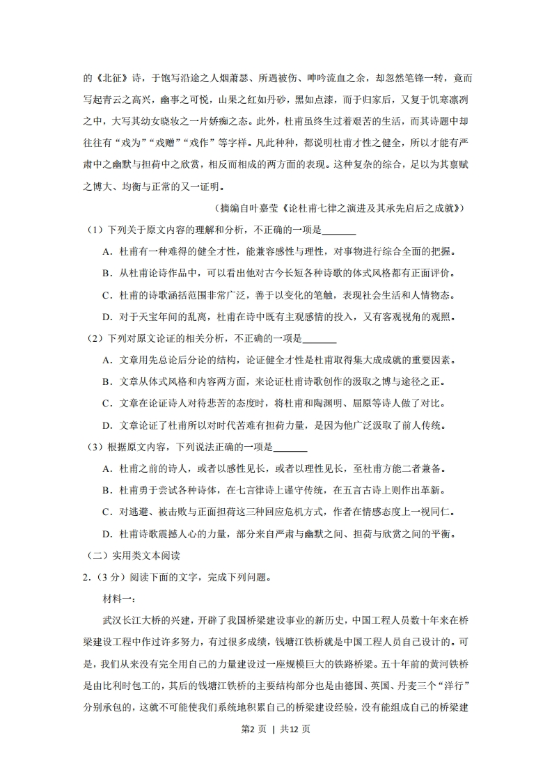 2019年高考语文试卷(新课标Ⅱ卷)(空白卷)芝士老师8小时前发布关注私信0.34MB12页371533162019年高考语文试卷(新课标Ⅱ卷)(空白卷)此内容为付费资源,请付费后查看会员专属资源学期会员免费研学会员免费您暂无购买权限,请先开通会员开通会员升级研学会员解锁更多下载权限每天签到可以获得更多积分呦升级研学会员解锁知识宝库如果内容失效请联系客服付费资源 第1页 / 共12页 第2页 / 共12页 第3页 / 共12页 试读已结束,还剩9页,您可下载完整版后进行离线阅读 © 版权声明 1 如果您找不到想要的资料, 点击这儿 可以查看网站使用手册! 2 可能会帮助到你: 网址导航 | 网站入门 | 获取邀请码 3 如果遇到付费才能看或下载的文章,建议您升级本站VIP会员;全站所有资源任意下,免费看。 4本站资源部分来自网络,由多位老师收集整理,如有侵犯你的权益请 联系站长,我们会第一时间进行审核删除。 5 站内资源为网友个人学习或测试研究使用,未经原版权作者许可,禁止用于任何商业途径!请在下载24小时内删除! THE END高考刷题 这套资料真的不错,快分享给您身边最好的朋友吧^_^点赞3316 分享QQ空间微博QQ好友海报分享复制链接收藏 可以按Ctrl+D收藏此页面 HI!请登录 登录 注册 搜索 开启精彩搜索 付费资源会员专属资源学期会员免费研学会员免费升级研学会员解锁更多下载权限每天签到可以获得更多积分呦升级研学会员解锁知识宝库如果内容失效请联系客服您暂无购买权限,请先开通会员开通会员默写 (23)高频考点 (1)高分必刷 (0)高中语文 (5)高中英语 (7)高中生物 (5)高中数学 (12)高中地理 (5)高中历史 (5)高中化学 (5)预习 (2)音标 (1)雷锋 (0)阅读 (0)阅兵 (5)钱 (6)量词 (3)部首 (1)逻辑 (12)通用 (0) 小嗨神关注 这家伙很懒,什么都没有写... s_juan1关注 这家伙很懒,什么都没有写... 贺贺关注 这家伙很懒,什么都没有写... LopLop关注 这家伙很懒,什么都没有写... duoduo关注 这家伙很懒,什么都没有写... kuan关注 这家伙很懒,什么都没有写... Echo Chen关注 这家伙很懒,什么都没有写... 燕子关注 这家伙很懒,什么都没有写... 在手机上浏览此页面 登录没有账号?立即注册手机号或邮箱图形验证码验证码发送验证码记住登录账号密码登录 登录用户名/手机号/邮箱登录密码图形验证码记住登录找回密码 | 免密登录 登录注册已有账号,立即登录设置用户名手机号图形验证码验证码发送验证码设置密码重复密码邀请码(选填)注册已阅读并同意用户协议、隐私声明