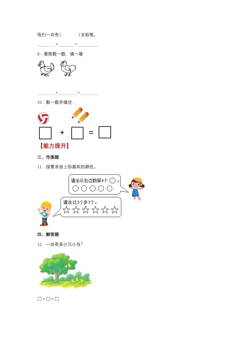 一年级上数学基础巩固同步课时练3.5加法(人教版,含答案)芝士老师1年前发布关注私信0.25MB6页767139一年级上数学基础巩固同步课时练3.5加法(人教版,含答案)此内容为免费资源,请登录后查看0积分 登录查看强烈推荐123网盘下载,非会员不限速如果下载链接失效请联系客服补发如需手机上下载打印,请用手机浏览器打开本站免费资源 第1页 / 共6页 第2页 / 共6页 第3页 / 共6页 该文档为免费文档,您可直接下载完整版进行阅读 © 版权声明 1 如果您找不到想要的资料, 点击这儿 可以查看网站使用手册! 2 可能会帮助到你: 网址导航 | 网站入门 | 获取邀请码 3 如果遇到付费才能看或下载的文章,建议您升级本站VIP会员;全站所有资源任意下,免费看。 4本站资源部分来自网络,由多位老师收集整理,如有侵犯你的权益请 联系站长,我们会第一时间进行审核删除。 5 站内资源为网友个人学习或测试研究使用,未经原版权作者许可,禁止用于任何商业途径!请在下载24小时内删除! THE END一年级资料专区 这套资料真的不错,快分享给您身边最好的朋友吧^_^点赞139 分享QQ空间微博QQ好友海报分享复制链接收藏 可以按Ctrl+D收藏此页面 HI!请登录 登录 注册 搜索 开启精彩搜索 免费内容强烈推荐123网盘下载,非会员不限速如果下载链接失效请联系客服补发如需手机上下载打印,请用手机浏览器打开本站 登录查看默写 (12)高频考点 (1)高分必刷 (0)高中语文 (5)高中英语 (7)高中生物 (5)高中数学 (12)高中地理 (5)高中历史 (5)高中化学 (5)预习 (2)音标 (1)雷锋 (0)阅读 (0)阅兵 (5)钱 (6)量词 (3)部首 (1)逻辑 (12)通用 (0) 小吖麻麻关注 这家伙很懒,什么都没有写... s_juan1关注 这家伙很懒,什么都没有写... kele关注 这家伙很懒,什么都没有写... 燕子关注 这家伙很懒,什么都没有写... 四爷关注 这家伙很懒,什么都没有写... 小豆点sun关注 这家伙很懒,什么都没有写... Mouse Dad关注 这家伙很懒,什么都没有写... kuan关注 这家伙很懒,什么都没有写... 领取5000T网盘资源 百度网盘5000T网红资源 立即领取 在手机上浏览此页面 登录没有账号?立即注册手机号或邮箱图形验证码验证码发送验证码记住登录账号密码登录 登录用户名/手机号/邮箱登录密码图形验证码记住登录找回密码 | 免密登录 登录注册已有账号,立即登录设置用户名手机号图形验证码验证码发送验证码设置密码重复密码邀请码(选填)注册已阅读并同意用户协议、隐私声明