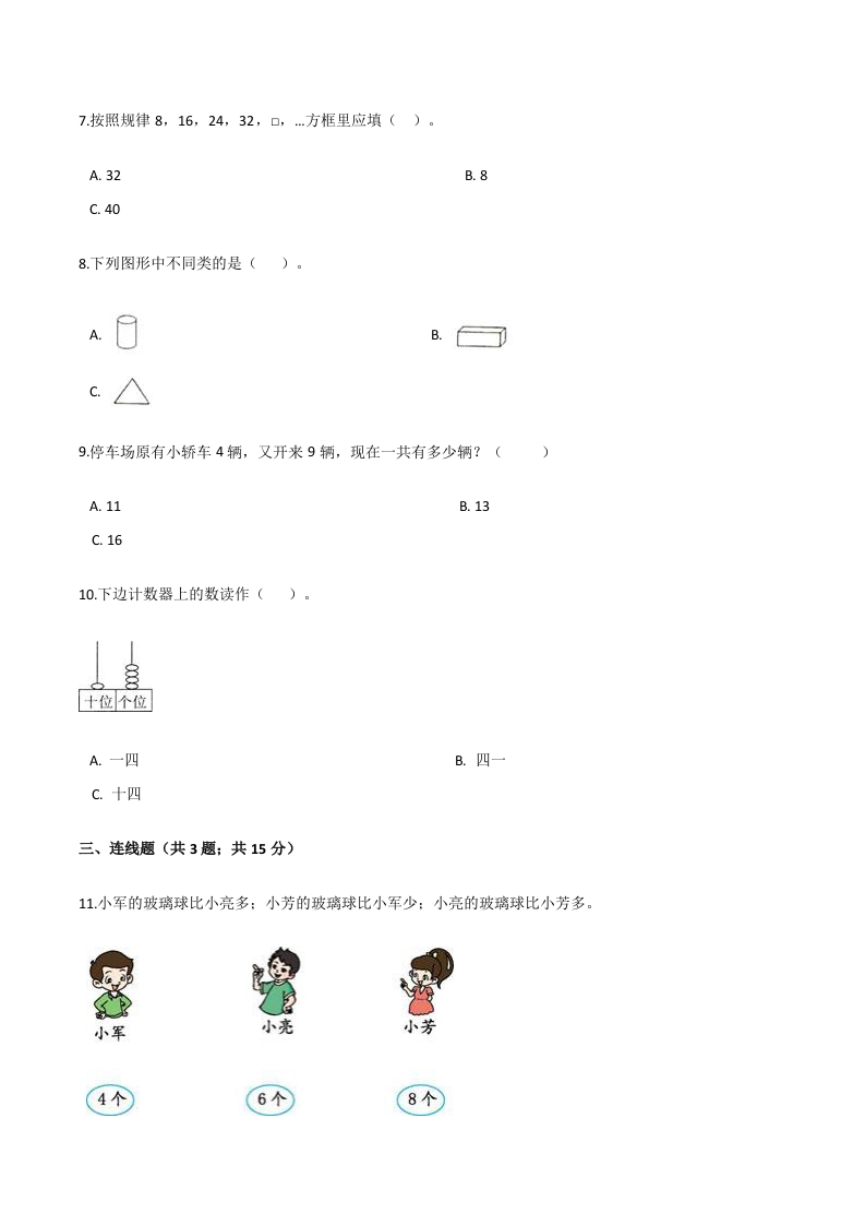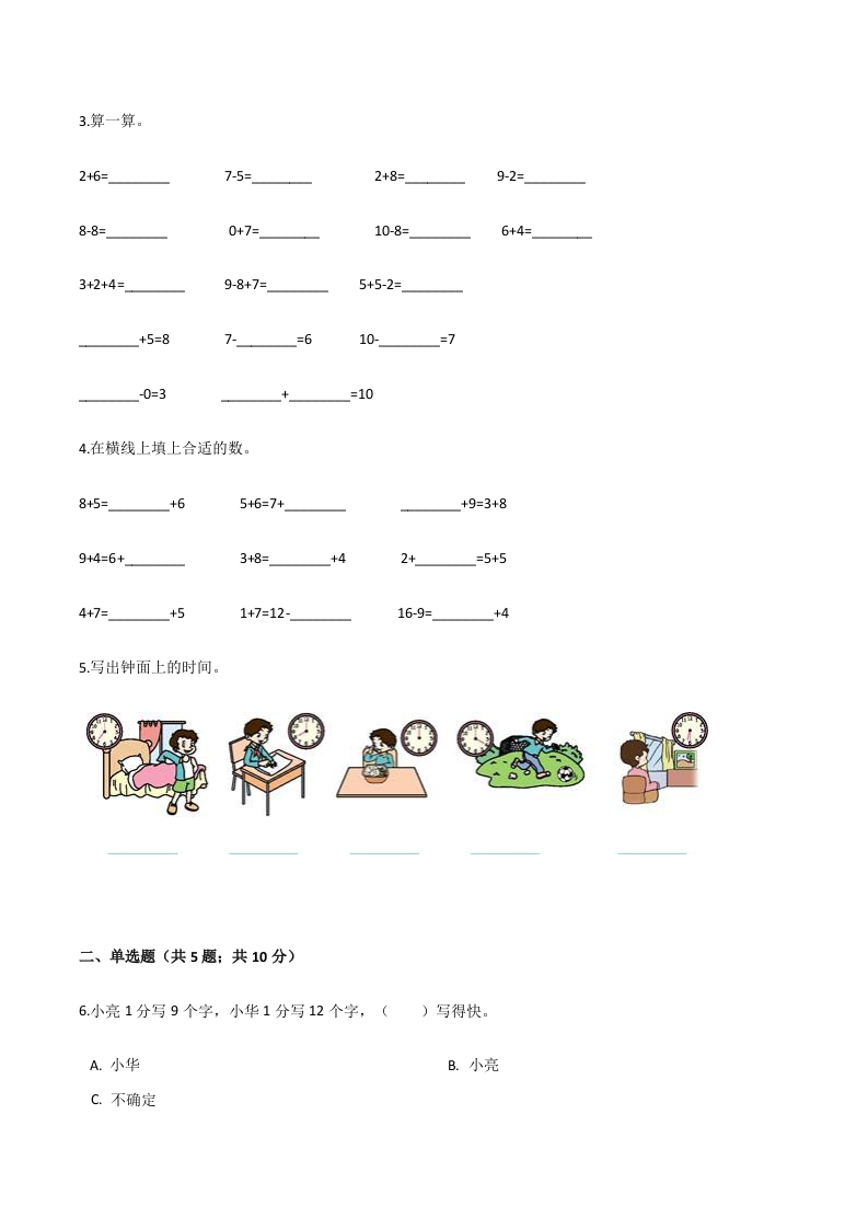 人教(新课程标准)一年级数学上册期末要点拔高卷(四)(含答案)芝士老师1年前发布关注私信2.40MB11页539114人教(新课程标准)一年级数学上册期末要点拔高卷(四)(含答案)此内容为免费资源,请登录后查看0积分 登录查看强烈推荐123网盘下载,非会员不限速如果下载链接失效请联系客服补发如需手机上下载打印,请用手机浏览器打开本站免费资源 第1页 / 共11页 第2页 / 共11页 第3页 / 共11页 该文档为免费文档,您可直接下载完整版进行阅读 © 版权声明 1 如果您找不到想要的资料, 点击这儿 可以查看网站使用手册! 2 可能会帮助到你: 网址导航 | 网站入门 | 获取邀请码 3 如果遇到付费才能看或下载的文章,建议您升级本站VIP会员;全站所有资源任意下,免费看。 4本站资源部分来自网络,由多位老师收集整理,如有侵犯你的权益请 联系站长,我们会第一时间进行审核删除。 5 站内资源为网友个人学习或测试研究使用,未经原版权作者许可,禁止用于任何商业途径!请在下载24小时内删除! THE END一年级资料专区 这套资料真的不错,快分享给您身边最好的朋友吧^_^点赞114 分享QQ空间微博QQ好友海报分享复制链接收藏 可以按Ctrl+D收藏此页面 HI!请登录 登录 注册 搜索 开启精彩搜索 免费内容强烈推荐123网盘下载,非会员不限速如果下载链接失效请联系客服补发如需手机上下载打印,请用手机浏览器打开本站 登录查看默写 (12)高频考点 (1)高分必刷 (0)高中语文 (5)高中英语 (7)高中生物 (5)高中数学 (12)高中地理 (5)高中历史 (5)高中化学 (5)预习 (2)音标 (1)雷锋 (0)阅读 (0)阅兵 (5)钱 (6)量词 (3)部首 (1)逻辑 (12)通用 (0) 小吖麻麻关注 这家伙很懒,什么都没有写... evawawawa关注 这家伙很懒,什么都没有写... s_juan1关注 这家伙很懒,什么都没有写... kele关注 这家伙很懒,什么都没有写... 燕子关注 这家伙很懒,什么都没有写... 四爷关注 这家伙很懒,什么都没有写... 小豆点sun关注 这家伙很懒,什么都没有写... Mouse Dad关注 这家伙很懒,什么都没有写... 领取5000T网盘资源 百度网盘5000T网红资源 立即领取 在手机上浏览此页面 登录没有账号?立即注册手机号或邮箱图形验证码验证码发送验证码记住登录账号密码登录 登录用户名/手机号/邮箱登录密码图形验证码记住登录找回密码 | 免密登录 登录注册已有账号,立即登录设置用户名手机号图形验证码验证码发送验证码设置密码重复密码邀请码(选填)注册已阅读并同意用户协议、隐私声明