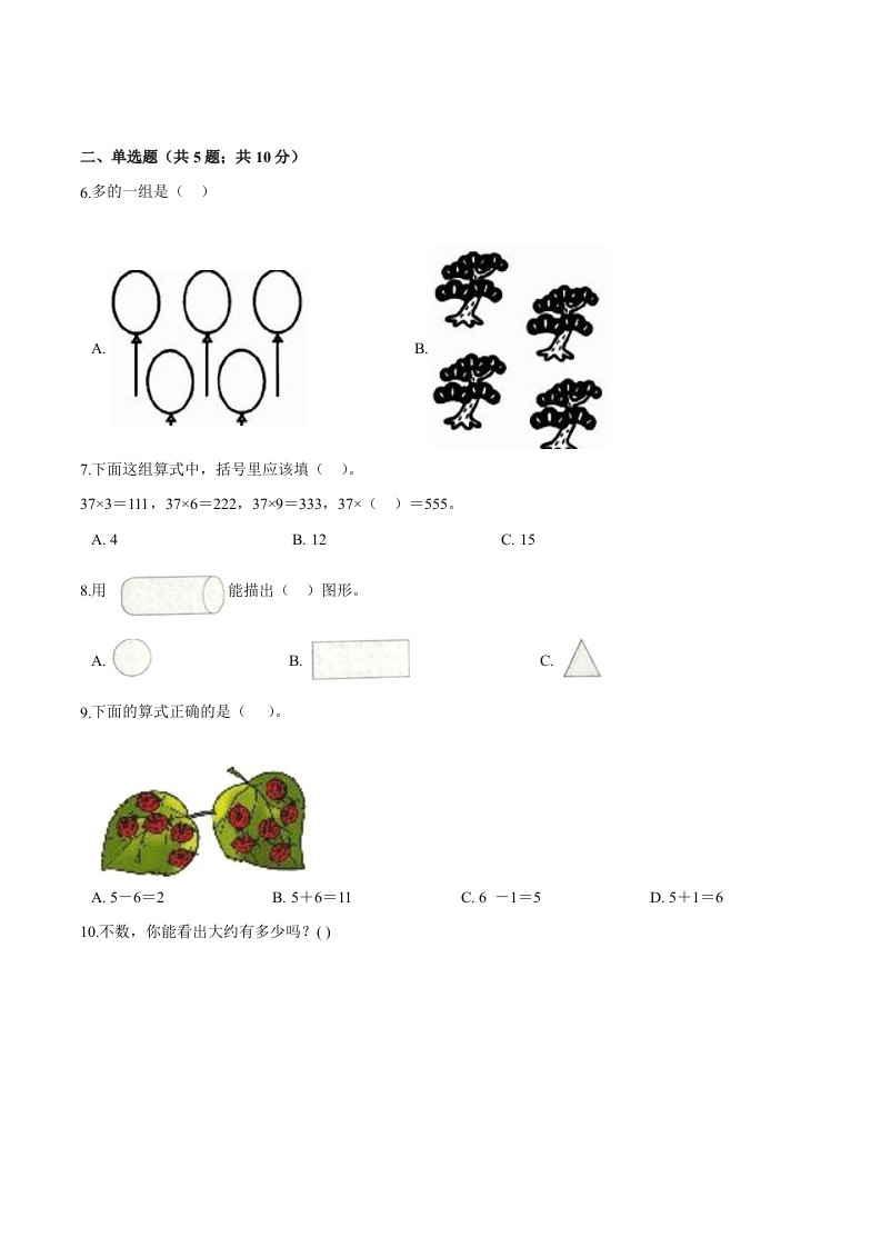人教(新课程标准)一年级数学上册期末综合复习卷(三)(含答案)芝士老师1年前发布关注私信0.49MB10页654258人教(新课程标准)一年级数学上册期末综合复习卷(三)(含答案)此内容为免费资源,请登录后查看0积分 登录查看强烈推荐123网盘下载,非会员不限速如果下载链接失效请联系客服补发如需手机上下载打印,请用手机浏览器打开本站免费资源 第1页 / 共10页 第2页 / 共10页 第3页 / 共10页 该文档为免费文档,您可直接下载完整版进行阅读 © 版权声明 1 如果您找不到想要的资料, 点击这儿 可以查看网站使用手册! 2 可能会帮助到你: 网址导航 | 网站入门 | 获取邀请码 3 如果遇到付费才能看或下载的文章,建议您升级本站VIP会员;全站所有资源任意下,免费看。 4本站资源部分来自网络,由多位老师收集整理,如有侵犯你的权益请 联系站长,我们会第一时间进行审核删除。 5 站内资源为网友个人学习或测试研究使用,未经原版权作者许可,禁止用于任何商业途径!请在下载24小时内删除! THE END一年级资料专区 这套资料真的不错,快分享给您身边最好的朋友吧^_^点赞258 分享QQ空间微博QQ好友海报分享复制链接收藏 可以按Ctrl+D收藏此页面 HI!请登录 登录 注册 搜索 开启精彩搜索 免费内容强烈推荐123网盘下载,非会员不限速如果下载链接失效请联系客服补发如需手机上下载打印,请用手机浏览器打开本站 登录查看默写 (12)高频考点 (1)高分必刷 (0)高中语文 (5)高中英语 (7)高中生物 (5)高中数学 (12)高中地理 (5)高中历史 (5)高中化学 (5)预习 (2)音标 (1)雷锋 (0)阅读 (0)阅兵 (5)钱 (6)量词 (3)部首 (1)逻辑 (12)通用 (0) 小吖麻麻关注 这家伙很懒,什么都没有写... evawawawa关注 这家伙很懒,什么都没有写... s_juan1关注 这家伙很懒,什么都没有写... kele关注 这家伙很懒,什么都没有写... 燕子关注 这家伙很懒,什么都没有写... 四爷关注 这家伙很懒,什么都没有写... 小豆点sun关注 这家伙很懒,什么都没有写... Mouse Dad关注 这家伙很懒,什么都没有写... 领取5000T网盘资源 百度网盘5000T网红资源 立即领取 在手机上浏览此页面 登录没有账号?立即注册手机号或邮箱图形验证码验证码发送验证码记住登录账号密码登录 登录用户名/手机号/邮箱登录密码图形验证码记住登录找回密码 | 免密登录 登录注册已有账号,立即登录设置用户名手机号图形验证码验证码发送验证码设置密码重复密码邀请码(选填)注册已阅读并同意用户协议、隐私声明
