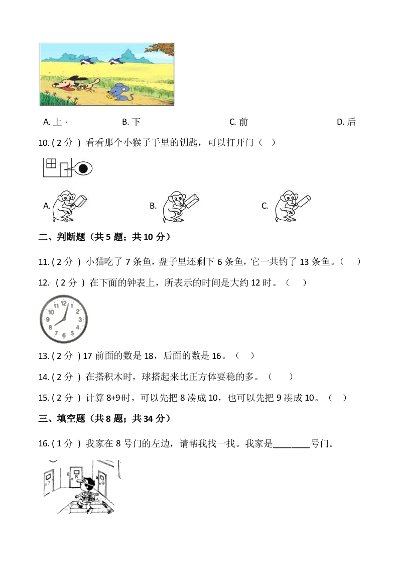 小学数学一年级上册-期末测试卷(二)含答案-人教版芝士老师1年前发布关注私信0.18MB9页564111小学数学一年级上册-期末测试卷(二)含答案-人教版此内容为免费资源,请登录后查看0积分 登录查看强烈推荐123网盘下载,非会员不限速如果下载链接失效请联系客服补发如需手机上下载打印,请用手机浏览器打开本站免费资源 第1页 / 共9页 第2页 / 共9页 第3页 / 共9页 该文档为免费文档,您可直接下载完整版进行阅读 © 版权声明 1 如果您找不到想要的资料, 点击这儿 可以查看网站使用手册! 2 可能会帮助到你: 网址导航 | 网站入门 | 获取邀请码 3 如果遇到付费才能看或下载的文章,建议您升级本站VIP会员;全站所有资源任意下,免费看。 4本站资源部分来自网络,由多位老师收集整理,如有侵犯你的权益请 联系站长,我们会第一时间进行审核删除。 5 站内资源为网友个人学习或测试研究使用,未经原版权作者许可,禁止用于任何商业途径!请在下载24小时内删除! THE END一年级资料专区 这套资料真的不错,快分享给您身边最好的朋友吧^_^点赞111 分享QQ空间微博QQ好友海报分享复制链接收藏 可以按Ctrl+D收藏此页面 HI!请登录 登录 注册 搜索 开启精彩搜索 免费内容强烈推荐123网盘下载,非会员不限速如果下载链接失效请联系客服补发如需手机上下载打印,请用手机浏览器打开本站 登录查看默写 (12)高频考点 (1)高分必刷 (0)高中语文 (5)高中英语 (7)高中生物 (5)高中数学 (12)高中地理 (5)高中历史 (5)高中化学 (5)预习 (2)音标 (1)雷锋 (0)阅读 (0)阅兵 (5)钱 (6)量词 (3)部首 (1)逻辑 (12)通用 (0) 小吖麻麻关注 这家伙很懒,什么都没有写... evawawawa关注 这家伙很懒,什么都没有写... s_juan1关注 这家伙很懒,什么都没有写... kele关注 这家伙很懒,什么都没有写... 燕子关注 这家伙很懒,什么都没有写... 四爷关注 这家伙很懒,什么都没有写... 小豆点sun关注 这家伙很懒,什么都没有写... Mouse Dad关注 这家伙很懒,什么都没有写... 领取5000T网盘资源 百度网盘5000T网红资源 立即领取 在手机上浏览此页面 登录没有账号?立即注册手机号或邮箱图形验证码验证码发送验证码记住登录账号密码登录 登录用户名/手机号/邮箱登录密码图形验证码记住登录找回密码 | 免密登录 登录注册已有账号,立即登录设置用户名手机号图形验证码验证码发送验证码设置密码重复密码邀请码(选填)注册已阅读并同意用户协议、隐私声明