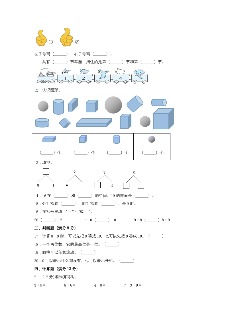 一年级上册数学期末试卷人教版(含答案)芝士老师1年前发布关注私信1MB7页687213一年级上册数学期末试卷人教版(含答案)此内容为免费资源,请登录后查看0积分 登录查看强烈推荐123网盘下载,非会员不限速如果下载链接失效请联系客服补发如需手机上下载打印,请用手机浏览器打开本站免费资源 第1页 / 共7页 第2页 / 共7页 第3页 / 共7页 该文档为免费文档,您可直接下载完整版进行阅读 © 版权声明 1 如果您找不到想要的资料, 点击这儿 可以查看网站使用手册! 2 可能会帮助到你: 网址导航 | 网站入门 | 获取邀请码 3 如果遇到付费才能看或下载的文章,建议您升级本站VIP会员;全站所有资源任意下,免费看。 4本站资源部分来自网络,由多位老师收集整理,如有侵犯你的权益请 联系站长,我们会第一时间进行审核删除。 5 站内资源为网友个人学习或测试研究使用,未经原版权作者许可,禁止用于任何商业途径!请在下载24小时内删除! THE END一年级资料专区 这套资料真的不错,快分享给您身边最好的朋友吧^_^点赞213 分享QQ空间微博QQ好友海报分享复制链接收藏 可以按Ctrl+D收藏此页面 HI!请登录 登录 注册 搜索 开启精彩搜索 免费内容强烈推荐123网盘下载,非会员不限速如果下载链接失效请联系客服补发如需手机上下载打印,请用手机浏览器打开本站 登录查看默写 (12)高频考点 (1)高分必刷 (0)高中语文 (5)高中英语 (7)高中生物 (5)高中数学 (12)高中地理 (5)高中历史 (5)高中化学 (5)预习 (2)音标 (1)雷锋 (0)阅读 (0)阅兵 (5)钱 (6)量词 (3)部首 (1)逻辑 (12)通用 (0) 小吖麻麻关注 这家伙很懒,什么都没有写... evawawawa关注 这家伙很懒,什么都没有写... s_juan1关注 这家伙很懒,什么都没有写... kele关注 这家伙很懒,什么都没有写... 燕子关注 这家伙很懒,什么都没有写... 四爷关注 这家伙很懒,什么都没有写... 小豆点sun关注 这家伙很懒,什么都没有写... Mouse Dad关注 这家伙很懒,什么都没有写... 领取5000T网盘资源 百度网盘5000T网红资源 立即领取 在手机上浏览此页面 登录没有账号?立即注册手机号或邮箱图形验证码验证码发送验证码记住登录账号密码登录 登录用户名/手机号/邮箱登录密码图形验证码记住登录找回密码 | 免密登录 登录注册已有账号,立即登录设置用户名手机号图形验证码验证码发送验证码设置密码重复密码邀请码(选填)注册已阅读并同意用户协议、隐私声明