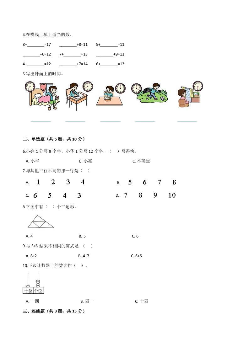 人教(新课程标准)一年级数学上册期末核心考点卷(二)(含答案)芝士老师1年前发布关注私信0.20MB9页518194人教(新课程标准)一年级数学上册期末核心考点卷(二)(含答案)此内容为免费资源,请登录后查看0积分 登录查看强烈推荐123网盘下载,非会员不限速如果下载链接失效请联系客服补发如需手机上下载打印,请用手机浏览器打开本站免费资源 第1页 / 共9页 第2页 / 共9页 第3页 / 共9页 该文档为免费文档,您可直接下载完整版进行阅读 © 版权声明 1 如果您找不到想要的资料, 点击这儿 可以查看网站使用手册! 2 可能会帮助到你: 网址导航 | 网站入门 | 获取邀请码 3 如果遇到付费才能看或下载的文章,建议您升级本站VIP会员;全站所有资源任意下,免费看。 4本站资源部分来自网络,由多位老师收集整理,如有侵犯你的权益请 联系站长,我们会第一时间进行审核删除。 5 站内资源为网友个人学习或测试研究使用,未经原版权作者许可,禁止用于任何商业途径!请在下载24小时内删除! THE END一年级资料专区 这套资料真的不错,快分享给您身边最好的朋友吧^_^点赞194 分享QQ空间微博QQ好友海报分享复制链接收藏 可以按Ctrl+D收藏此页面 HI!请登录 登录 注册 搜索 开启精彩搜索 免费内容强烈推荐123网盘下载,非会员不限速如果下载链接失效请联系客服补发如需手机上下载打印,请用手机浏览器打开本站 登录查看默写 (12)高频考点 (1)高分必刷 (0)高中语文 (5)高中英语 (7)高中生物 (5)高中数学 (12)高中地理 (5)高中历史 (5)高中化学 (5)预习 (2)音标 (1)雷锋 (0)阅读 (0)阅兵 (5)钱 (6)量词 (3)部首 (1)逻辑 (12)通用 (0) 小吖麻麻关注 这家伙很懒,什么都没有写... evawawawa关注 这家伙很懒,什么都没有写... s_juan1关注 这家伙很懒,什么都没有写... kele关注 这家伙很懒,什么都没有写... 燕子关注 这家伙很懒,什么都没有写... 四爷关注 这家伙很懒,什么都没有写... 小豆点sun关注 这家伙很懒,什么都没有写... Mouse Dad关注 这家伙很懒,什么都没有写... 领取5000T网盘资源 百度网盘5000T网红资源 立即领取 在手机上浏览此页面 登录没有账号?立即注册手机号或邮箱图形验证码验证码发送验证码记住登录账号密码登录 登录用户名/手机号/邮箱登录密码图形验证码记住登录找回密码 | 免密登录 登录注册已有账号,立即登录设置用户名手机号图形验证码验证码发送验证码设置密码重复密码邀请码(选填)注册已阅读并同意用户协议、隐私声明