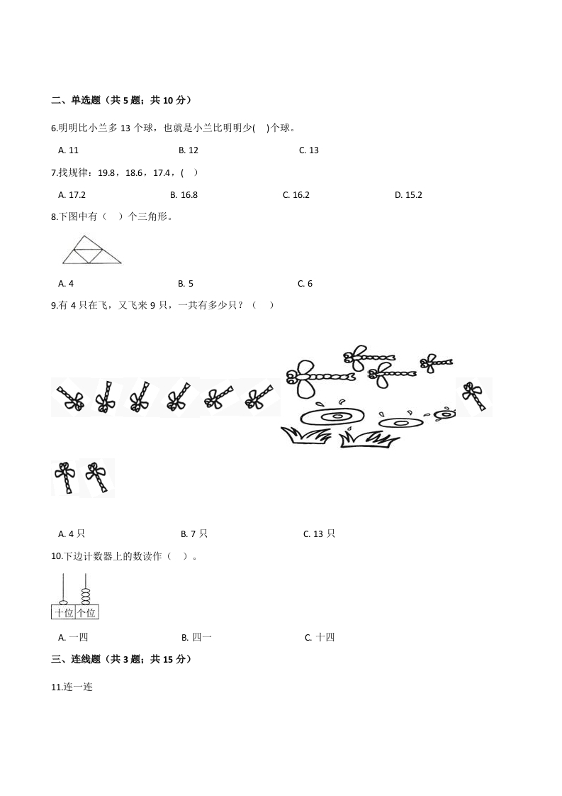 人教(新课程标准)一年级数学上册期末核心考点卷(五)(含答案)芝士老师1年前发布关注私信0.44MB10页742260人教(新课程标准)一年级数学上册期末核心考点卷(五)(含答案)此内容为免费资源,请登录后查看0积分 登录查看强烈推荐123网盘下载,非会员不限速如果下载链接失效请联系客服补发如需手机上下载打印,请用手机浏览器打开本站免费资源 第1页 / 共10页 第2页 / 共10页 第3页 / 共10页 该文档为免费文档,您可直接下载完整版进行阅读 © 版权声明 1 如果您找不到想要的资料, 点击这儿 可以查看网站使用手册! 2 可能会帮助到你: 网址导航 | 网站入门 | 获取邀请码 3 如果遇到付费才能看或下载的文章,建议您升级本站VIP会员;全站所有资源任意下,免费看。 4本站资源部分来自网络,由多位老师收集整理,如有侵犯你的权益请 联系站长,我们会第一时间进行审核删除。 5 站内资源为网友个人学习或测试研究使用,未经原版权作者许可,禁止用于任何商业途径!请在下载24小时内删除! THE END一年级资料专区 这套资料真的不错,快分享给您身边最好的朋友吧^_^点赞260 分享QQ空间微博QQ好友海报分享复制链接收藏 可以按Ctrl+D收藏此页面 HI!请登录 登录 注册 搜索 开启精彩搜索 免费内容强烈推荐123网盘下载,非会员不限速如果下载链接失效请联系客服补发如需手机上下载打印,请用手机浏览器打开本站 登录查看默写 (12)高频考点 (1)高分必刷 (0)高中语文 (5)高中英语 (7)高中生物 (5)高中数学 (12)高中地理 (5)高中历史 (5)高中化学 (5)预习 (2)音标 (1)雷锋 (0)阅读 (0)阅兵 (5)钱 (6)量词 (3)部首 (1)逻辑 (12)通用 (0) s_juan1关注 这家伙很懒,什么都没有写... 小吖麻麻关注 这家伙很懒,什么都没有写... kele关注 这家伙很懒,什么都没有写... 燕子关注 这家伙很懒,什么都没有写... 四爷关注 这家伙很懒,什么都没有写... 小豆点sun关注 这家伙很懒,什么都没有写... Mouse Dad关注 这家伙很懒,什么都没有写... kuan关注 这家伙很懒,什么都没有写... 领取5000T网盘资源 百度网盘5000T网红资源 立即领取 在手机上浏览此页面 登录没有账号?立即注册手机号或邮箱图形验证码验证码发送验证码记住登录账号密码登录 登录用户名/手机号/邮箱登录密码图形验证码记住登录找回密码 | 免密登录 登录注册已有账号,立即登录设置用户名手机号图形验证码验证码发送验证码设置密码重复密码邀请码(选填)注册已阅读并同意用户协议、隐私声明