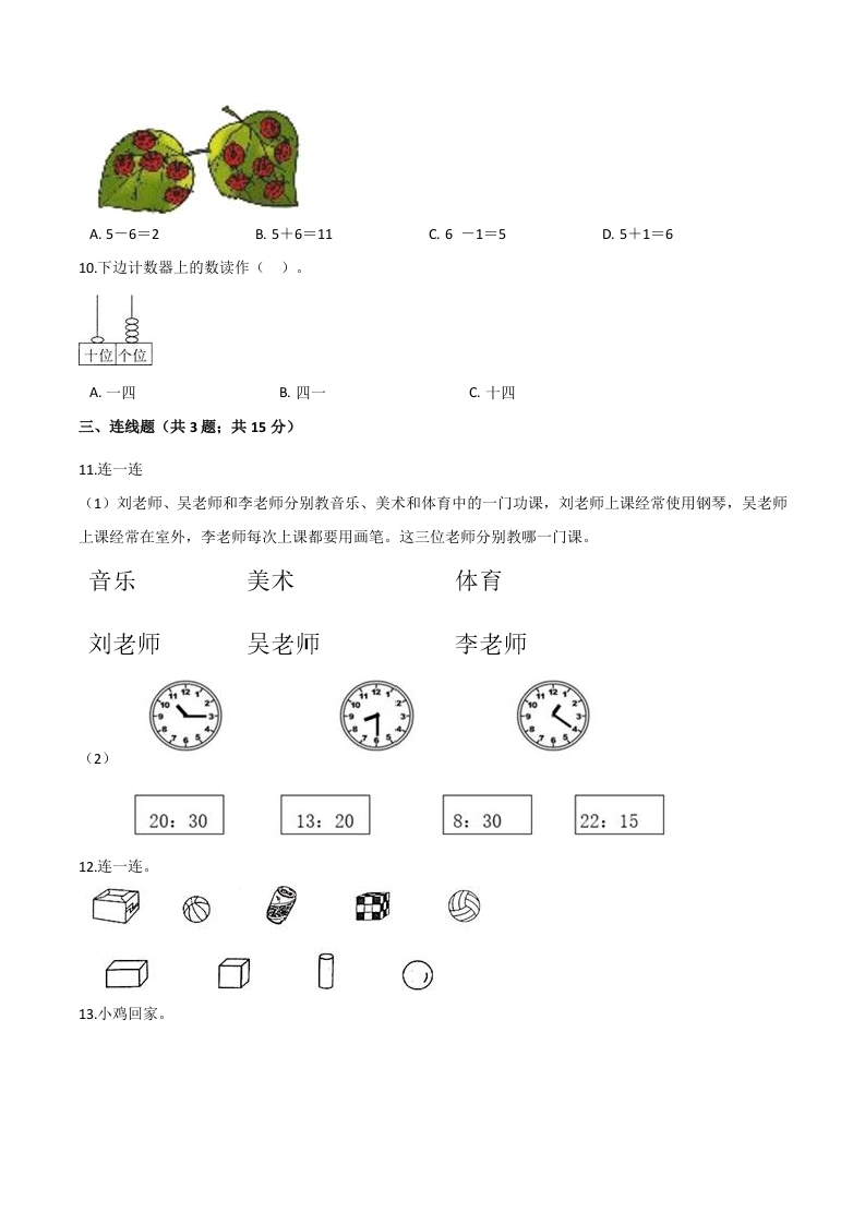 人教(新课程标准)一年级数学上册期末核心考点卷(一)(含答案)芝士老师1年前发布关注私信0.65MB9页646251人教(新课程标准)一年级数学上册期末核心考点卷(一)(含答案)此内容为免费资源,请登录后查看0积分 登录查看强烈推荐123网盘下载,非会员不限速如果下载链接失效请联系客服补发如需手机上下载打印,请用手机浏览器打开本站免费资源 第1页 / 共9页 第2页 / 共9页 第3页 / 共9页 该文档为免费文档,您可直接下载完整版进行阅读 © 版权声明 1 如果您找不到想要的资料, 点击这儿 可以查看网站使用手册! 2 可能会帮助到你: 网址导航 | 网站入门 | 获取邀请码 3 如果遇到付费才能看或下载的文章,建议您升级本站VIP会员;全站所有资源任意下,免费看。 4本站资源部分来自网络,由多位老师收集整理,如有侵犯你的权益请 联系站长,我们会第一时间进行审核删除。 5 站内资源为网友个人学习或测试研究使用,未经原版权作者许可,禁止用于任何商业途径!请在下载24小时内删除! THE END一年级资料专区 这套资料真的不错,快分享给您身边最好的朋友吧^_^点赞251 分享QQ空间微博QQ好友海报分享复制链接收藏 可以按Ctrl+D收藏此页面 HI!请登录 登录 注册 搜索 开启精彩搜索 免费内容强烈推荐123网盘下载,非会员不限速如果下载链接失效请联系客服补发如需手机上下载打印,请用手机浏览器打开本站 登录查看默写 (12)高频考点 (1)高分必刷 (0)高中语文 (5)高中英语 (7)高中生物 (5)高中数学 (12)高中地理 (5)高中历史 (5)高中化学 (5)预习 (2)音标 (1)雷锋 (0)阅读 (0)阅兵 (5)钱 (6)量词 (3)部首 (1)逻辑 (12)通用 (0) 小吖麻麻关注 这家伙很懒,什么都没有写... evawawawa关注 这家伙很懒,什么都没有写... s_juan1关注 这家伙很懒,什么都没有写... kele关注 这家伙很懒,什么都没有写... 燕子关注 这家伙很懒,什么都没有写... 四爷关注 这家伙很懒,什么都没有写... 小豆点sun关注 这家伙很懒,什么都没有写... Mouse Dad关注 这家伙很懒,什么都没有写... 领取5000T网盘资源 百度网盘5000T网红资源 立即领取 在手机上浏览此页面 登录没有账号?立即注册手机号或邮箱图形验证码验证码发送验证码记住登录账号密码登录 登录用户名/手机号/邮箱登录密码图形验证码记住登录找回密码 | 免密登录 登录注册已有账号,立即登录设置用户名手机号图形验证码验证码发送验证码设置密码重复密码邀请码(选填)注册已阅读并同意用户协议、隐私声明