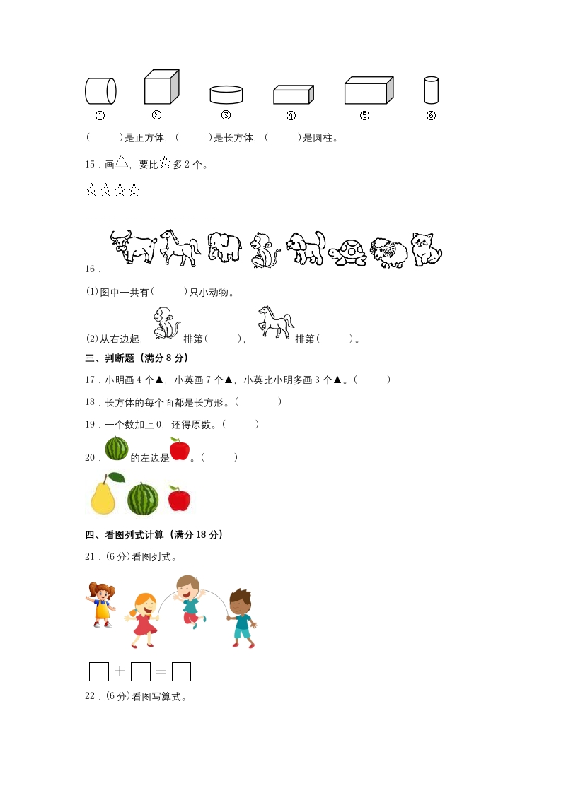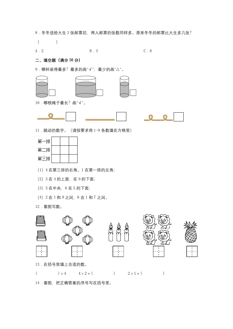 【期中模拟卷】小学数学一年级上册期中模拟试卷(2)人教版(含答案)芝士老师1年前发布关注私信0.93MB11页729168【期中模拟卷】小学数学一年级上册期中模拟试卷(2)人教版(含答案)此内容为免费资源,请登录后查看0积分 登录查看强烈推荐123网盘下载,非会员不限速如果下载链接失效请联系客服补发如需手机上下载打印,请用手机浏览器打开本站免费资源 第1页 / 共11页 第2页 / 共11页 第3页 / 共11页 该文档为免费文档,您可直接下载完整版进行阅读 © 版权声明 1 如果您找不到想要的资料, 点击这儿 可以查看网站使用手册! 2 可能会帮助到你: 网址导航 | 网站入门 | 获取邀请码 3 如果遇到付费才能看或下载的文章,建议您升级本站VIP会员;全站所有资源任意下,免费看。 4本站资源部分来自网络,由多位老师收集整理,如有侵犯你的权益请 联系站长,我们会第一时间进行审核删除。 5 站内资源为网友个人学习或测试研究使用,未经原版权作者许可,禁止用于任何商业途径!请在下载24小时内删除! THE END一年级资料专区 这套资料真的不错,快分享给您身边最好的朋友吧^_^点赞168 分享QQ空间微博QQ好友海报分享复制链接收藏 可以按Ctrl+D收藏此页面 HI!请登录 登录 注册 搜索 开启精彩搜索 免费内容强烈推荐123网盘下载,非会员不限速如果下载链接失效请联系客服补发如需手机上下载打印,请用手机浏览器打开本站 登录查看默写 (12)高频考点 (1)高分必刷 (0)高中语文 (5)高中英语 (7)高中生物 (5)高中数学 (12)高中地理 (5)高中历史 (5)高中化学 (5)预习 (2)音标 (1)雷锋 (0)阅读 (0)阅兵 (5)钱 (6)量词 (3)部首 (1)逻辑 (12)通用 (0) kuan关注 这家伙很懒,什么都没有写... 小吖麻麻关注 这家伙很懒,什么都没有写... evawawawa关注 这家伙很懒,什么都没有写... s_juan1关注 这家伙很懒,什么都没有写... kele关注 这家伙很懒,什么都没有写... 燕子关注 这家伙很懒,什么都没有写... 四爷关注 这家伙很懒,什么都没有写... 小豆点sun关注 这家伙很懒,什么都没有写... 领取5000T网盘资源 百度网盘5000T网红资源 立即领取 在手机上浏览此页面 登录没有账号?立即注册手机号或邮箱图形验证码验证码发送验证码记住登录账号密码登录 登录用户名/手机号/邮箱登录密码图形验证码记住登录找回密码 | 免密登录 登录注册已有账号,立即登录设置用户名手机号图形验证码验证码发送验证码设置密码重复密码邀请码(选填)注册已阅读并同意用户协议、隐私声明