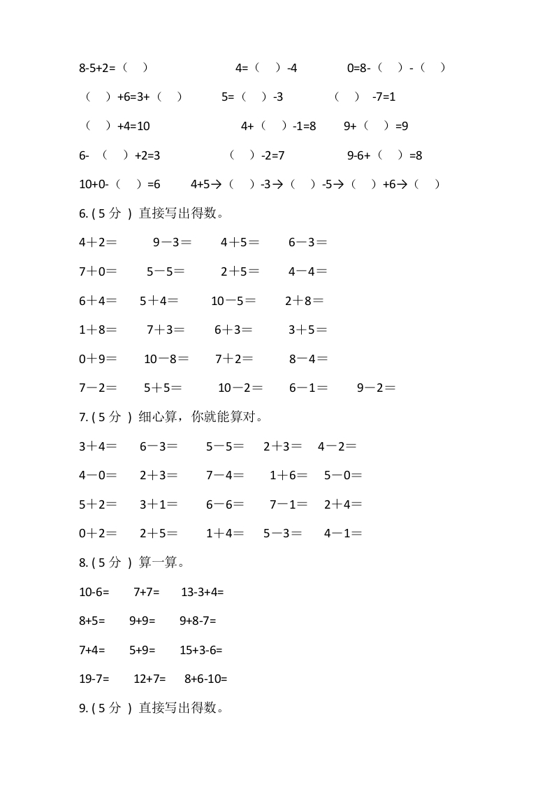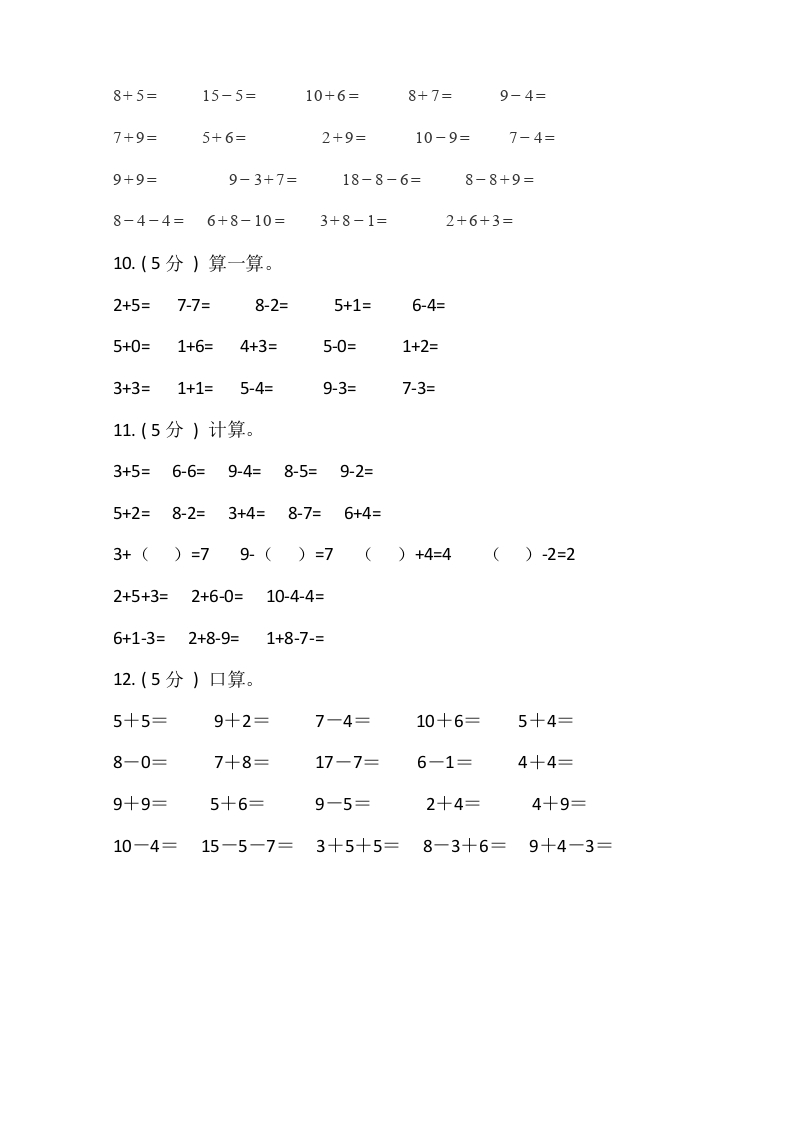 【期末专项突破】小学数学一年级上册-期末口算题专项突破练习(含答案)人教版芝士老师1年前发布关注私信36.90KB8页688132【期末专项突破】小学数学一年级上册-期末口算题专项突破练习(含答案)人教版此内容为免费资源,请登录后查看0积分 登录查看强烈推荐123网盘下载,非会员不限速如果下载链接失效请联系客服补发如需手机上下载打印,请用手机浏览器打开本站免费资源 第1页 / 共8页 第2页 / 共8页 第3页 / 共8页 该文档为免费文档,您可直接下载完整版进行阅读 © 版权声明 1 如果您找不到想要的资料, 点击这儿 可以查看网站使用手册! 2 可能会帮助到你: 网址导航 | 网站入门 | 获取邀请码 3 如果遇到付费才能看或下载的文章,建议您升级本站VIP会员;全站所有资源任意下,免费看。 4本站资源部分来自网络,由多位老师收集整理,如有侵犯你的权益请 联系站长,我们会第一时间进行审核删除。 5 站内资源为网友个人学习或测试研究使用,未经原版权作者许可,禁止用于任何商业途径!请在下载24小时内删除! THE END一年级资料专区 这套资料真的不错,快分享给您身边最好的朋友吧^_^点赞132 分享QQ空间微博QQ好友海报分享复制链接收藏 可以按Ctrl+D收藏此页面 HI!请登录 登录 注册 搜索 开启精彩搜索 免费内容强烈推荐123网盘下载,非会员不限速如果下载链接失效请联系客服补发如需手机上下载打印,请用手机浏览器打开本站 登录查看默写 (12)高频考点 (1)高分必刷 (0)高中语文 (5)高中英语 (7)高中生物 (5)高中数学 (12)高中地理 (5)高中历史 (5)高中化学 (5)预习 (2)音标 (1)雷锋 (0)阅读 (0)阅兵 (5)钱 (6)量词 (3)部首 (1)逻辑 (12)通用 (0) s_juan1关注 这家伙很懒,什么都没有写... kuan关注 这家伙很懒,什么都没有写... 小吖麻麻关注 这家伙很懒,什么都没有写... evawawawa关注 这家伙很懒,什么都没有写... kele关注 这家伙很懒,什么都没有写... 燕子关注 这家伙很懒,什么都没有写... 四爷关注 这家伙很懒,什么都没有写... 小豆点sun关注 这家伙很懒,什么都没有写... 领取5000T网盘资源 百度网盘5000T网红资源 立即领取 在手机上浏览此页面 登录没有账号?立即注册手机号或邮箱图形验证码验证码发送验证码记住登录账号密码登录 登录用户名/手机号/邮箱登录密码图形验证码记住登录找回密码 | 免密登录 登录注册已有账号,立即登录设置用户名手机号图形验证码验证码发送验证码设置密码重复密码邀请码(选填)注册已阅读并同意用户协议、隐私声明
