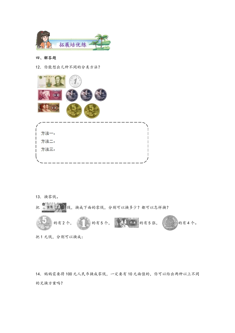 5.1认识人民币-一年级数学下册课时练分层作业(人教版)芝士老师1年前发布关注私信0.99MB8页6922035.1认识人民币-一年级数学下册课时练分层作业(人教版)此内容为免费资源,请登录后查看0积分 登录查看强烈推荐123网盘下载,非会员不限速如果下载链接失效请联系客服补发如需手机上下载打印,请用手机浏览器打开本站免费资源 第1页 / 共8页 第2页 / 共8页 第3页 / 共8页 该文档为免费文档,您可直接下载完整版进行阅读 © 版权声明 1 如果您找不到想要的资料, 点击这儿 可以查看网站使用手册! 2 可能会帮助到你: 网址导航 | 网站入门 | 获取邀请码 3 如果遇到付费才能看或下载的文章,建议您升级本站VIP会员;全站所有资源任意下,免费看。 4本站资源部分来自网络,由多位老师收集整理,如有侵犯你的权益请 联系站长,我们会第一时间进行审核删除。 5 站内资源为网友个人学习或测试研究使用,未经原版权作者许可,禁止用于任何商业途径!请在下载24小时内删除! THE END一年级资料专区 这套资料真的不错,快分享给您身边最好的朋友吧^_^点赞203 分享QQ空间微博QQ好友海报分享复制链接收藏 可以按Ctrl+D收藏此页面 HI!请登录 登录 注册 搜索 开启精彩搜索 免费内容强烈推荐123网盘下载,非会员不限速如果下载链接失效请联系客服补发如需手机上下载打印,请用手机浏览器打开本站 登录查看默写 (12)高频考点 (1)高分必刷 (0)高中语文 (5)高中英语 (7)高中生物 (5)高中数学 (12)高中地理 (5)高中历史 (5)高中化学 (5)预习 (2)音标 (1)雷锋 (0)阅读 (0)阅兵 (5)钱 (6)量词 (3)部首 (1)逻辑 (12)通用 (0) s_juan1关注 这家伙很懒,什么都没有写... kuan关注 这家伙很懒,什么都没有写... 小吖麻麻关注 这家伙很懒,什么都没有写... evawawawa关注 这家伙很懒,什么都没有写... kele关注 这家伙很懒,什么都没有写... 燕子关注 这家伙很懒,什么都没有写... 四爷关注 这家伙很懒,什么都没有写... 小豆点sun关注 这家伙很懒,什么都没有写... 领取5000T网盘资源 百度网盘5000T网红资源 立即领取 在手机上浏览此页面 登录没有账号?立即注册手机号或邮箱图形验证码验证码发送验证码记住登录账号密码登录 登录用户名/手机号/邮箱登录密码图形验证码记住登录找回密码 | 免密登录 登录注册已有账号,立即登录设置用户名手机号图形验证码验证码发送验证码设置密码重复密码邀请码(选填)注册已阅读并同意用户协议、隐私声明