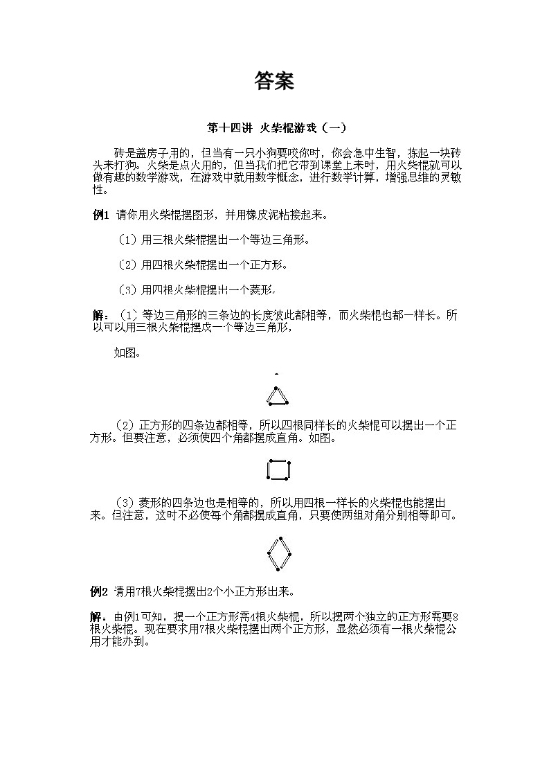 小学一年级下册数学奥数知识点讲解第14课《火柴棍游戏1》试题附答案芝士老师1年前发布关注私信0.80MB9页656115小学一年级下册数学奥数知识点讲解第14课《火柴棍游戏1》试题附答案此内容为免费资源,请登录后查看0积分 登录查看强烈推荐123网盘下载,非会员不限速如果下载链接失效请联系客服补发如需手机上下载打印,请用手机浏览器打开本站免费资源 第1页 / 共9页 第2页 / 共9页 第3页 / 共9页 该文档为免费文档,您可直接下载完整版进行阅读 © 版权声明 1 如果您找不到想要的资料, 点击这儿 可以查看网站使用手册! 2 可能会帮助到你: 网址导航 | 网站入门 | 获取邀请码 3 如果遇到付费才能看或下载的文章,建议您升级本站VIP会员;全站所有资源任意下,免费看。 4本站资源部分来自网络,由多位老师收集整理,如有侵犯你的权益请 联系站长,我们会第一时间进行审核删除。 5 站内资源为网友个人学习或测试研究使用,未经原版权作者许可,禁止用于任何商业途径!请在下载24小时内删除! THE END一年级资料专区 这套资料真的不错,快分享给您身边最好的朋友吧^_^点赞115 分享QQ空间微博QQ好友海报分享复制链接收藏 可以按Ctrl+D收藏此页面 HI!请登录 登录 注册 搜索 开启精彩搜索 免费内容强烈推荐123网盘下载,非会员不限速如果下载链接失效请联系客服补发如需手机上下载打印,请用手机浏览器打开本站 登录查看默写 (12)高频考点 (1)高分必刷 (0)高中语文 (5)高中英语 (7)高中生物 (5)高中数学 (12)高中地理 (5)高中历史 (5)高中化学 (5)预习 (2)音标 (1)雷锋 (0)阅读 (0)阅兵 (5)钱 (6)量词 (3)部首 (1)逻辑 (12)通用 (0) s_juan1关注 这家伙很懒,什么都没有写... 小吖麻麻关注 这家伙很懒,什么都没有写... kele关注 这家伙很懒,什么都没有写... 燕子关注 这家伙很懒,什么都没有写... 四爷关注 这家伙很懒,什么都没有写... 小豆点sun关注 这家伙很懒,什么都没有写... Mouse Dad关注 这家伙很懒,什么都没有写... kuan关注 这家伙很懒,什么都没有写... 领取5000T网盘资源 百度网盘5000T网红资源 立即领取 在手机上浏览此页面 登录没有账号?立即注册手机号或邮箱图形验证码验证码发送验证码记住登录账号密码登录 登录用户名/手机号/邮箱登录密码图形验证码记住登录找回密码 | 免密登录 登录注册已有账号,立即登录设置用户名手机号图形验证码验证码发送验证码设置密码重复密码邀请码(选填)注册已阅读并同意用户协议、隐私声明