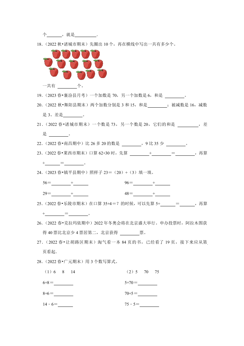 第六单元100以内的加法和减法(一)填空题一年级下册数学专项培优卷(人教版)芝士老师1年前发布关注私信0.49MB19页522206第六单元100以内的加法和减法(一)填空题一年级下册数学专项培优卷(人教版)此内容为免费资源,请登录后查看0积分 登录查看强烈推荐123网盘下载,非会员不限速如果下载链接失效请联系客服补发如需手机上下载打印,请用手机浏览器打开本站免费资源 第1页 / 共19页 第2页 / 共19页 第3页 / 共19页 该文档为免费文档,您可直接下载完整版进行阅读 © 版权声明 1 如果您找不到想要的资料, 点击这儿 可以查看网站使用手册! 2 可能会帮助到你: 网址导航 | 网站入门 | 获取邀请码 3 如果遇到付费才能看或下载的文章,建议您升级本站VIP会员;全站所有资源任意下,免费看。 4本站资源部分来自网络,由多位老师收集整理,如有侵犯你的权益请 联系站长,我们会第一时间进行审核删除。 5 站内资源为网友个人学习或测试研究使用,未经原版权作者许可,禁止用于任何商业途径!请在下载24小时内删除! THE END一年级资料专区 这套资料真的不错,快分享给您身边最好的朋友吧^_^点赞206 分享QQ空间微博QQ好友海报分享复制链接收藏 可以按Ctrl+D收藏此页面 HI!请登录 登录 注册 搜索 开启精彩搜索 免费内容强烈推荐123网盘下载,非会员不限速如果下载链接失效请联系客服补发如需手机上下载打印,请用手机浏览器打开本站 登录查看默写 (12)高频考点 (1)高分必刷 (0)高中语文 (5)高中英语 (7)高中生物 (5)高中数学 (12)高中地理 (5)高中历史 (5)高中化学 (5)预习 (2)音标 (1)雷锋 (0)阅读 (0)阅兵 (5)钱 (6)量词 (3)部首 (1)逻辑 (12)通用 (0) 非凡的驴关注 这家伙很懒,什么都没有写... s_juan1关注 这家伙很懒,什么都没有写... 有有关注 这家伙很懒,什么都没有写... 考拉妈咪关注 这家伙很懒,什么都没有写... 好东西关注 这家伙很懒,什么都没有写... 张老师关注 这家伙很懒,什么都没有写... 我来了关注 这家伙很懒,什么都没有写... LLLLLSSSSS关注 这家伙很懒,什么都没有写... 领取5000T网盘资源 百度网盘5000T网红资源 立即领取 在手机上浏览此页面 登录没有账号?立即注册手机号或邮箱图形验证码验证码发送验证码记住登录账号密码登录 登录用户名/手机号/邮箱登录密码图形验证码记住登录找回密码 | 免密登录 登录注册已有账号,立即登录设置用户名手机号图形验证码验证码发送验证码设置密码重复密码邀请码(选填)注册已阅读并同意用户协议、隐私声明