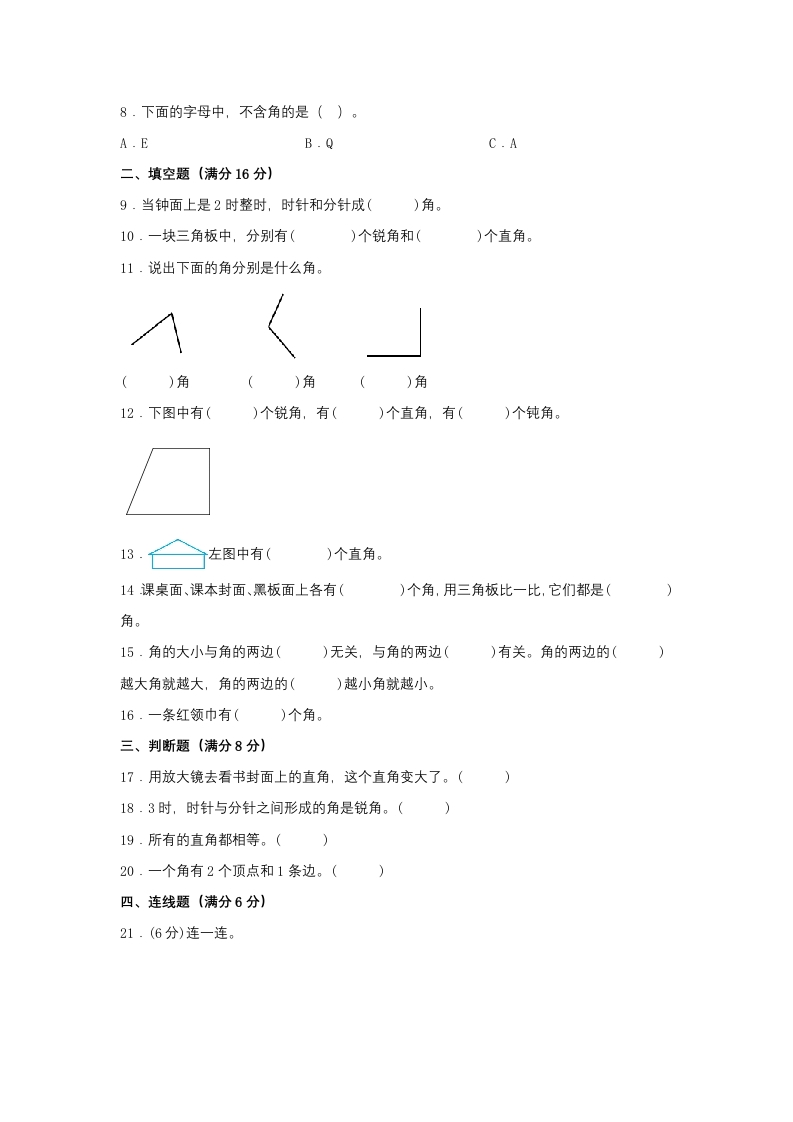 【单元AB卷】二年级上册数学分层训练A卷-第三单元角的初步认识(单元测试)(人教版,含答案)芝士老师1年前发布关注私信0.19MB9页663153【单元AB卷】二年级上册数学分层训练A卷-第三单元角的初步认识(单元测试)(人教版,含答案)此内容为免费资源,请登录后查看0积分 登录查看强烈推荐123网盘下载,非会员不限速如果下载链接失效请联系客服补发如需手机上下载打印,请用手机浏览器打开本站免费资源 第1页 / 共9页 第2页 / 共9页 第3页 / 共9页 该文档为免费文档,您可直接下载完整版进行阅读 © 版权声明 1 如果您找不到想要的资料, 点击这儿 可以查看网站使用手册! 2 可能会帮助到你: 网址导航 | 网站入门 | 获取邀请码 3 如果遇到付费才能看或下载的文章,建议您升级本站VIP会员;全站所有资源任意下,免费看。 4本站资源部分来自网络,由多位老师收集整理,如有侵犯你的权益请 联系站长,我们会第一时间进行审核删除。 5 站内资源为网友个人学习或测试研究使用,未经原版权作者许可,禁止用于任何商业途径!请在下载24小时内删除! THE END二年级资料专区 这套资料真的不错,快分享给您身边最好的朋友吧^_^点赞153 分享QQ空间微博QQ好友海报分享复制链接收藏 可以按Ctrl+D收藏此页面 HI!请登录 登录 注册 搜索 开启精彩搜索 免费内容强烈推荐123网盘下载,非会员不限速如果下载链接失效请联系客服补发如需手机上下载打印,请用手机浏览器打开本站 登录查看默写 (12)高频考点 (1)高分必刷 (0)高中语文 (5)高中英语 (7)高中生物 (5)高中数学 (12)高中地理 (5)高中历史 (5)高中化学 (5)预习 (2)音标 (1)雷锋 (0)阅读 (0)阅兵 (5)钱 (6)量词 (3)部首 (1)逻辑 (12)通用 (0) 小吖麻麻关注 这家伙很懒,什么都没有写... s_juan1关注 这家伙很懒,什么都没有写... kuan关注 这家伙很懒,什么都没有写... evawawawa关注 这家伙很懒,什么都没有写... kele关注 这家伙很懒,什么都没有写... 燕子关注 这家伙很懒,什么都没有写... 四爷关注 这家伙很懒,什么都没有写... 小豆点sun关注 这家伙很懒,什么都没有写... 领取5000T网盘资源 百度网盘5000T网红资源 立即领取 在手机上浏览此页面 登录没有账号?立即注册手机号或邮箱图形验证码验证码发送验证码记住登录账号密码登录 登录用户名/手机号/邮箱登录密码图形验证码记住登录找回密码 | 免密登录 登录注册已有账号,立即登录设置用户名手机号图形验证码验证码发送验证码设置密码重复密码邀请码(选填)注册已阅读并同意用户协议、隐私声明