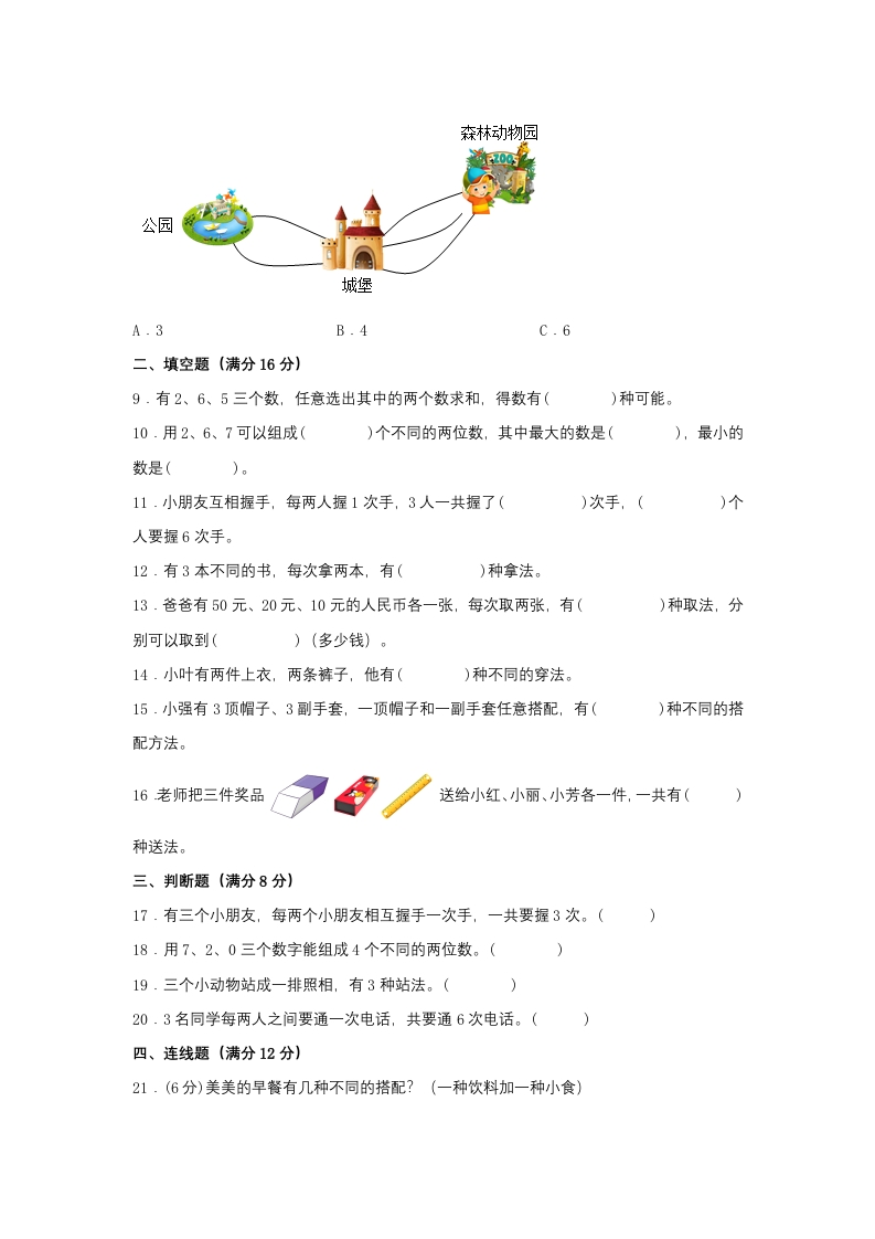【单元AB卷】二年级上册数学分层训练B卷-第八单元数学广角—搭配(一)(单元测试)(人教版,含答案)芝士老师1年前发布关注私信0.92MB9页701231【单元AB卷】二年级上册数学分层训练B卷-第八单元数学广角—搭配(一)(单元测试)(人教版,含答案)此内容为免费资源,请登录后查看0积分 登录查看强烈推荐123网盘下载,非会员不限速如果下载链接失效请联系客服补发如需手机上下载打印,请用手机浏览器打开本站免费资源 第1页 / 共9页 第2页 / 共9页 第3页 / 共9页 该文档为免费文档,您可直接下载完整版进行阅读 © 版权声明 1 如果您找不到想要的资料, 点击这儿 可以查看网站使用手册! 2 可能会帮助到你: 网址导航 | 网站入门 | 获取邀请码 3 如果遇到付费才能看或下载的文章,建议您升级本站VIP会员;全站所有资源任意下,免费看。 4本站资源部分来自网络,由多位老师收集整理,如有侵犯你的权益请 联系站长,我们会第一时间进行审核删除。 5 站内资源为网友个人学习或测试研究使用,未经原版权作者许可,禁止用于任何商业途径!请在下载24小时内删除! THE END二年级资料专区 这套资料真的不错,快分享给您身边最好的朋友吧^_^点赞231 分享QQ空间微博QQ好友海报分享复制链接收藏 可以按Ctrl+D收藏此页面 HI!请登录 登录 注册 搜索 开启精彩搜索 免费内容强烈推荐123网盘下载,非会员不限速如果下载链接失效请联系客服补发如需手机上下载打印,请用手机浏览器打开本站 登录查看默写 (12)高频考点 (1)高分必刷 (0)高中语文 (5)高中英语 (7)高中生物 (5)高中数学 (12)高中地理 (5)高中历史 (5)高中化学 (5)预习 (2)音标 (1)雷锋 (0)阅读 (0)阅兵 (5)钱 (6)量词 (3)部首 (1)逻辑 (12)通用 (0) kuan关注 这家伙很懒,什么都没有写... 小吖麻麻关注 这家伙很懒,什么都没有写... evawawawa关注 这家伙很懒,什么都没有写... s_juan1关注 这家伙很懒,什么都没有写... kele关注 这家伙很懒,什么都没有写... 燕子关注 这家伙很懒,什么都没有写... 四爷关注 这家伙很懒,什么都没有写... 小豆点sun关注 这家伙很懒,什么都没有写... 领取5000T网盘资源 百度网盘5000T网红资源 立即领取 在手机上浏览此页面 登录没有账号?立即注册手机号或邮箱图形验证码验证码发送验证码记住登录账号密码登录 登录用户名/手机号/邮箱登录密码图形验证码记住登录找回密码 | 免密登录 登录注册已有账号,立即登录设置用户名手机号图形验证码验证码发送验证码设置密码重复密码邀请码(选填)注册已阅读并同意用户协议、隐私声明