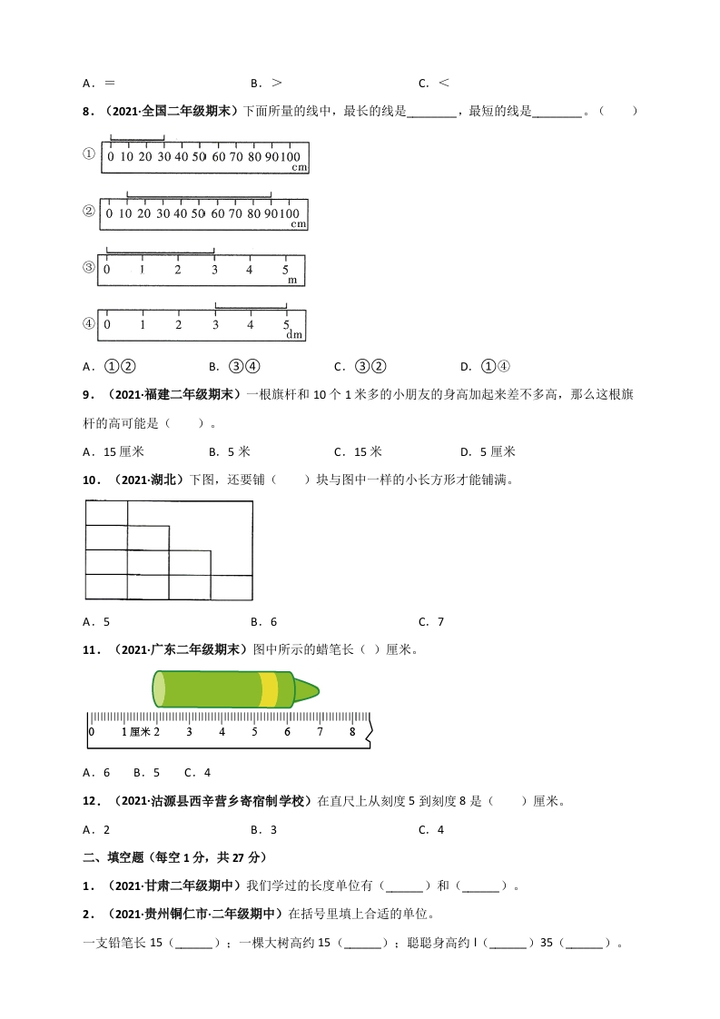人教版二年级上册数学第1章《长度单位》单元测评必刷卷(原卷版)芝士老师1年前发布关注私信0.46MB8页744203人教版二年级上册数学第1章《长度单位》单元测评必刷卷(原卷版)此内容为免费资源,请登录后查看0积分 登录查看强烈推荐123网盘下载,非会员不限速如果下载链接失效请联系客服补发如需手机上下载打印,请用手机浏览器打开本站免费资源 第1页 / 共8页 第2页 / 共8页 第3页 / 共8页 该文档为免费文档,您可直接下载完整版进行阅读 © 版权声明 1 如果您找不到想要的资料, 点击这儿 可以查看网站使用手册! 2 可能会帮助到你: 网址导航 | 网站入门 | 获取邀请码 3 如果遇到付费才能看或下载的文章,建议您升级本站VIP会员;全站所有资源任意下,免费看。 4本站资源部分来自网络,由多位老师收集整理,如有侵犯你的权益请 联系站长,我们会第一时间进行审核删除。 5 站内资源为网友个人学习或测试研究使用,未经原版权作者许可,禁止用于任何商业途径!请在下载24小时内删除! THE END二年级资料专区 这套资料真的不错,快分享给您身边最好的朋友吧^_^点赞203 分享QQ空间微博QQ好友海报分享复制链接收藏 可以按Ctrl+D收藏此页面 HI!请登录 登录 注册 搜索 开启精彩搜索 免费内容强烈推荐123网盘下载,非会员不限速如果下载链接失效请联系客服补发如需手机上下载打印,请用手机浏览器打开本站 登录查看默写 (12)高频考点 (1)高分必刷 (0)高中语文 (5)高中英语 (7)高中生物 (5)高中数学 (12)高中地理 (5)高中历史 (5)高中化学 (5)预习 (2)音标 (1)雷锋 (0)阅读 (0)阅兵 (5)钱 (6)量词 (3)部首 (1)逻辑 (12)通用 (0) s_juan1关注 这家伙很懒,什么都没有写... kuan关注 这家伙很懒,什么都没有写... 小吖麻麻关注 这家伙很懒,什么都没有写... evawawawa关注 这家伙很懒,什么都没有写... kele关注 这家伙很懒,什么都没有写... 燕子关注 这家伙很懒,什么都没有写... 四爷关注 这家伙很懒,什么都没有写... 小豆点sun关注 这家伙很懒,什么都没有写... 领取5000T网盘资源 百度网盘5000T网红资源 立即领取 在手机上浏览此页面 登录没有账号?立即注册手机号或邮箱图形验证码验证码发送验证码记住登录账号密码登录 登录用户名/手机号/邮箱登录密码图形验证码记住登录找回密码 | 免密登录 登录注册已有账号,立即登录设置用户名手机号图形验证码验证码发送验证码设置密码重复密码邀请码(选填)注册已阅读并同意用户协议、隐私声明