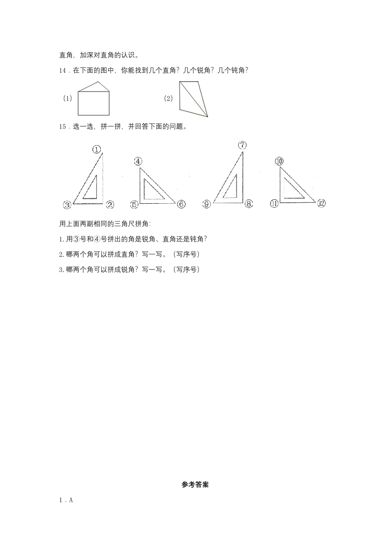 【分层作业】3.2锐角、直角、钝角的认识(同步练习)二年级上册数学同步课时练(人教版,含答案)芝士老师1年前发布关注私信0.24MB7页531238【分层作业】3.2锐角、直角、钝角的认识(同步练习)二年级上册数学同步课时练(人教版,含答案)此内容为免费资源,请登录后查看0积分 登录查看强烈推荐123网盘下载,非会员不限速如果下载链接失效请联系客服补发如需手机上下载打印,请用手机浏览器打开本站免费资源 第1页 / 共7页 第2页 / 共7页 第3页 / 共7页 该文档为免费文档,您可直接下载完整版进行阅读 © 版权声明 1 如果您找不到想要的资料, 点击这儿 可以查看网站使用手册! 2 可能会帮助到你: 网址导航 | 网站入门 | 获取邀请码 3 如果遇到付费才能看或下载的文章,建议您升级本站VIP会员;全站所有资源任意下,免费看。 4本站资源部分来自网络,由多位老师收集整理,如有侵犯你的权益请 联系站长,我们会第一时间进行审核删除。 5 站内资源为网友个人学习或测试研究使用,未经原版权作者许可,禁止用于任何商业途径!请在下载24小时内删除! THE END二年级资料专区 这套资料真的不错,快分享给您身边最好的朋友吧^_^点赞238 分享QQ空间微博QQ好友海报分享复制链接收藏 可以按Ctrl+D收藏此页面 HI!请登录 登录 注册 搜索 开启精彩搜索 免费内容强烈推荐123网盘下载,非会员不限速如果下载链接失效请联系客服补发如需手机上下载打印,请用手机浏览器打开本站 登录查看默写 (12)高频考点 (1)高分必刷 (0)高中语文 (5)高中英语 (7)高中生物 (5)高中数学 (12)高中地理 (5)高中历史 (5)高中化学 (5)预习 (2)音标 (1)雷锋 (0)阅读 (0)阅兵 (5)钱 (6)量词 (3)部首 (1)逻辑 (12)通用 (0) 小吖麻麻关注 这家伙很懒,什么都没有写... s_juan1关注 这家伙很懒,什么都没有写... kuan关注 这家伙很懒,什么都没有写... evawawawa关注 这家伙很懒,什么都没有写... kele关注 这家伙很懒,什么都没有写... 燕子关注 这家伙很懒,什么都没有写... 四爷关注 这家伙很懒,什么都没有写... 小豆点sun关注 这家伙很懒,什么都没有写... 领取5000T网盘资源 百度网盘5000T网红资源 立即领取 在手机上浏览此页面 登录没有账号?立即注册手机号或邮箱图形验证码验证码发送验证码记住登录账号密码登录 登录用户名/手机号/邮箱登录密码图形验证码记住登录找回密码 | 免密登录 登录注册已有账号,立即登录设置用户名手机号图形验证码验证码发送验证码设置密码重复密码邀请码(选填)注册已阅读并同意用户协议、隐私声明
