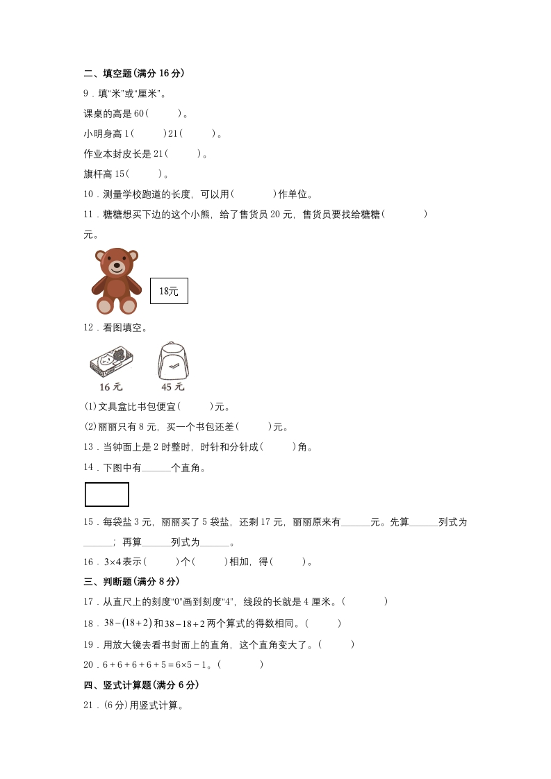 【期中模拟卷】小学数学二年级上册期中模拟试卷(1)人教版(含答案)芝士老师1年前发布关注私信0.29MB5页517245【期中模拟卷】小学数学二年级上册期中模拟试卷(1)人教版(含答案)此内容为免费资源,请登录后查看0积分 登录查看强烈推荐123网盘下载,非会员不限速如果下载链接失效请联系客服补发如需手机上下载打印,请用手机浏览器打开本站免费资源 第1页 / 共5页 第2页 / 共5页 第3页 / 共5页 该文档为免费文档,您可直接下载完整版进行阅读 © 版权声明 1 如果您找不到想要的资料, 点击这儿 可以查看网站使用手册! 2 可能会帮助到你: 网址导航 | 网站入门 | 获取邀请码 3 如果遇到付费才能看或下载的文章,建议您升级本站VIP会员;全站所有资源任意下,免费看。 4本站资源部分来自网络,由多位老师收集整理,如有侵犯你的权益请 联系站长,我们会第一时间进行审核删除。 5 站内资源为网友个人学习或测试研究使用,未经原版权作者许可,禁止用于任何商业途径!请在下载24小时内删除! THE END二年级资料专区 这套资料真的不错,快分享给您身边最好的朋友吧^_^点赞245 分享QQ空间微博QQ好友海报分享复制链接收藏 可以按Ctrl+D收藏此页面 HI!请登录 登录 注册 搜索 开启精彩搜索 免费内容强烈推荐123网盘下载,非会员不限速如果下载链接失效请联系客服补发如需手机上下载打印,请用手机浏览器打开本站 登录查看默写 (12)高频考点 (1)高分必刷 (0)高中语文 (5)高中英语 (7)高中生物 (5)高中数学 (12)高中地理 (5)高中历史 (5)高中化学 (5)预习 (2)音标 (1)雷锋 (0)阅读 (0)阅兵 (5)钱 (6)量词 (3)部首 (1)逻辑 (12)通用 (0) kuan关注 这家伙很懒,什么都没有写... 小吖麻麻关注 这家伙很懒,什么都没有写... evawawawa关注 这家伙很懒,什么都没有写... s_juan1关注 这家伙很懒,什么都没有写... kele关注 这家伙很懒,什么都没有写... 燕子关注 这家伙很懒,什么都没有写... 四爷关注 这家伙很懒,什么都没有写... 小豆点sun关注 这家伙很懒,什么都没有写... 领取5000T网盘资源 百度网盘5000T网红资源 立即领取 在手机上浏览此页面 登录没有账号?立即注册手机号或邮箱图形验证码验证码发送验证码记住登录账号密码登录 登录用户名/手机号/邮箱登录密码图形验证码记住登录找回密码 | 免密登录 登录注册已有账号,立即登录设置用户名手机号图形验证码验证码发送验证码设置密码重复密码邀请码(选填)注册已阅读并同意用户协议、隐私声明
