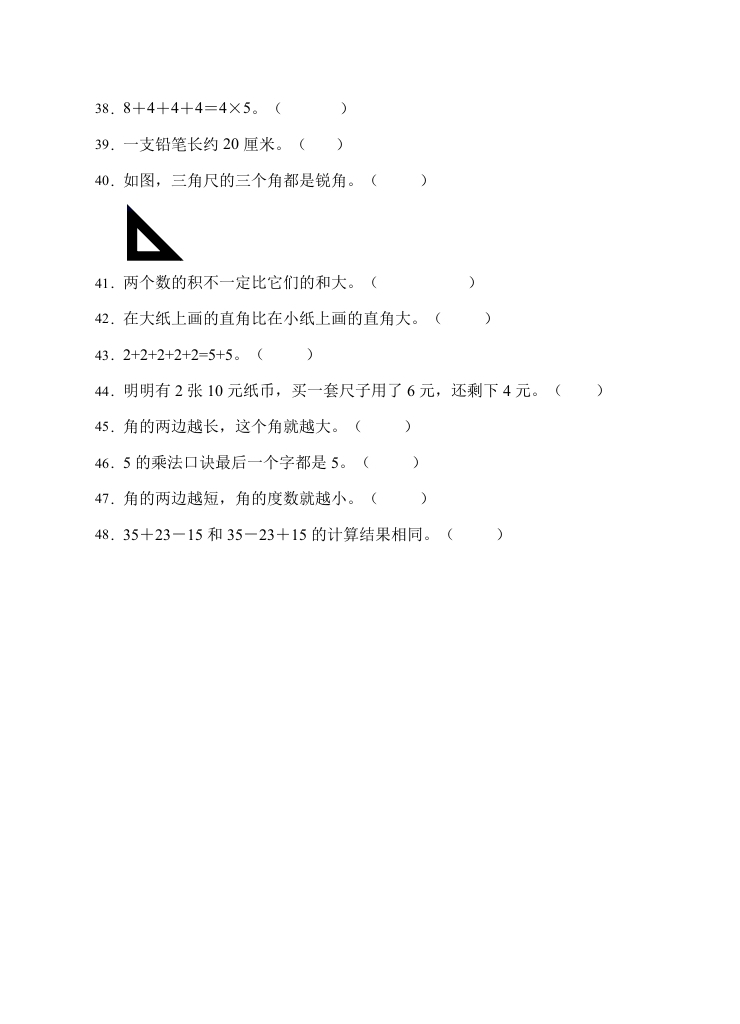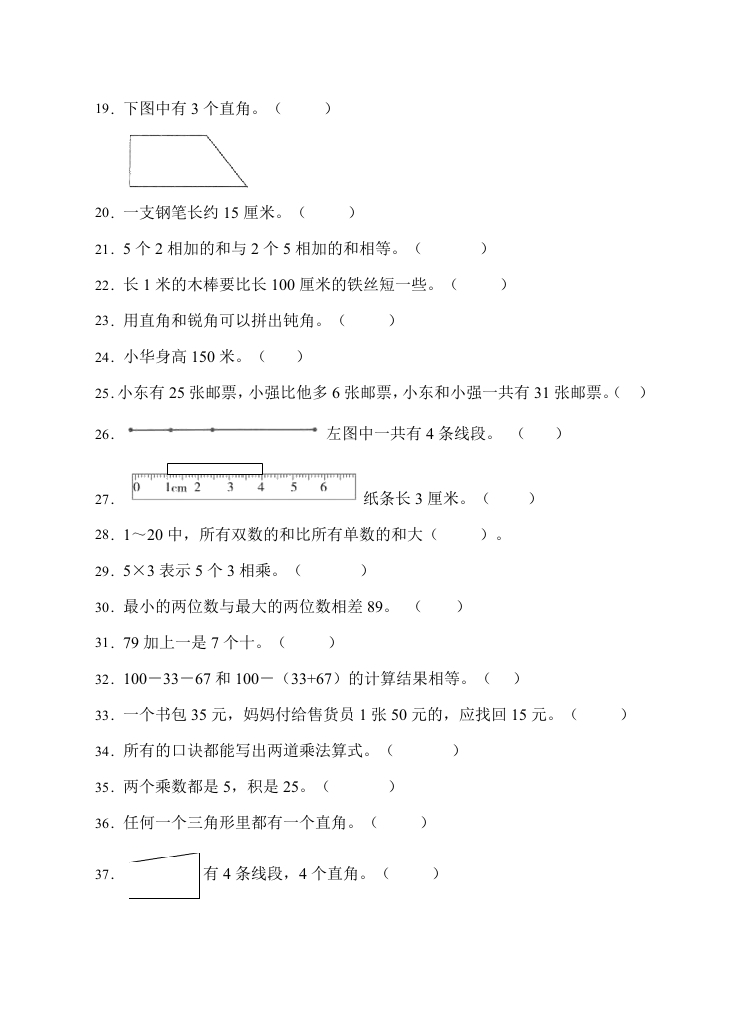 【题型专项】人教版二年级数学上册专项练习-判断题1(有答案)芝士老师1年前发布关注私信49KB5页772127【题型专项】人教版二年级数学上册专项练习-判断题1(有答案)此内容为免费资源,请登录后查看0积分 登录查看强烈推荐123网盘下载,非会员不限速如果下载链接失效请联系客服补发如需手机上下载打印,请用手机浏览器打开本站免费资源 第1页 / 共5页 第2页 / 共5页 第3页 / 共5页 该文档为免费文档,您可直接下载完整版进行阅读 © 版权声明 1 如果您找不到想要的资料, 点击这儿 可以查看网站使用手册! 2 可能会帮助到你: 网址导航 | 网站入门 | 获取邀请码 3 如果遇到付费才能看或下载的文章,建议您升级本站VIP会员;全站所有资源任意下,免费看。 4本站资源部分来自网络,由多位老师收集整理,如有侵犯你的权益请 联系站长,我们会第一时间进行审核删除。 5 站内资源为网友个人学习或测试研究使用,未经原版权作者许可,禁止用于任何商业途径!请在下载24小时内删除! THE END二年级资料专区 这套资料真的不错,快分享给您身边最好的朋友吧^_^点赞127 分享QQ空间微博QQ好友海报分享复制链接收藏 可以按Ctrl+D收藏此页面 HI!请登录 登录 注册 搜索 开启精彩搜索 免费内容强烈推荐123网盘下载,非会员不限速如果下载链接失效请联系客服补发如需手机上下载打印,请用手机浏览器打开本站 登录查看默写 (12)高频考点 (1)高分必刷 (0)高中语文 (5)高中英语 (7)高中生物 (5)高中数学 (12)高中地理 (5)高中历史 (5)高中化学 (5)预习 (2)音标 (1)雷锋 (0)阅读 (0)阅兵 (5)钱 (6)量词 (3)部首 (1)逻辑 (12)通用 (0) 小吖麻麻关注 这家伙很懒,什么都没有写... evawawawa关注 这家伙很懒,什么都没有写... s_juan1关注 这家伙很懒,什么都没有写... kele关注 这家伙很懒,什么都没有写... 燕子关注 这家伙很懒,什么都没有写... 四爷关注 这家伙很懒,什么都没有写... 小豆点sun关注 这家伙很懒,什么都没有写... Mouse Dad关注 这家伙很懒,什么都没有写... 领取5000T网盘资源 百度网盘5000T网红资源 立即领取 在手机上浏览此页面 登录没有账号?立即注册手机号或邮箱图形验证码验证码发送验证码记住登录账号密码登录 登录用户名/手机号/邮箱登录密码图形验证码记住登录找回密码 | 免密登录 登录注册已有账号,立即登录设置用户名手机号图形验证码验证码发送验证码设置密码重复密码邀请码(选填)注册已阅读并同意用户协议、隐私声明