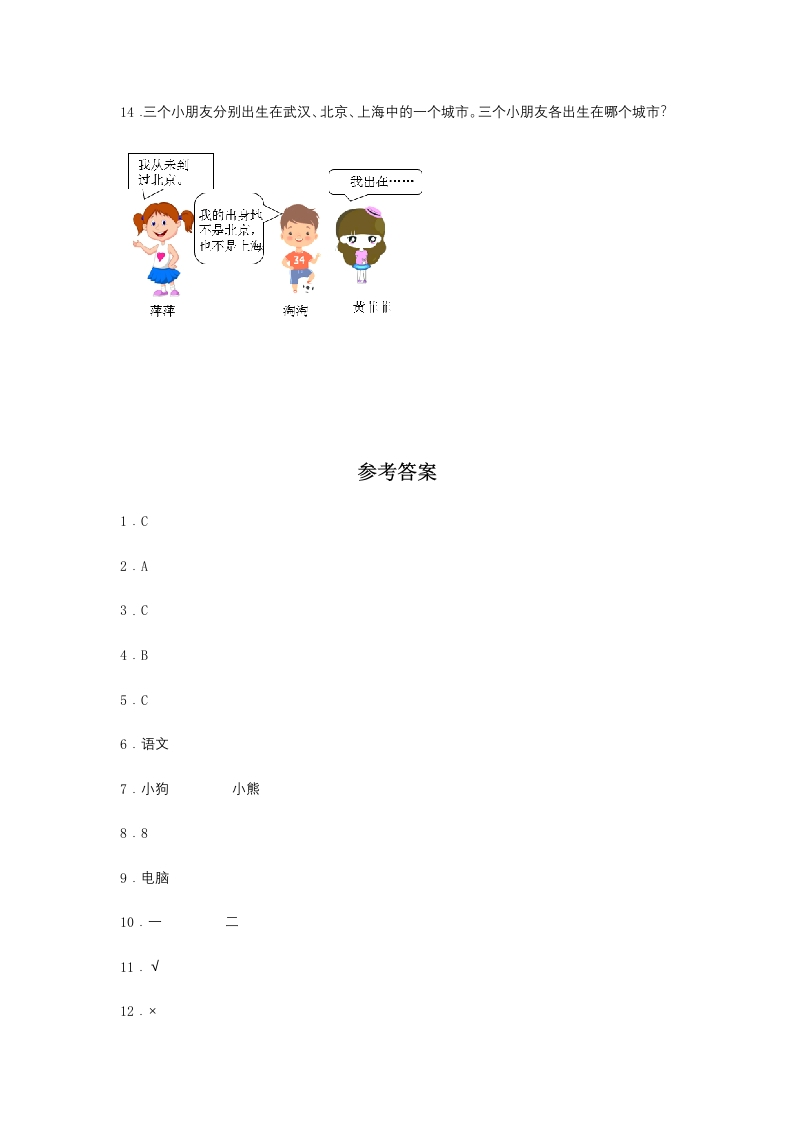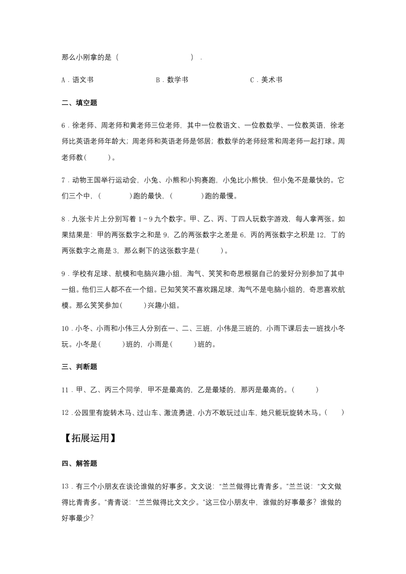【分层训练】9.1数学广角—推理二年级下册数学同步练习人教版(含答案)芝士老师1年前发布关注私信0.19MB5页535268【分层训练】9.1数学广角—推理二年级下册数学同步练习人教版(含答案)此内容为免费资源,请登录后查看0积分 登录查看强烈推荐123网盘下载,非会员不限速如果下载链接失效请联系客服补发如需手机上下载打印,请用手机浏览器打开本站免费资源 第1页 / 共5页 第2页 / 共5页 第3页 / 共5页 该文档为免费文档,您可直接下载完整版进行阅读 © 版权声明 1 如果您找不到想要的资料, 点击这儿 可以查看网站使用手册! 2 可能会帮助到你: 网址导航 | 网站入门 | 获取邀请码 3 如果遇到付费才能看或下载的文章,建议您升级本站VIP会员;全站所有资源任意下,免费看。 4本站资源部分来自网络,由多位老师收集整理,如有侵犯你的权益请 联系站长,我们会第一时间进行审核删除。 5 站内资源为网友个人学习或测试研究使用,未经原版权作者许可,禁止用于任何商业途径!请在下载24小时内删除! THE END二年级资料专区 这套资料真的不错,快分享给您身边最好的朋友吧^_^点赞268 分享QQ空间微博QQ好友海报分享复制链接收藏 可以按Ctrl+D收藏此页面 HI!请登录 登录 注册 搜索 开启精彩搜索 免费内容强烈推荐123网盘下载,非会员不限速如果下载链接失效请联系客服补发如需手机上下载打印,请用手机浏览器打开本站 登录查看默写 (12)高频考点 (1)高分必刷 (0)高中语文 (5)高中英语 (7)高中生物 (5)高中数学 (12)高中地理 (5)高中历史 (5)高中化学 (5)预习 (2)音标 (1)雷锋 (0)阅读 (0)阅兵 (5)钱 (6)量词 (3)部首 (1)逻辑 (12)通用 (0) kuan关注 这家伙很懒,什么都没有写... 小吖麻麻关注 这家伙很懒,什么都没有写... evawawawa关注 这家伙很懒,什么都没有写... s_juan1关注 这家伙很懒,什么都没有写... kele关注 这家伙很懒,什么都没有写... 燕子关注 这家伙很懒,什么都没有写... 四爷关注 这家伙很懒,什么都没有写... 小豆点sun关注 这家伙很懒,什么都没有写... 领取5000T网盘资源 百度网盘5000T网红资源 立即领取 在手机上浏览此页面 登录没有账号?立即注册手机号或邮箱图形验证码验证码发送验证码记住登录账号密码登录 登录用户名/手机号/邮箱登录密码图形验证码记住登录找回密码 | 免密登录 登录注册已有账号,立即登录设置用户名手机号图形验证码验证码发送验证码设置密码重复密码邀请码(选填)注册已阅读并同意用户协议、隐私声明