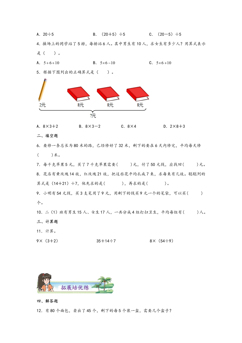 5.2解决问题-二年级数学下册课时练分层作业(人教版)芝士老师1年前发布关注私信0.48MB8页7991355.2解决问题-二年级数学下册课时练分层作业(人教版)此内容为免费资源,请登录后查看0积分 登录查看强烈推荐123网盘下载,非会员不限速如果下载链接失效请联系客服补发如需手机上下载打印,请用手机浏览器打开本站免费资源 第1页 / 共8页 第2页 / 共8页 第3页 / 共8页 该文档为免费文档,您可直接下载完整版进行阅读 © 版权声明 1 如果您找不到想要的资料, 点击这儿 可以查看网站使用手册! 2 可能会帮助到你: 网址导航 | 网站入门 | 获取邀请码 3 如果遇到付费才能看或下载的文章,建议您升级本站VIP会员;全站所有资源任意下,免费看。 4本站资源部分来自网络,由多位老师收集整理,如有侵犯你的权益请 联系站长,我们会第一时间进行审核删除。 5 站内资源为网友个人学习或测试研究使用,未经原版权作者许可,禁止用于任何商业途径!请在下载24小时内删除! THE END二年级资料专区 这套资料真的不错,快分享给您身边最好的朋友吧^_^点赞135 分享QQ空间微博QQ好友海报分享复制链接收藏 可以按Ctrl+D收藏此页面 HI!请登录 登录 注册 搜索 开启精彩搜索 免费内容强烈推荐123网盘下载,非会员不限速如果下载链接失效请联系客服补发如需手机上下载打印,请用手机浏览器打开本站 登录查看默写 (12)高频考点 (1)高分必刷 (0)高中语文 (5)高中英语 (7)高中生物 (5)高中数学 (12)高中地理 (5)高中历史 (5)高中化学 (5)预习 (2)音标 (1)雷锋 (0)阅读 (0)阅兵 (5)钱 (6)量词 (3)部首 (1)逻辑 (12)通用 (0) s_juan1关注 这家伙很懒,什么都没有写... 小吖麻麻关注 这家伙很懒,什么都没有写... kele关注 这家伙很懒,什么都没有写... 燕子关注 这家伙很懒,什么都没有写... 四爷关注 这家伙很懒,什么都没有写... 小豆点sun关注 这家伙很懒,什么都没有写... Mouse Dad关注 这家伙很懒,什么都没有写... kuan关注 这家伙很懒,什么都没有写... 领取5000T网盘资源 百度网盘5000T网红资源 立即领取 在手机上浏览此页面 登录没有账号?立即注册手机号或邮箱图形验证码验证码发送验证码记住登录账号密码登录 登录用户名/手机号/邮箱登录密码图形验证码记住登录找回密码 | 免密登录 登录注册已有账号,立即登录设置用户名手机号图形验证码验证码发送验证码设置密码重复密码邀请码(选填)注册已阅读并同意用户协议、隐私声明